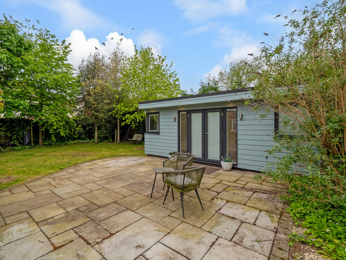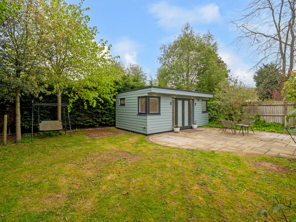 • Picturesque Gardens. An enclosed rear garden with a patio and detached garden room create a serene outdoor haven.