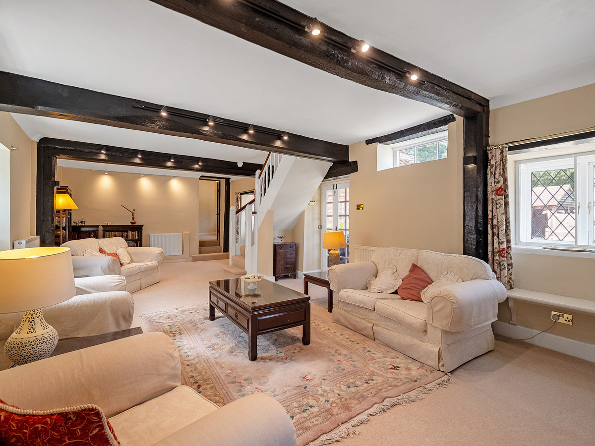 - Spectacular sitting room with stone mullioned windows and exposed timbers