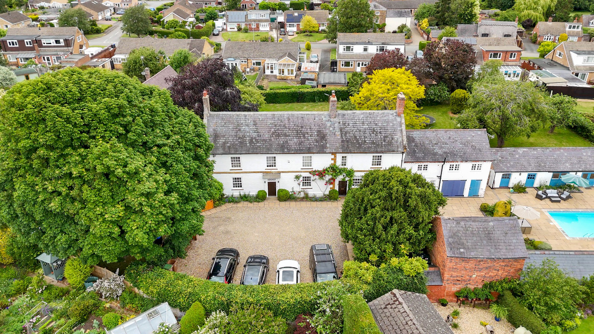 Outside, the home opens to a gravel driveway and garage, leading to a central courtyard with a heated swimming pool and several beautifully maintained outbuildings. These include a three-bedroom barn conversion, stable annexe, and a variety of storage barns and workshops.