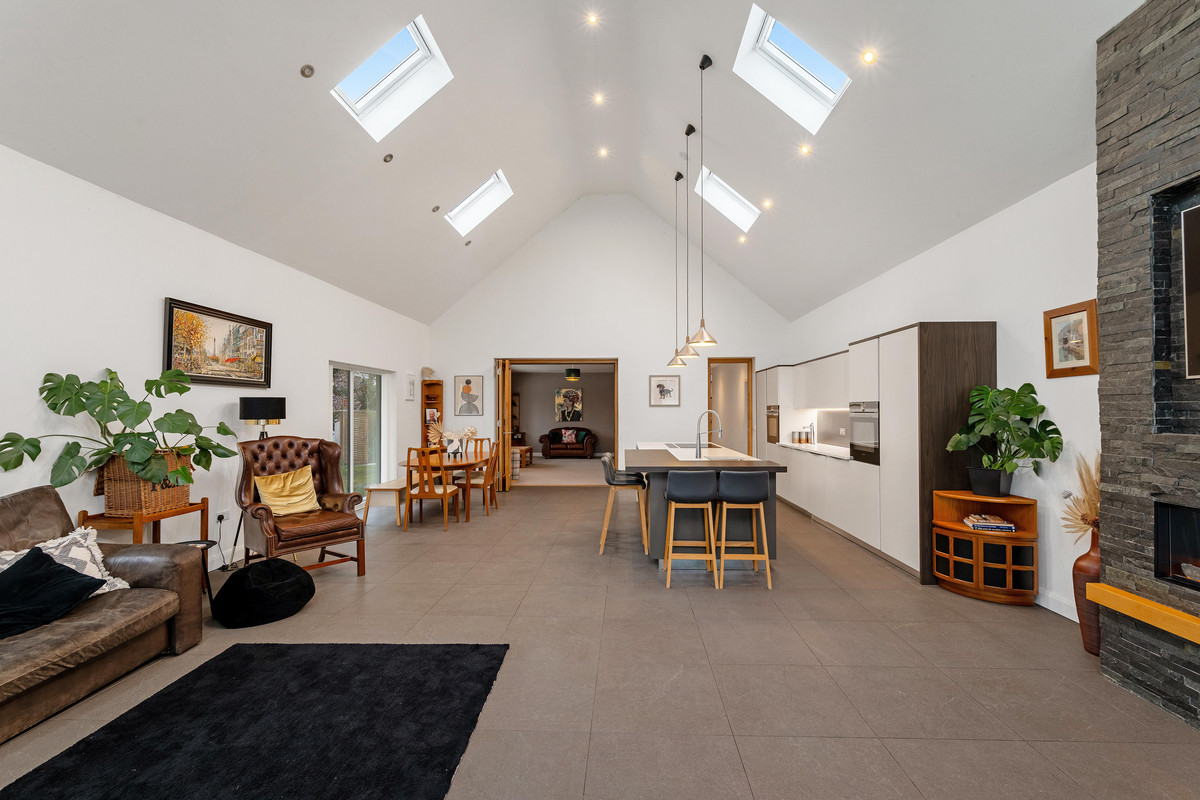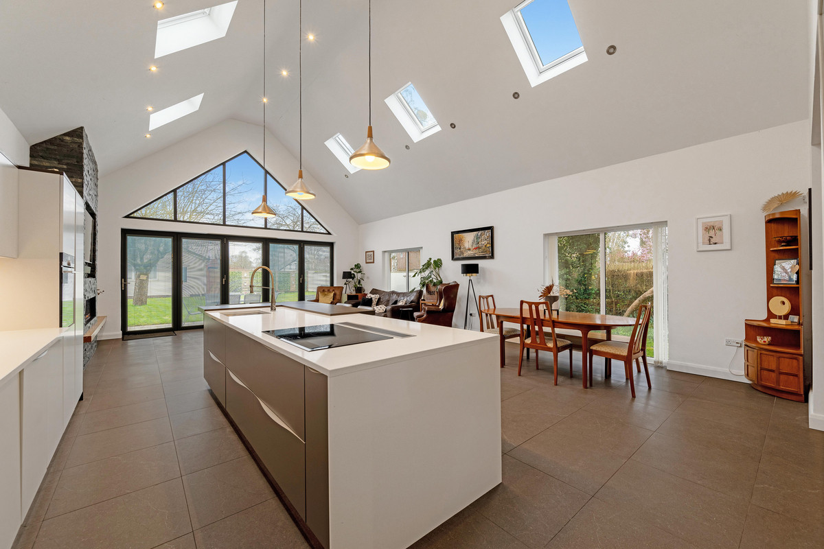 222 Hillmorton Road has been thoroughly modernised and cleverly extended by the present owners in 2016, to create a wonderful, modern, family home with five double bedrooms and four beautifully appointed bathrooms. Two of the bedrooms are conveniently located on the ground floor, one of which is the principal bedroom suite, with a stunning ensuite bathroom and dressing room. The extension incorporates a superb kitchen/family room with vaulted ceiling, glazed apex and bi-fold doors leading to the gardens. Complimenting the extensive accommodation is an entrance hall, sitting room, study, cloakroom, laundry room and utility room. The property sits on a corner plot with a double garage and plenty of off-road parking, and benefits from underfloor heating to the ground floor, silicone rendered elevations and double-glazed windows throughout. The location is ideal for local amenities, with a parade of shops close by and some of Rugby’s finest infant, primary, secondary and grammar schools within walking distance.