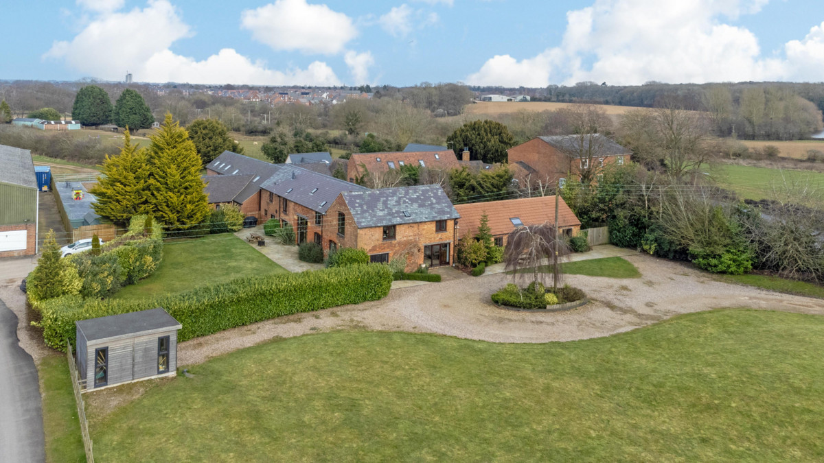 Situated on the outskirts of Cawston in South Rugby, is The Granary which occupies a generous 1.25 acre plot with a gated, sweeping driveway leading to this attractive barn conversion which offers versatile and flexible accommodation with six bedrooms and five bathrooms, one of which is on the ground floor with its own independent external access, which makes this home ideal for multigenerational living or those with large families. The property bears all the hallmarks of a classic barn conversion with exposed ceiling timbers, vaulted ceilings, full height glazing where stated and latched doors. On the ground floor there is a games room, an executive study, a smaller study, a generous sitting room, a cloakroom, a utility room and a large kitchen/dining room perfect for family entertaining. The property also benefits from an air source heat pump with underfloor heating on the ground floor, ample off-road parking and private side and rear gardens. The ample frontage offers a south facing aspect with views over neighbouring countryside.