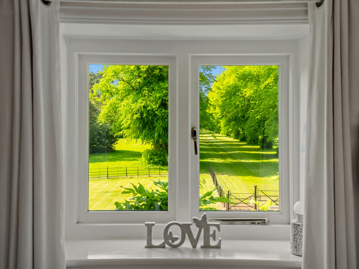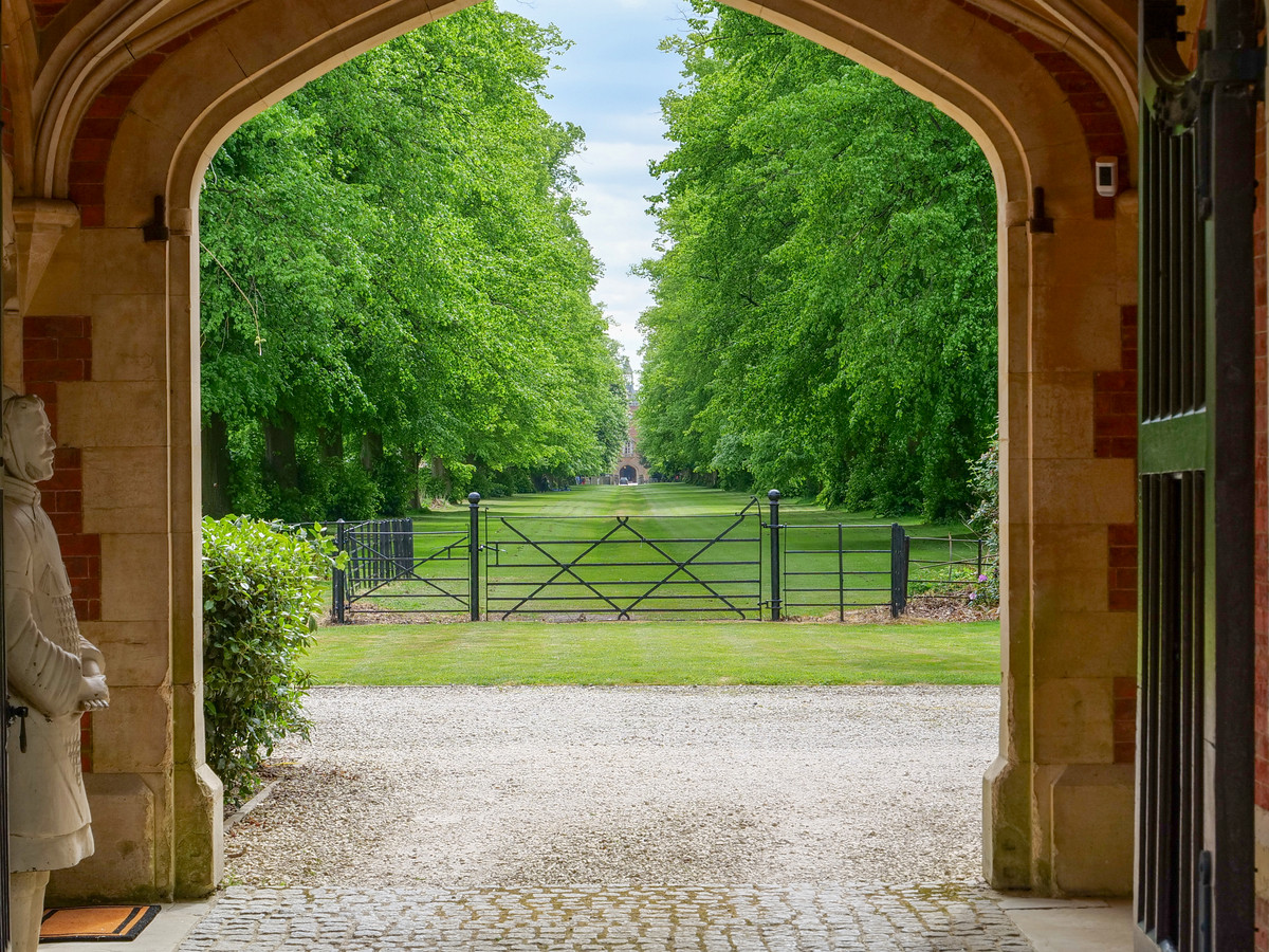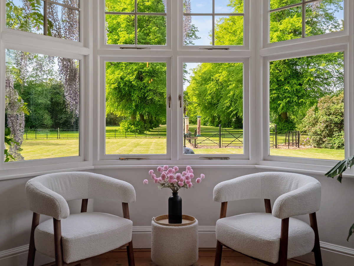 Under the archway, the front door is on the left, leading to an impressive entrance hall. The dining room has an incredible view along the tree-lined drive leading to Bilton Grange. The second reception room also has views over parkland to the rear. A study provides a space to work from home. The large living room is well lit with windows on three sides and patio doors giving easy access to the rear garden.