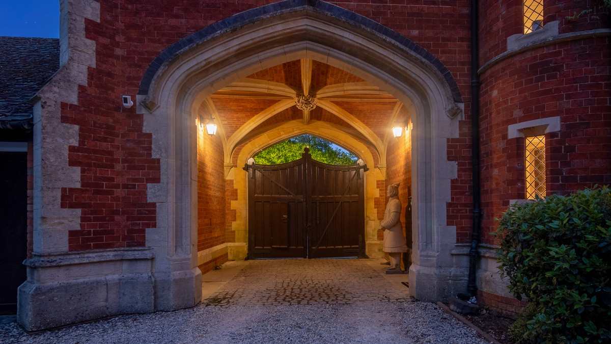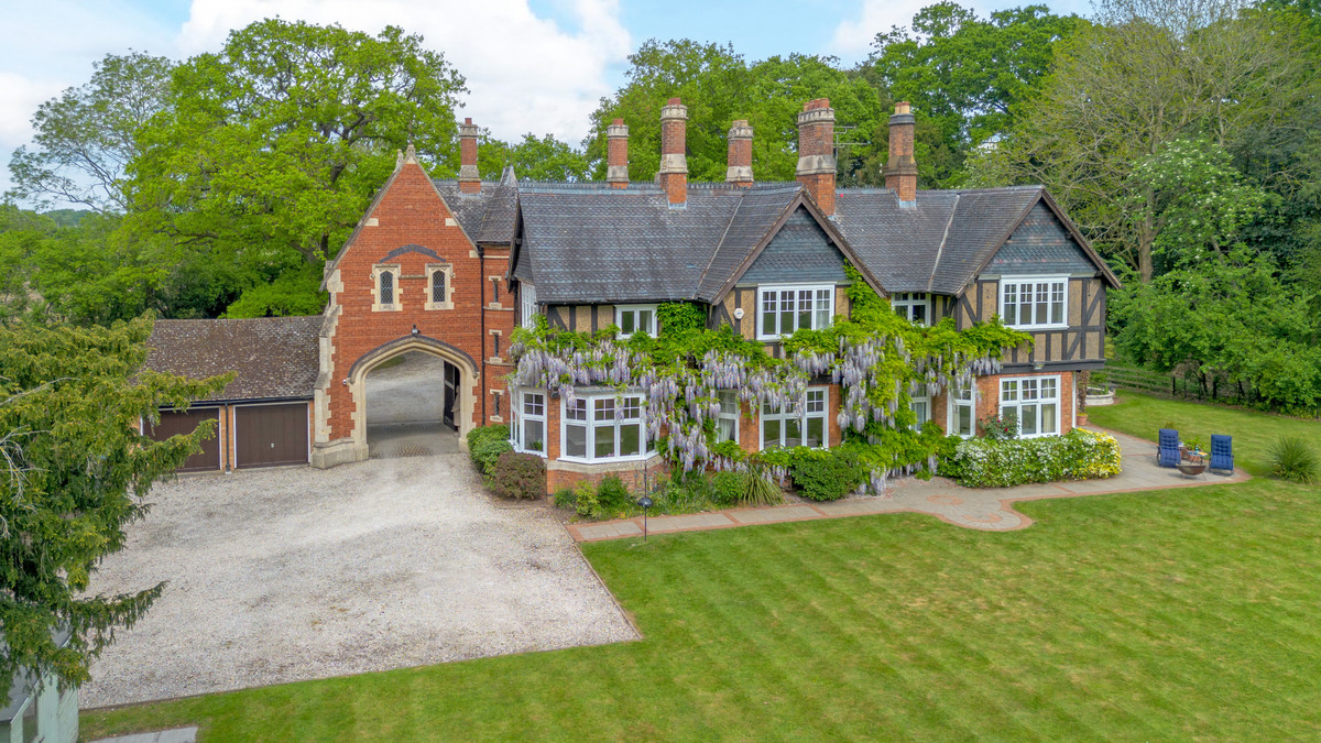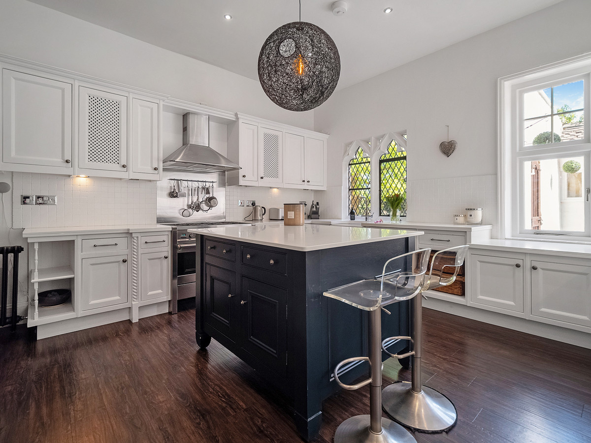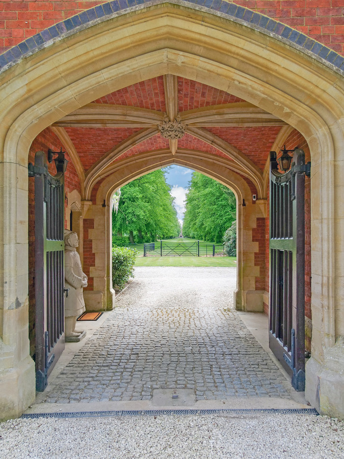 Under the archway, the front door is on the left, leading to an impressive entrance hall. The dining room has an incredible view along the tree-lined drive leading to Bilton Grange. The second reception room also has views over parkland to the rear. A study provides a space to work from home. The large living room is well lit with windows on three sides and patio doors giving easy access to the rear garden.
