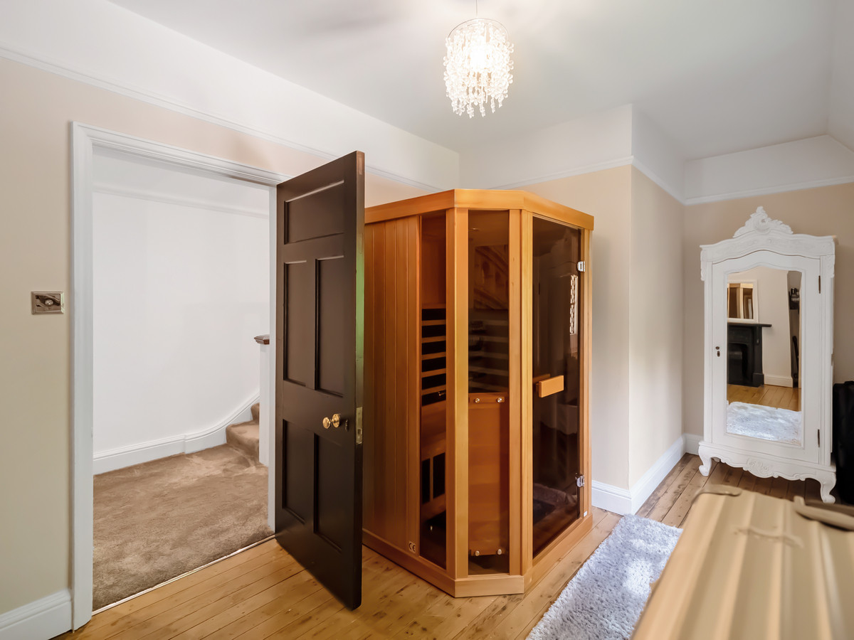 There are six bedrooms, with the principal at the end of the hallway having its own ensuite. Four further double bedrooms, two of which have a shower and sink unit. The sixth bedroom is a single room currently used as a sauna room.