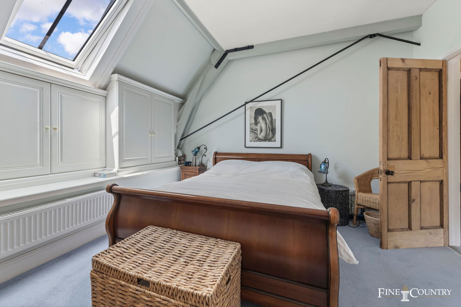 Outside, a private, west-facing terrace garden offers all-day sun. The property also features a garage and two off-street parking spaces. The garage and adjoining room present potential for conversion to a self-contained annexe, subject to the necessary consents.