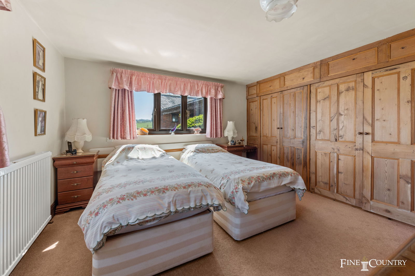 Externally, Firs Farm continues to impress. The grounds, extending to approximately 1.7 acres (subject to measured survey), include a formal lawned garden dotted with mature trees, borders and shrubs, established fruit trees, a large enclosed paddock with its own entrance off Church Lane and the central courtyard. There is a stable block offering three stables with an attached large car port and barns to the rear. An attached garage providing secure parking and additional storage. Over the years, the land has been used in a variety of ways, including grazing for sheep and ponies, and it would lend itself beautifully to small-scale/hobby equestrian use or simple enjoyment as part of a country lifestyle.
