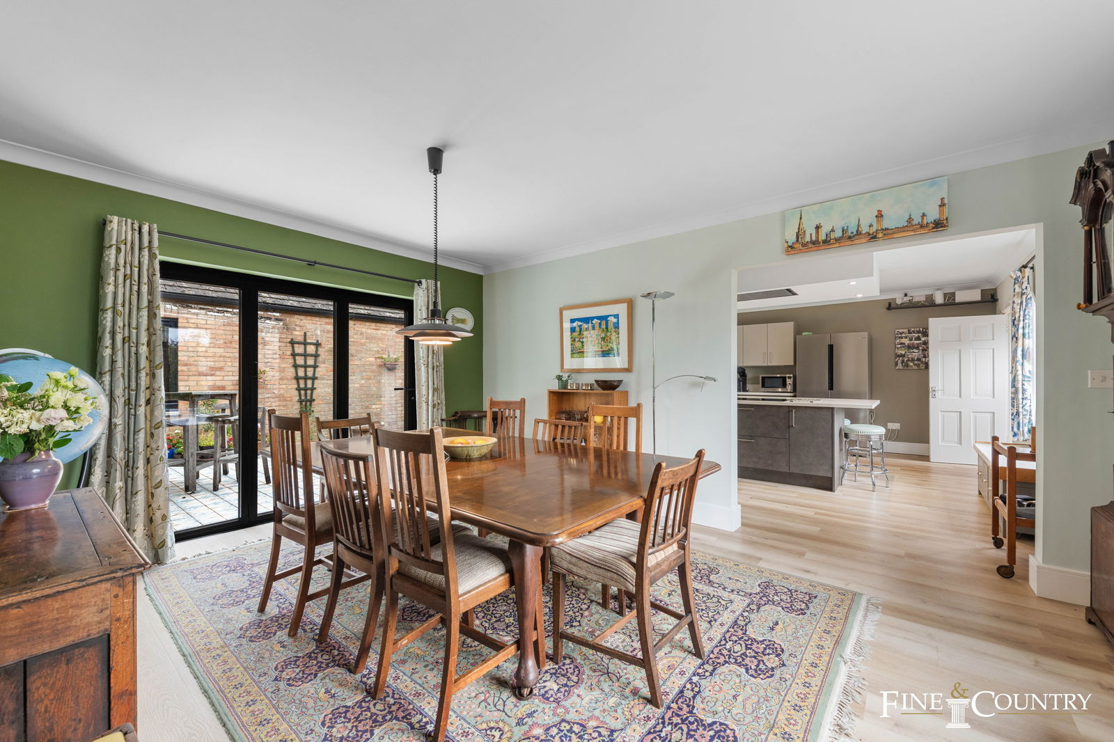The kitchen flows seamlessly into the dining room, where bi-fold doors open out onto a sun-drenched, south-facing Mediterranean courtyard. Perfect for entertaining, this intimate space invites long al fresco lunches and convivial evenings under the stars.