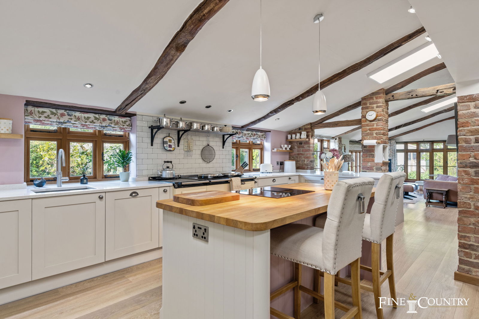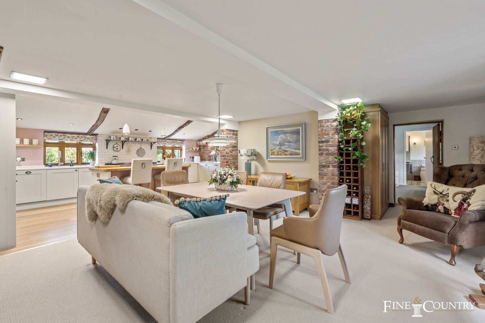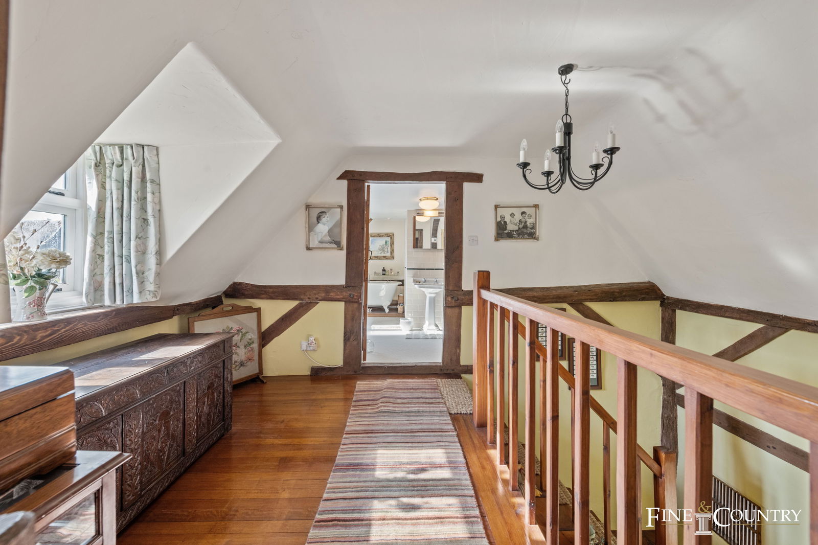Beck Farm Lodge is a Grade II listed, quintessential English cottage, with origins dating back to 1680. The current owners have thoughtfully extended and modernised the property, which now boasts two inviting front reception rooms, a study, and an spacious open-plan kitchen, dining, and family area. Additional ground floor conveniences include a walk-in pantry, a utility/boot room, and a WC.