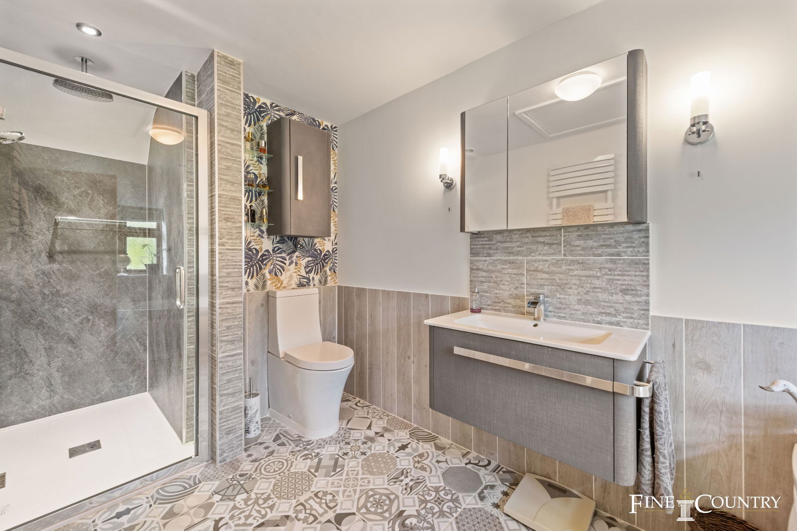 This delightful residence features four bedrooms, including a master suite located on the ground floor, complete with a stylish contemporary en-suite bath and shower room. The first floor accommodates three additional bedrooms, along with a spacious family bathroom. Notably, two of the first-floor bedrooms can be accessed via a quirky spiral staircase from the open-plan area, adding an element of character to this already distinctive home.