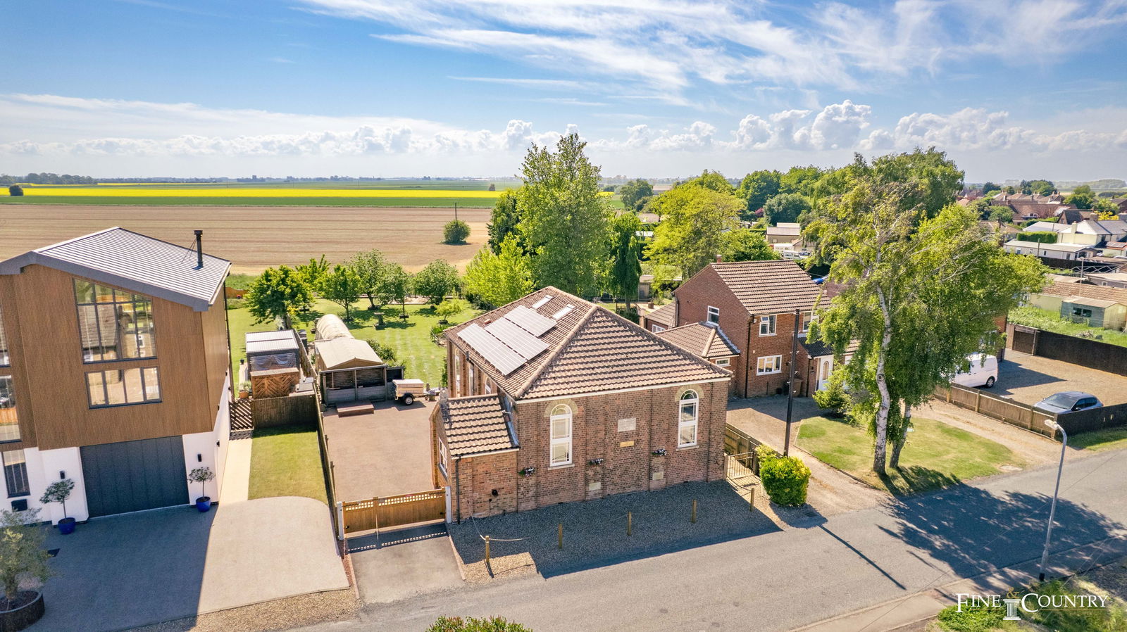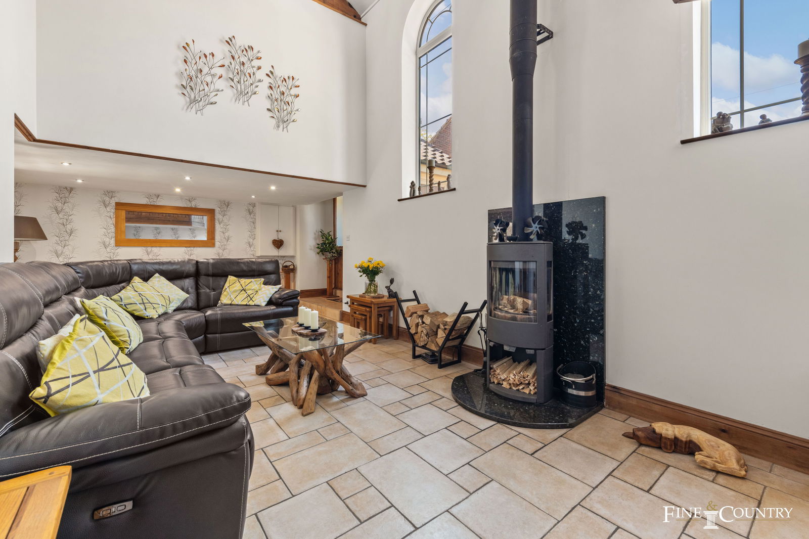 Architectural elements from its ecclesiastical past remain beautifully preserved. Arched, church-style windows sit beneath sculpted rooftop gargoyles, framing uninterrupted views of the surrounding fields – perfect for appreciating Lincolnshire’s expansive skies. From the moment you arrive, it is evident that this four-bedroom home offers far more than conventional rural living.