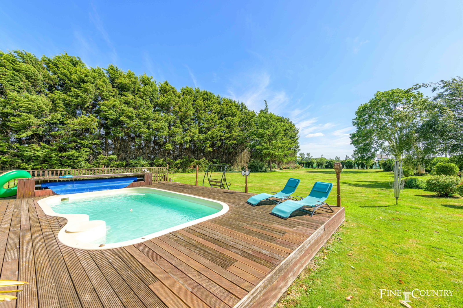 The quiet and peaceful garden is expansive, largely laid to lawn but with decking directly from the south facing side of the house. Here, the heated swimming pool creates a lovely sense, in summer, of being on holiday.