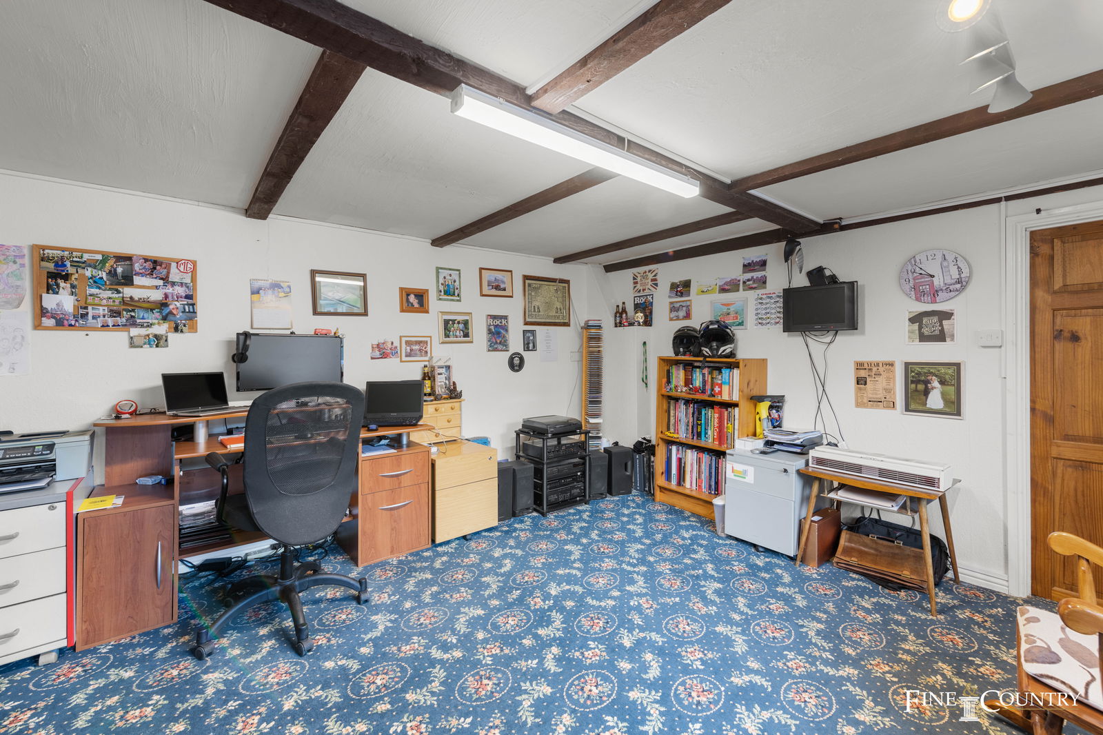 This delightful property sits on just under two acres and is fully enclosed with metal-framed solid timber gates at the entrance. A spacious gravelled drive offers parking for numerous vehicles and a timber double garage stands at the far end. The annex is positioned parallel to the house and has been used for both offices and as extra accommodation. Along the back of the annex are two large storage rooms in tandem, one with an inner lining making it extra secure.