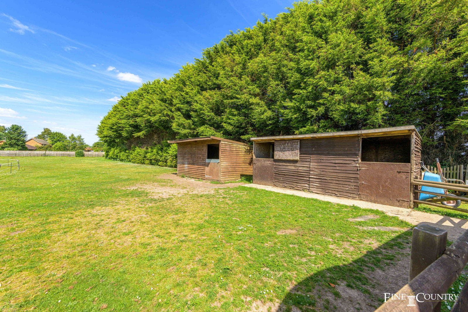 The equestrian facilities include an approximately one acre paddock completely fenced in post and rail and sheltered by high evergreen trees and hedging. Water is to the paddock on an automatic feeder system. Three timber stables stand in the field close to the drive, one 11ft. 1in. x 9ft. 7in. and another 9ft. 7in. x 8ft. 5in. adjoining each other, and another for a horse or as a foaling box measuring 15 ft. 7 in. x 11 ft. 6 in. There is also a chicken run in one corner.