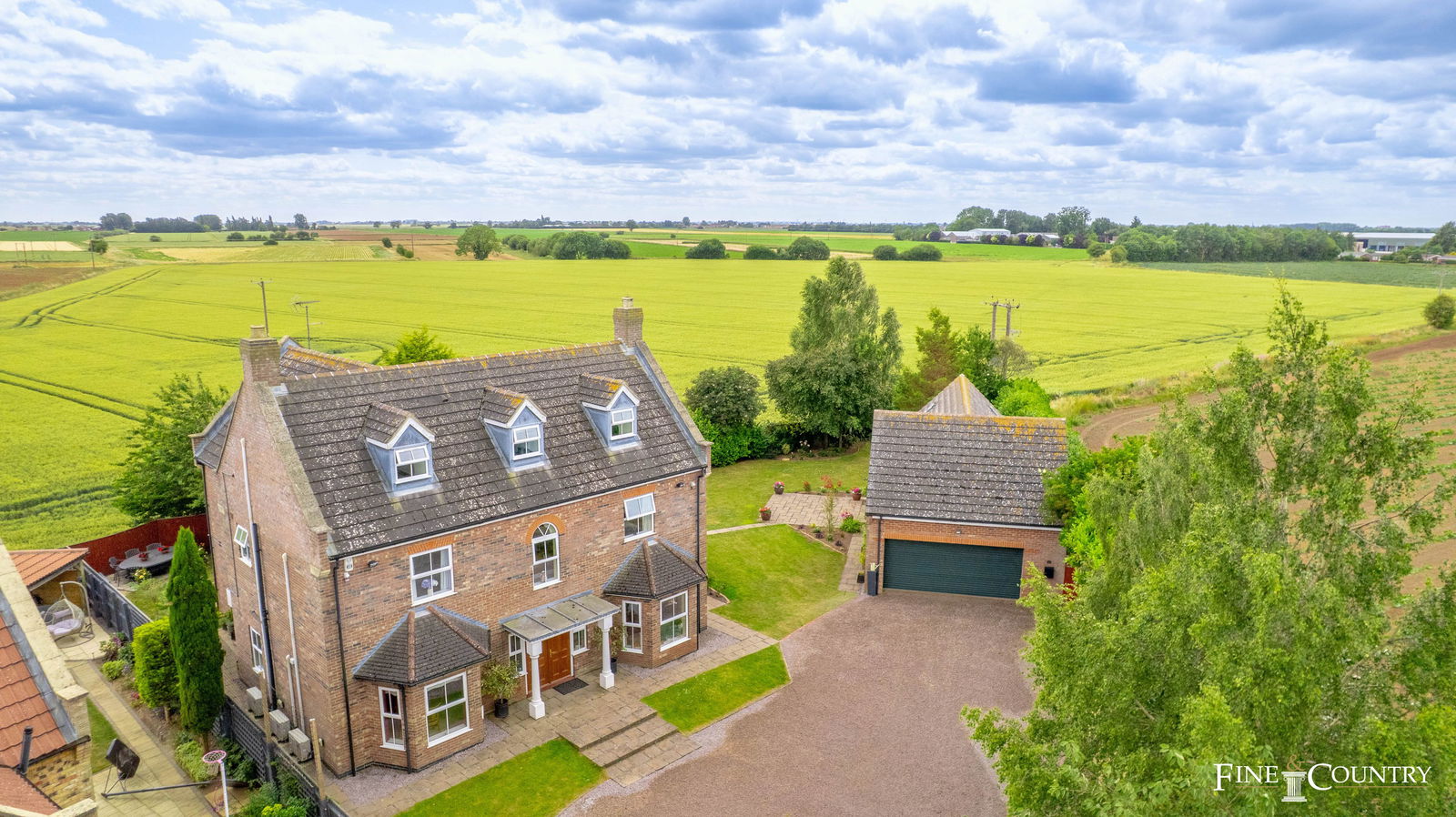 Privately positioned at the end of a peaceful cul-de-sac and backing onto open fields, Harrington House is a substantial modern home offering over 5,000 square feet of accommodation across the house and its outbuildings. With a generous plot of around 0.34 acres and a tranquil setting in one of South Lincolnshire’s most desirable villages, it is a home that combines scale, seclusion and everyday practicality.