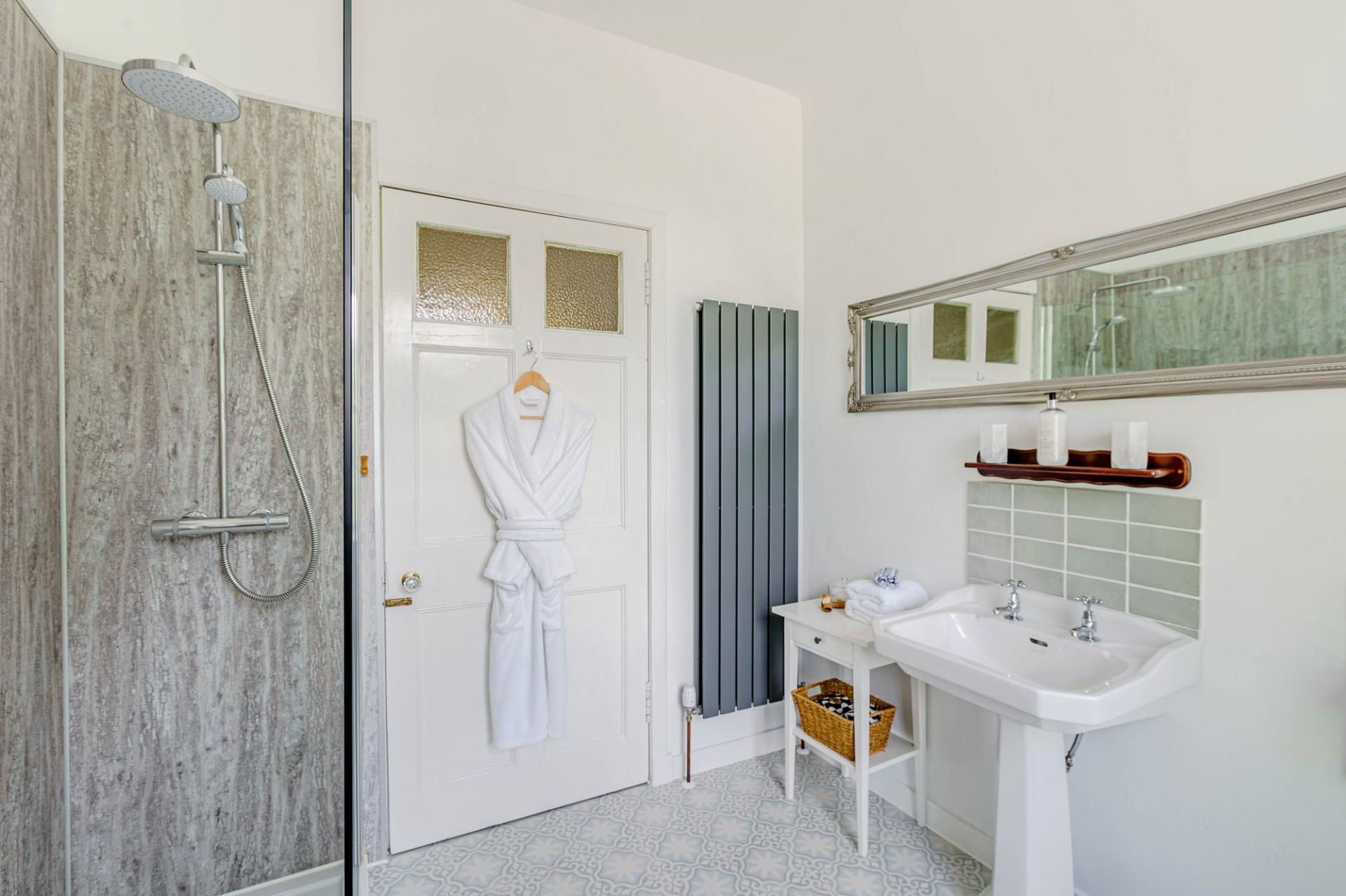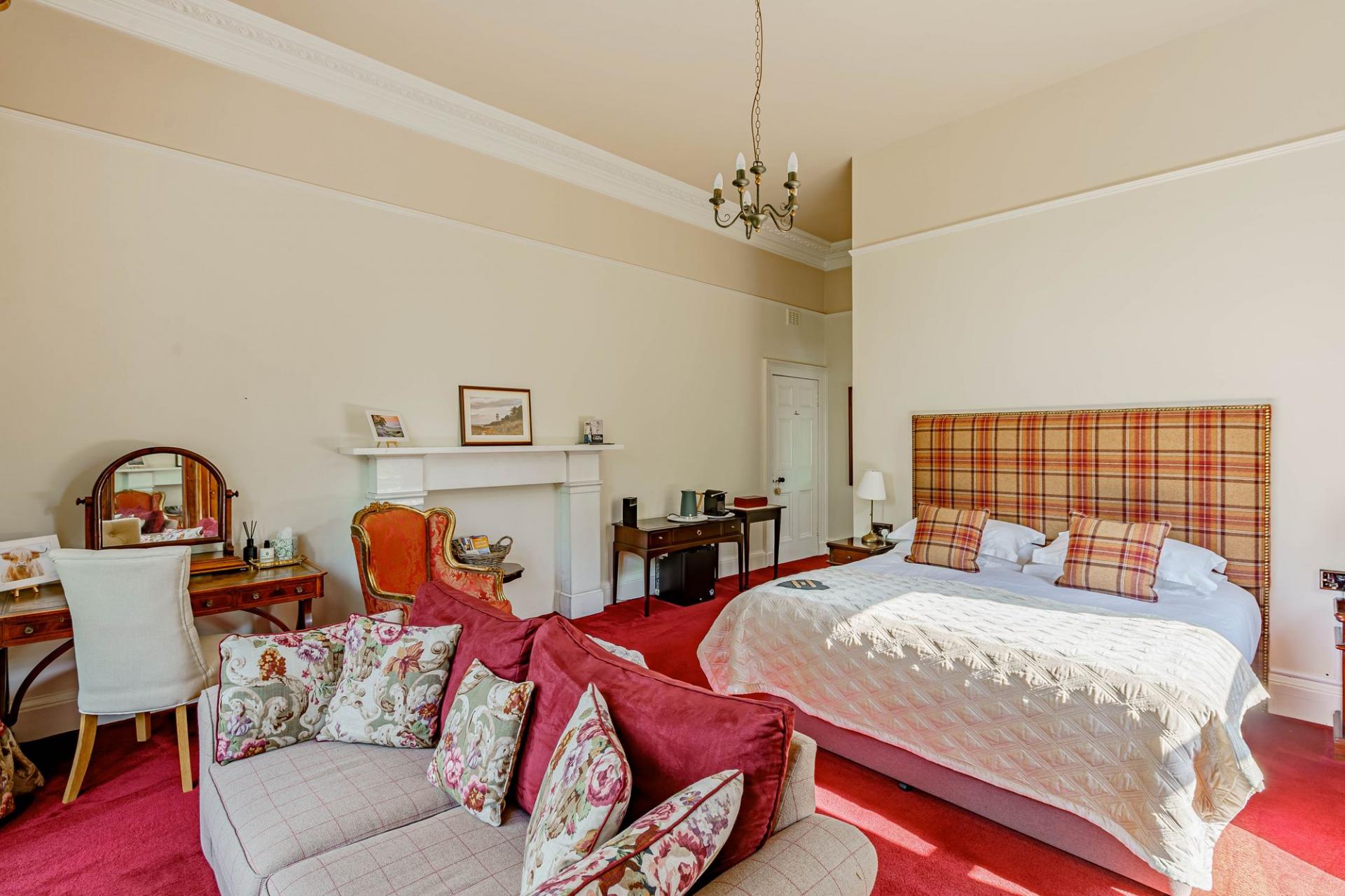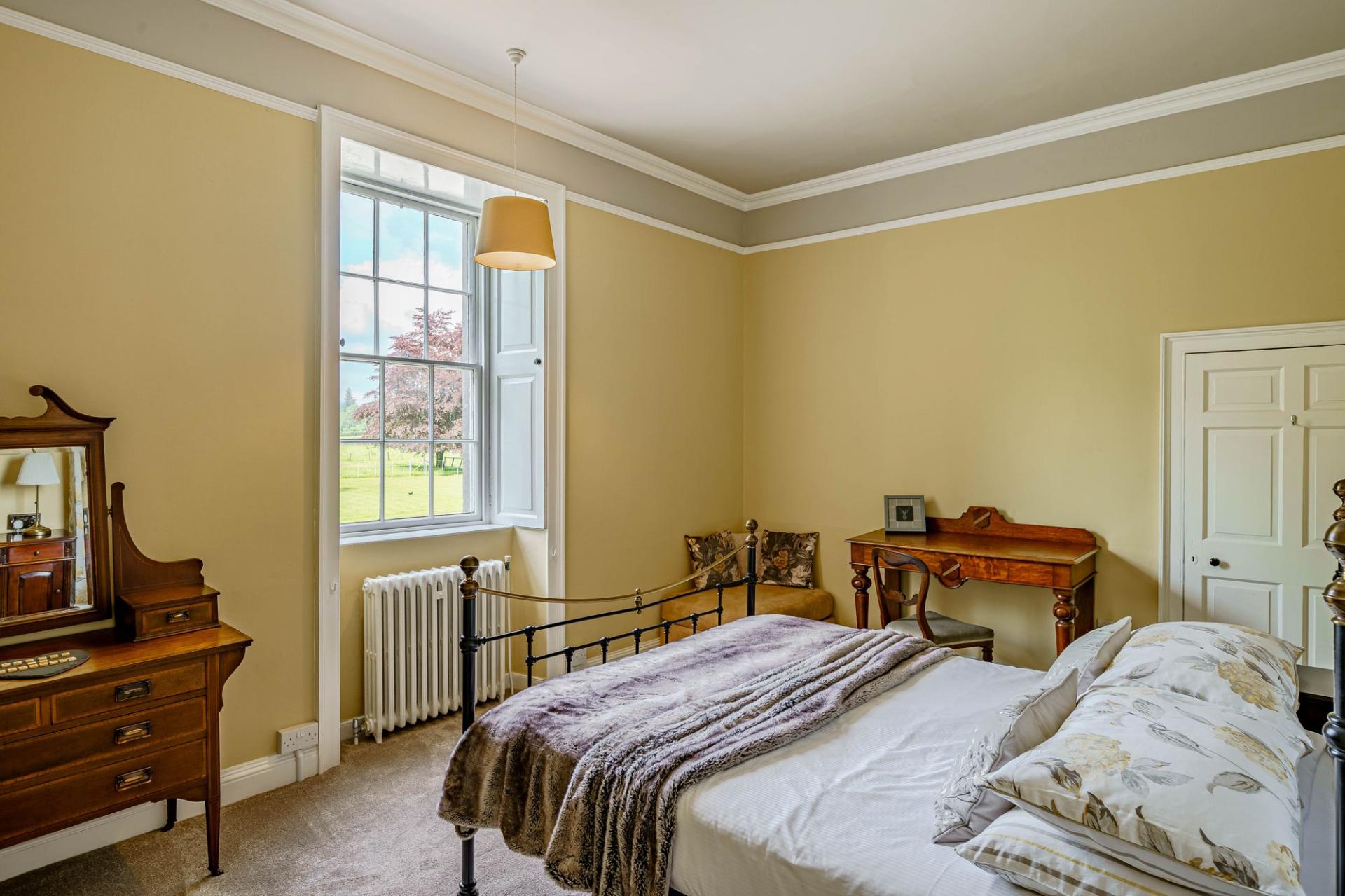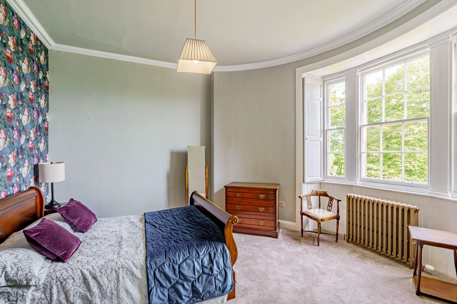 As you ascend the stairs there is a cosy reading nook at half landing level, with built-in bookshelves. On the first floor, six double bedrooms can be found (two with ensuite bathrooms), along with the family shower room. The two principal suites boast fabulous views either over the lawn, field and Lowther hills, or over the River Nith to Tynron Doon and the Nithsdale Valley beyond, and they feature superb, contemporary ensuite bathrooms with freestanding baths, large walk-in shower with rainhead attachments and high quality sanitaryware. Two of the rooms feature lovely bow-ended walls with far reaching views and the remaining two bedrooms offer views over the front lawns and field. The shower room is modern yet traditional, in keeping with the history of the building, and comprises a large walk-in shower with rainhead shower attachment, WC and wash hand basin.