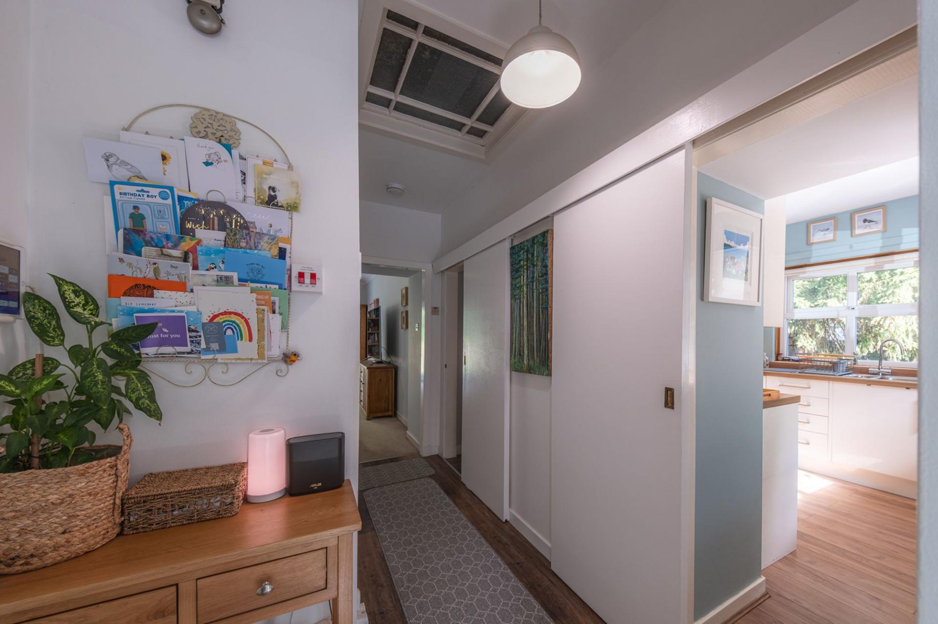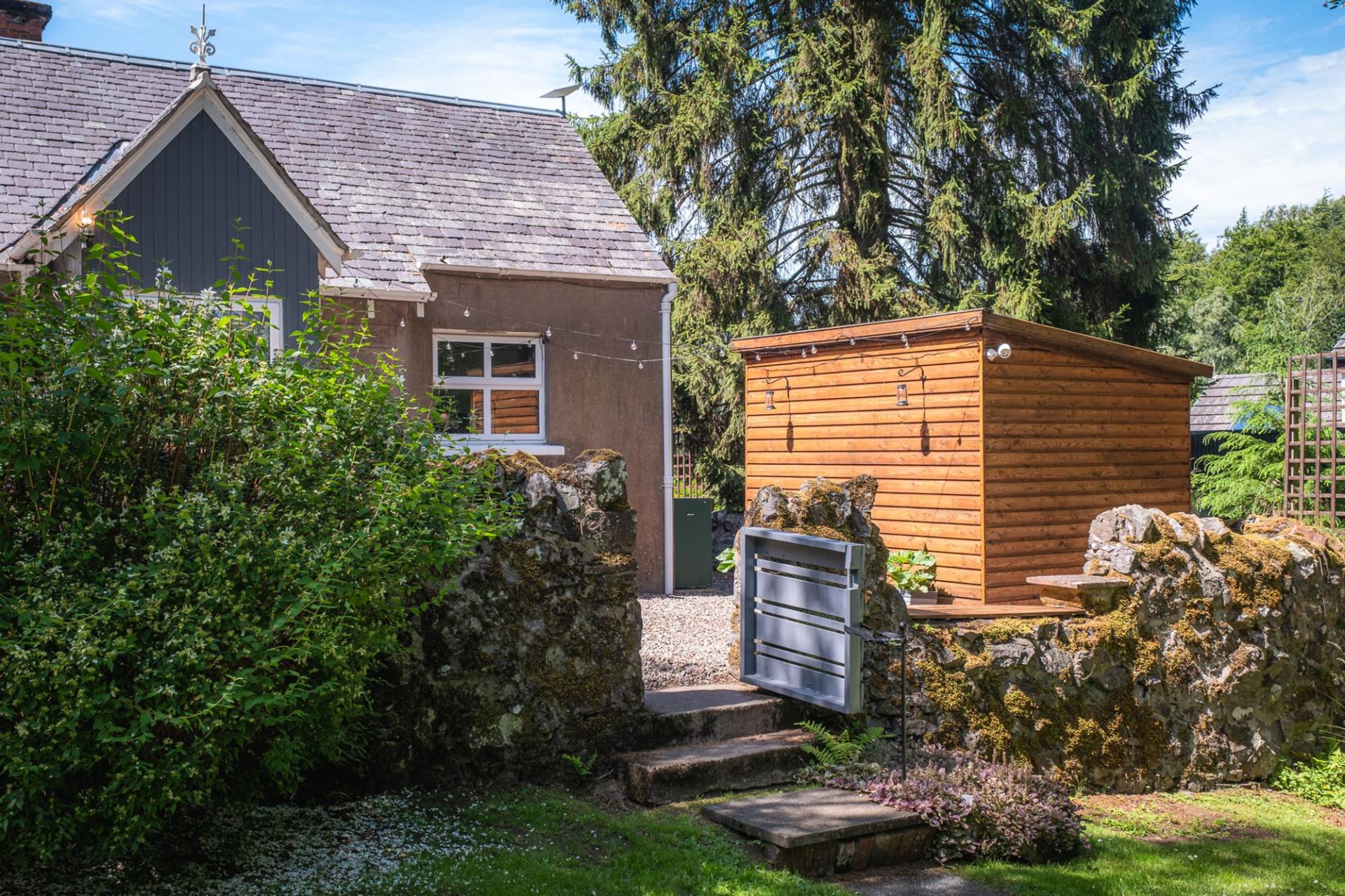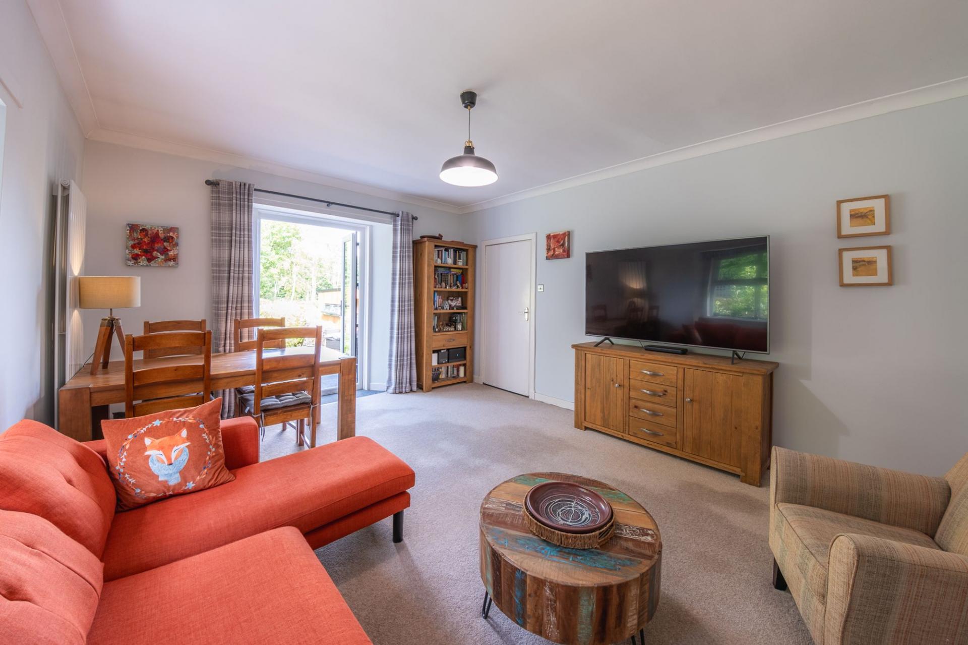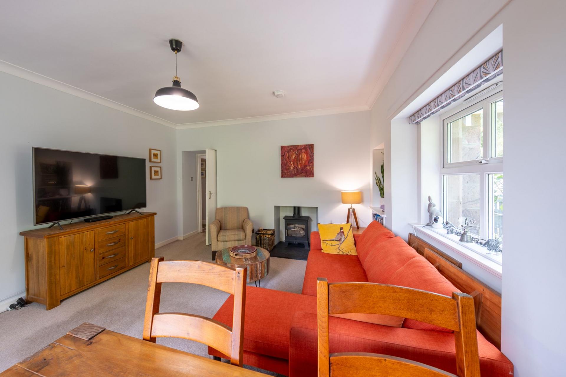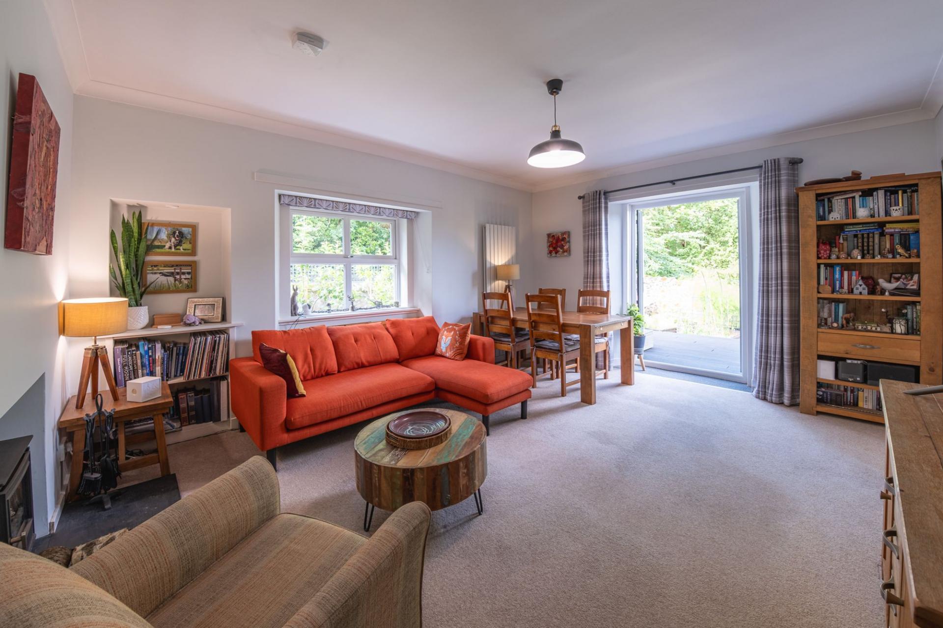 This quintessential cottage is an inviting, single story, detached property. The front door opens into the vestibule, where there is ample space for coats and shoes, before then entering through an internal doorway to the hallway. The hallway is fitted with timber effect flooring leading all the way to the bathroom, giving a flowing feel to the home. The property’s well planned layout includes a beautiful living room with wood burning stove and a dual aspect vista over the lovely mature gardens, provided by both a window and French patio doors. Access to the outdoors has been maximised from the living room with the clever addition of the French patio door onto a beautiful, west facing decked area which gives access to the stunning wraparound gardens.