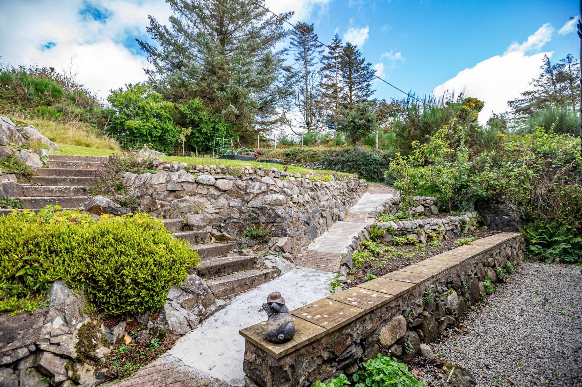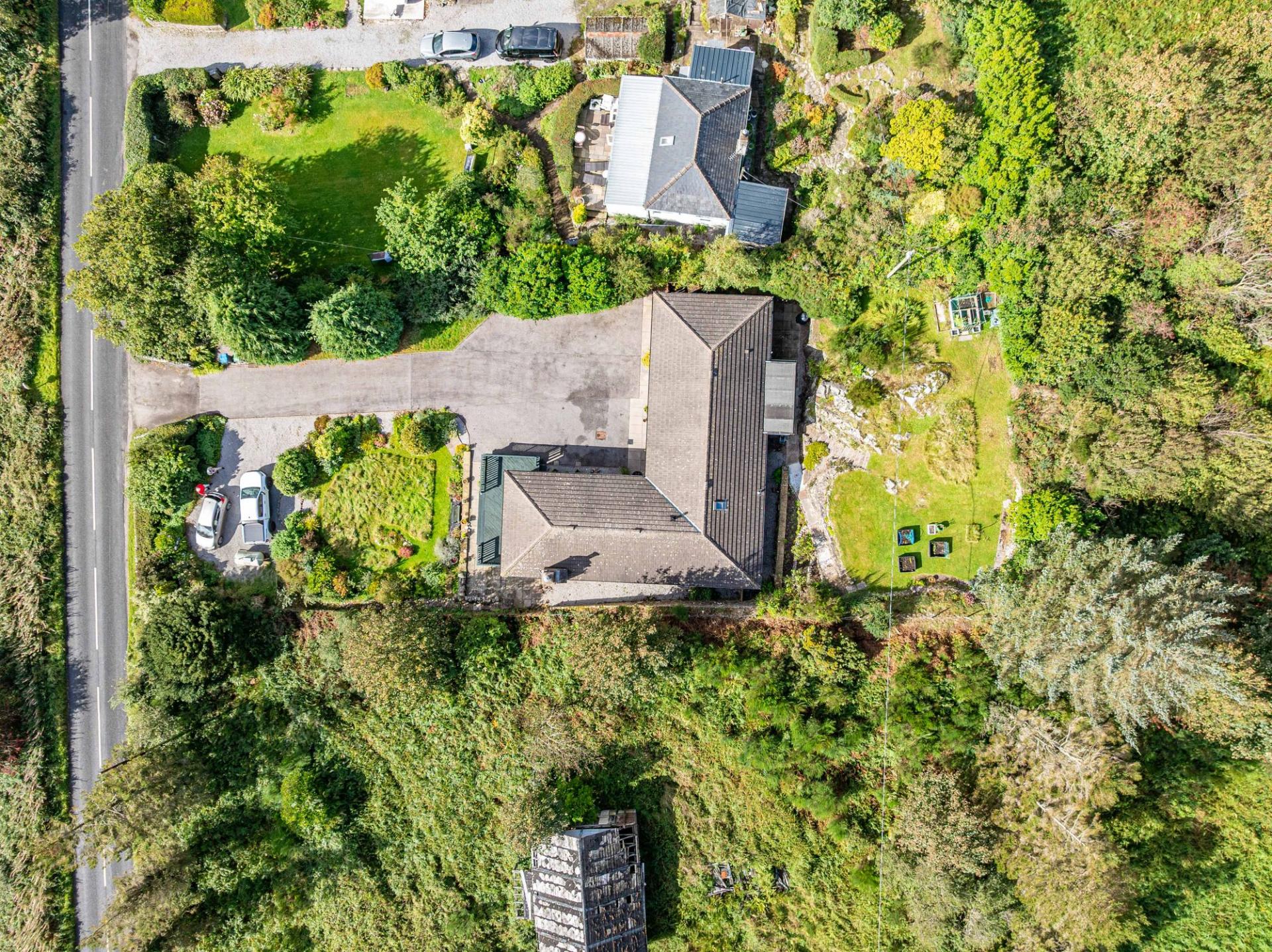 Set back from the road in an elevated position, the property is accessed via a tarmac driveway, offering ample parking and turning, and culminating at the garage and front door. There is additional parking in a gravelled area to the right-hand side of the driveway entrance too.