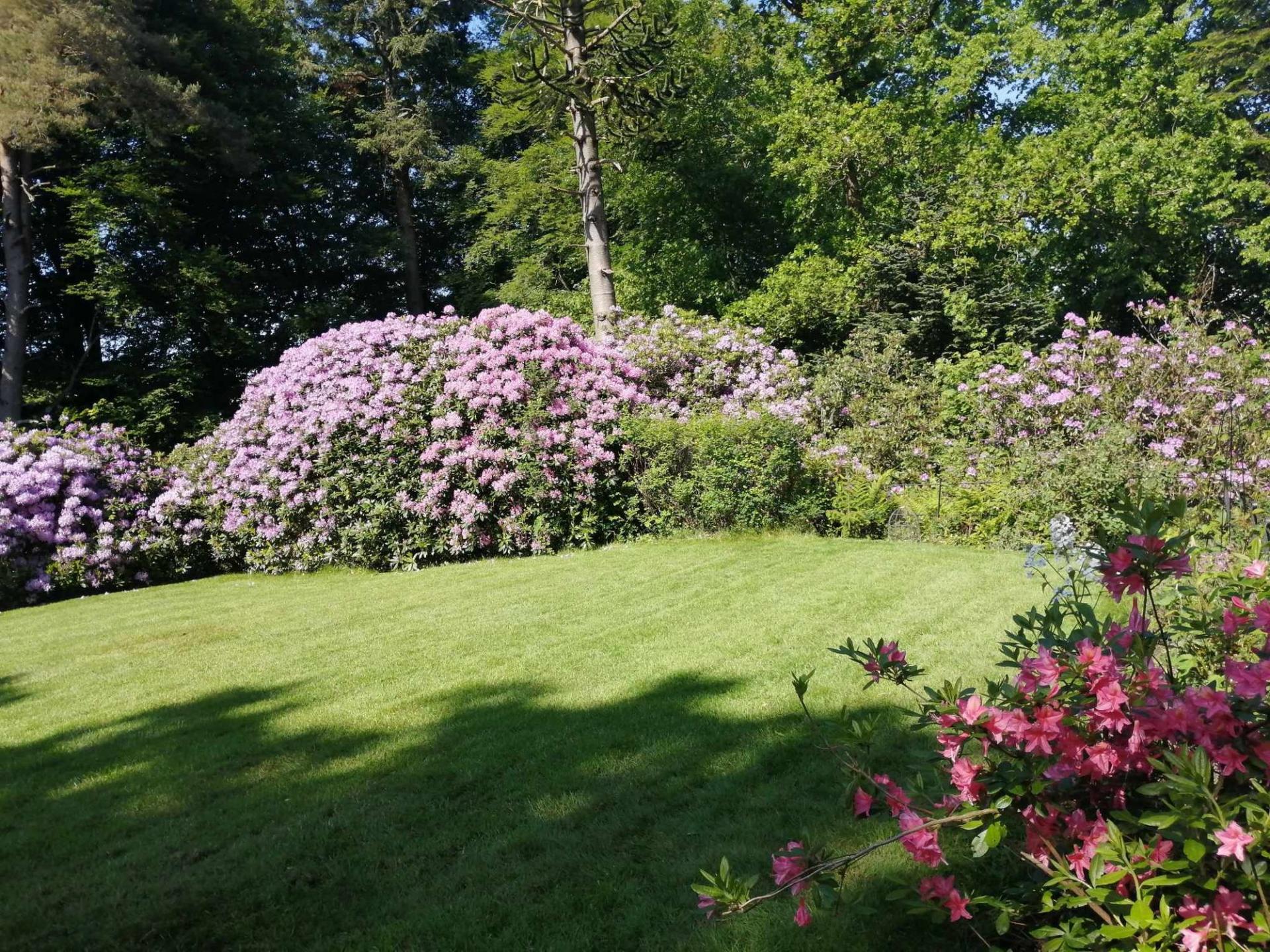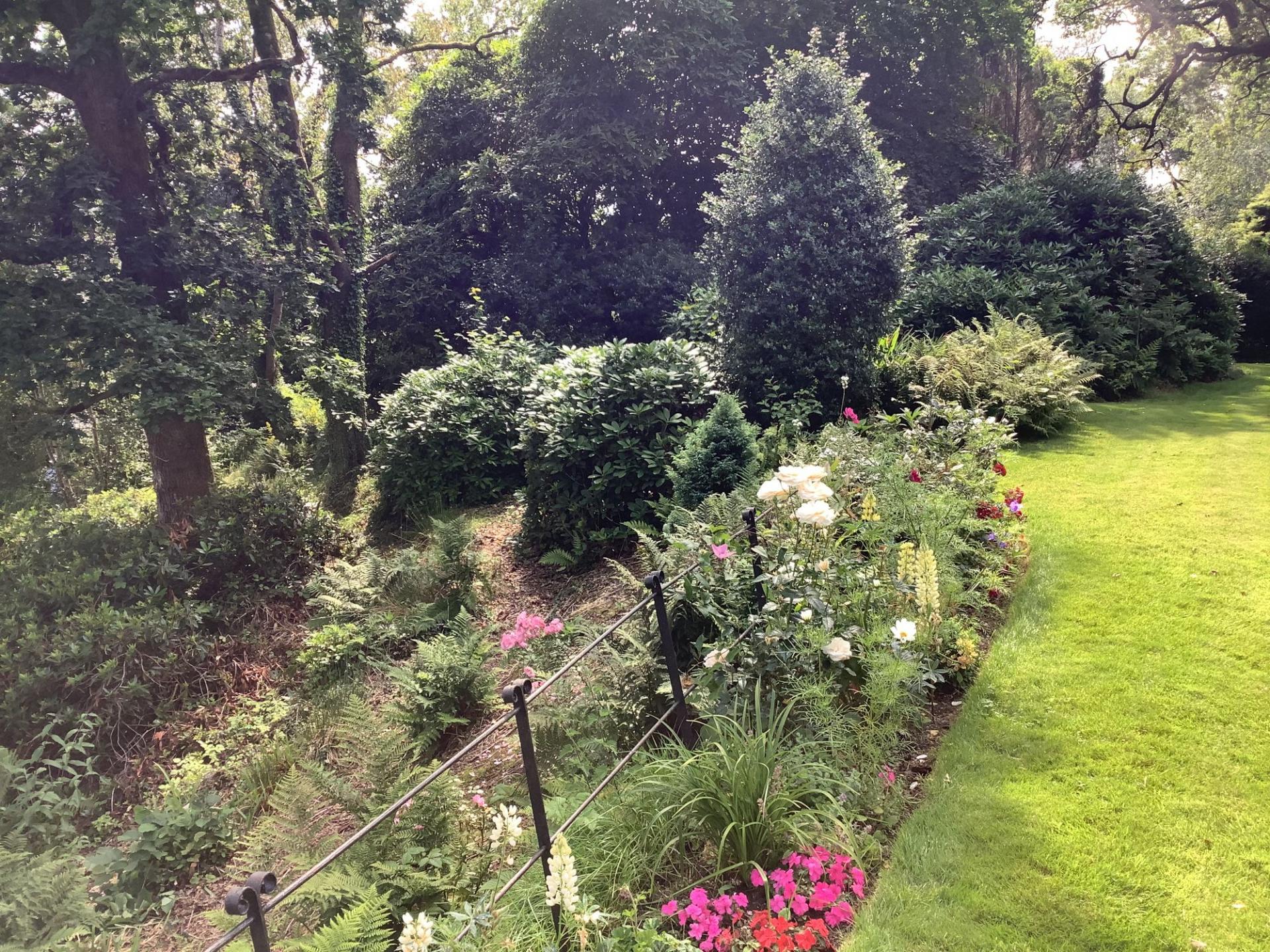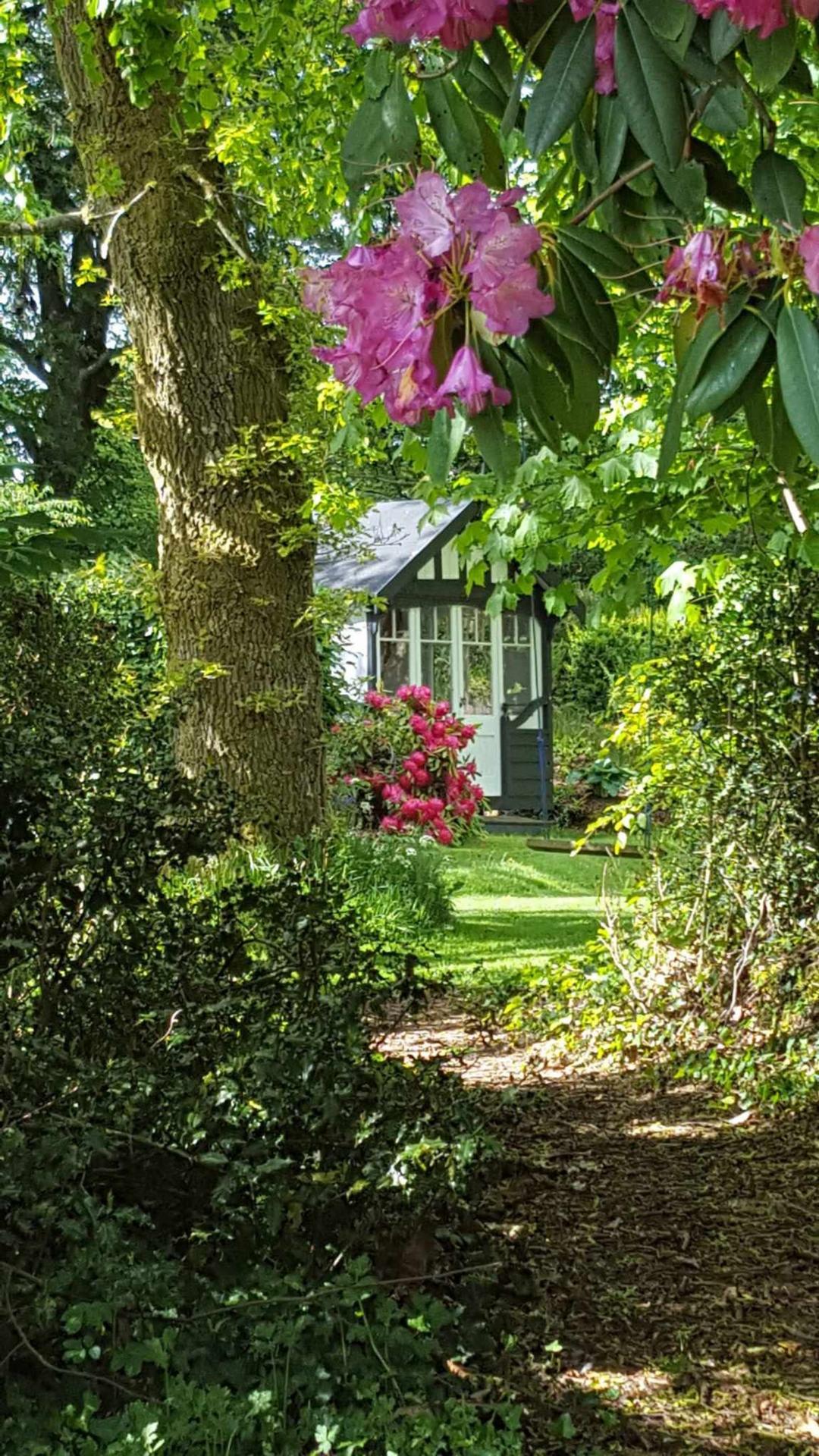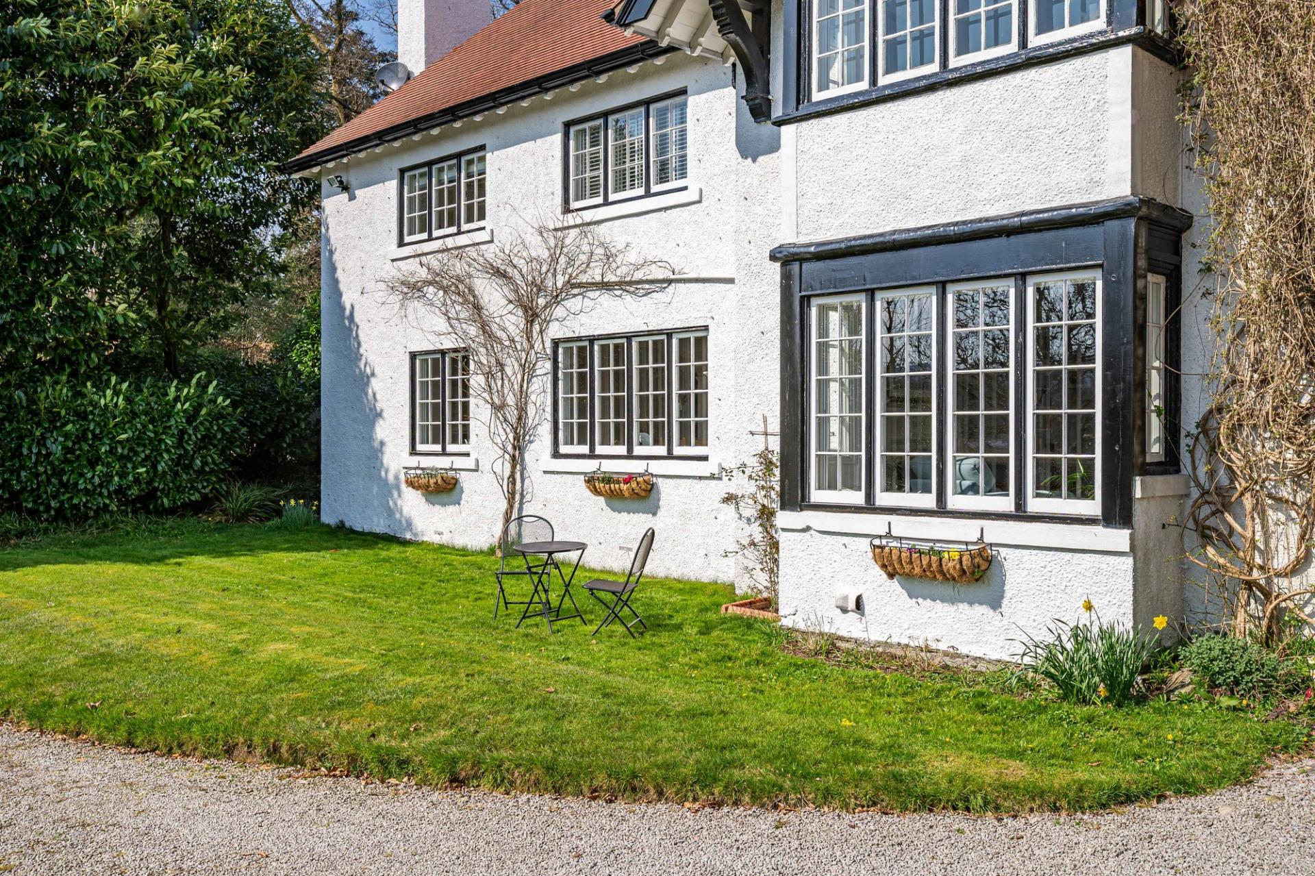 There are beautifully landscaped gardens that wrap around the property. Positioned on a sunny and slightly elevated site, the garden offers a high level of privacy. There are expanses of lawn, deep flower beds, mature shrubs and many rhododendrons that fill the garden with colour during the summer months. Paths meander around the grounds, which extend to just over 2.2 ac and includes a lovely area of woodland. There is a greenhouse, two external stores, and a wood store but the star feature of the garden is the charming summerhouse. This summerhouse is original to the property, originally made by Boulton & Paul, and has been fully restored by the present owners. It features a rotating base, ensuring that you can follow the sun as it moves around the garden.