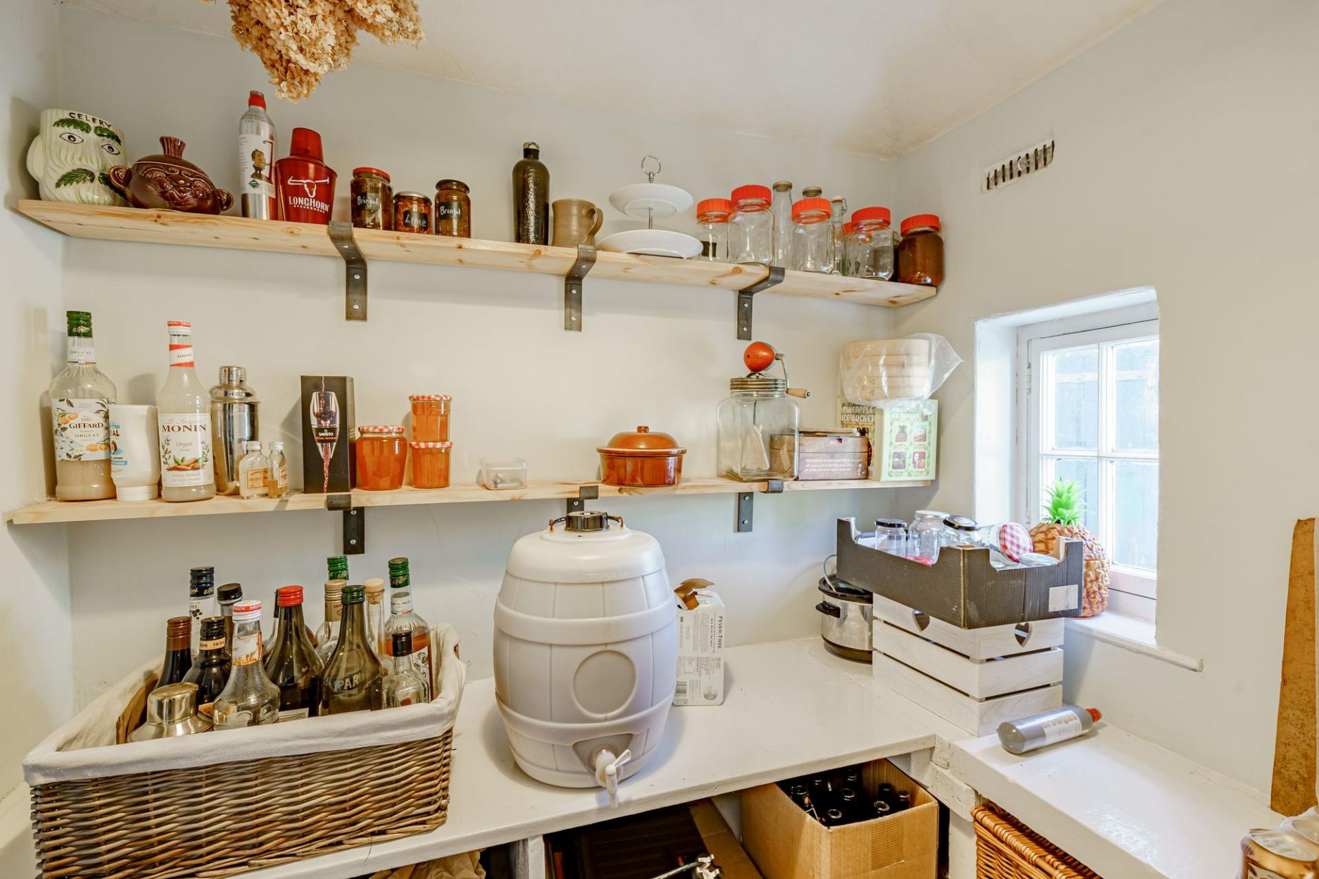Ancillary rooms on the ground floor include a boiler room, two shelved pantry cupboards, cloaks storage and a WC.
