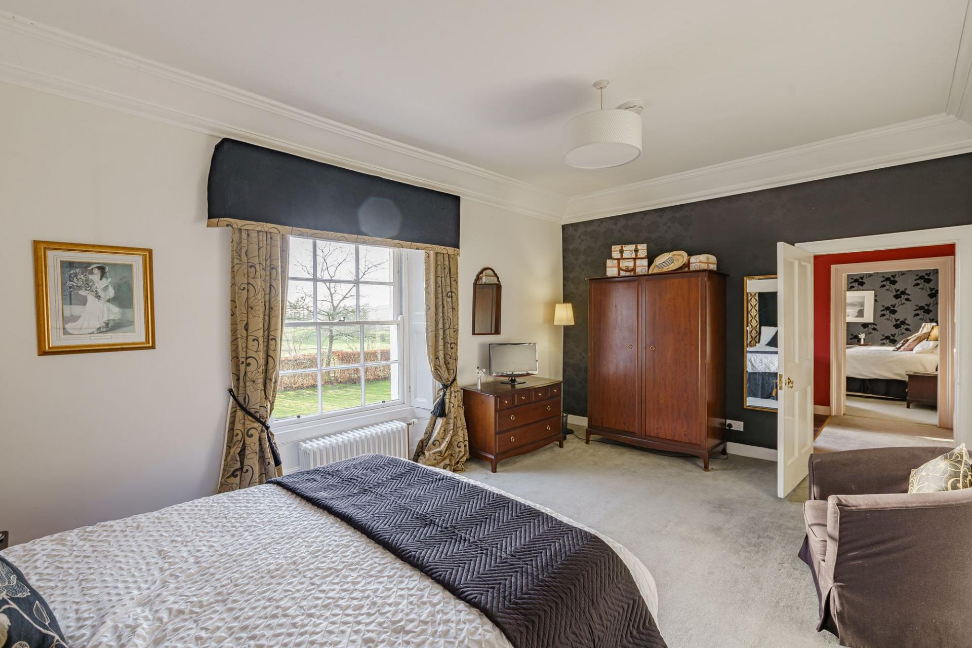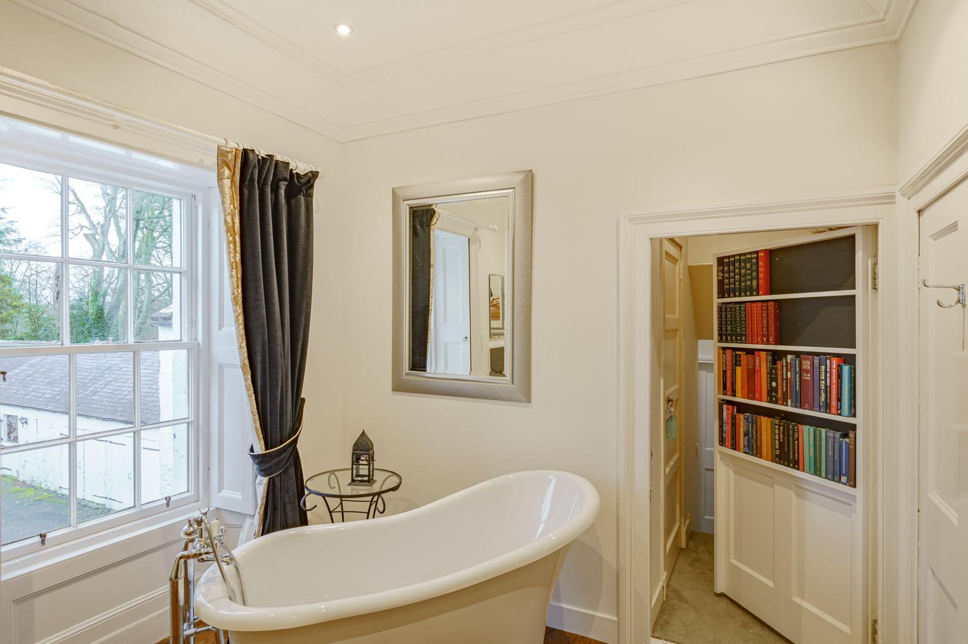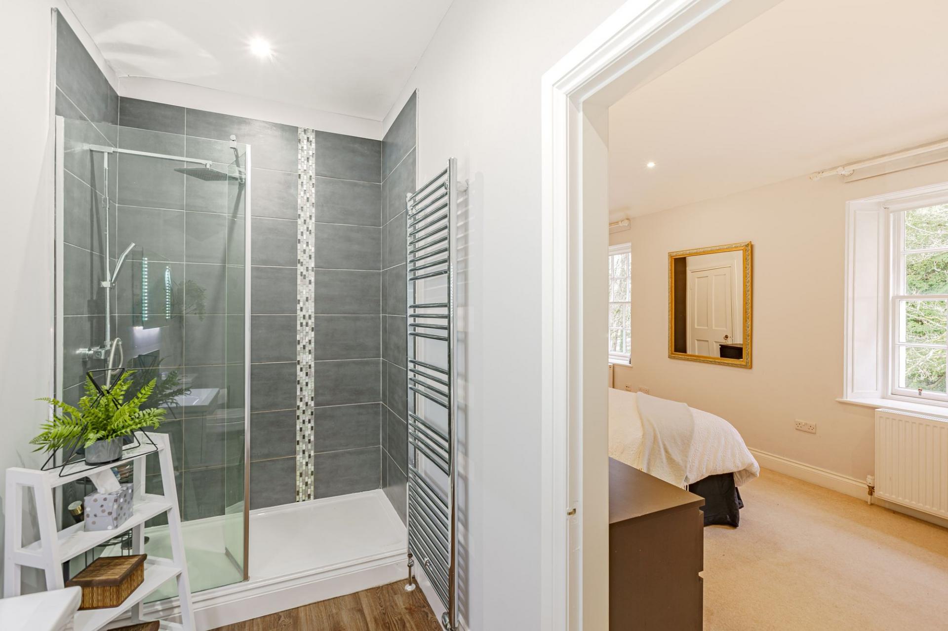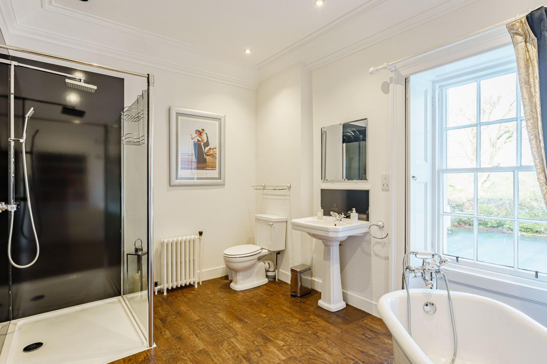 Holmhill’s first floor can be accessed by either of the two staircases. The principal staircase leads up to a bright and spacious landing with seating area and views over the paddock. There is a boxroom providing storage. The two double bedrooms accessed via this staircase are generous in size and enjoy ample natural light via their large windows. Both bedrooms enjoy spacious en-suite bathrooms, with free standing rolltop baths and separate showers. A hidden door from one of the bathrooms leads through to an inner landing, where two further double bedrooms (both with en-suite shower rooms) can be found. The secondary staircase then leads back down from this second landing to the ground floor. The configuration of the upstairs layout easily lends itself to being B&B accommodation, which the property has been run as in the past.