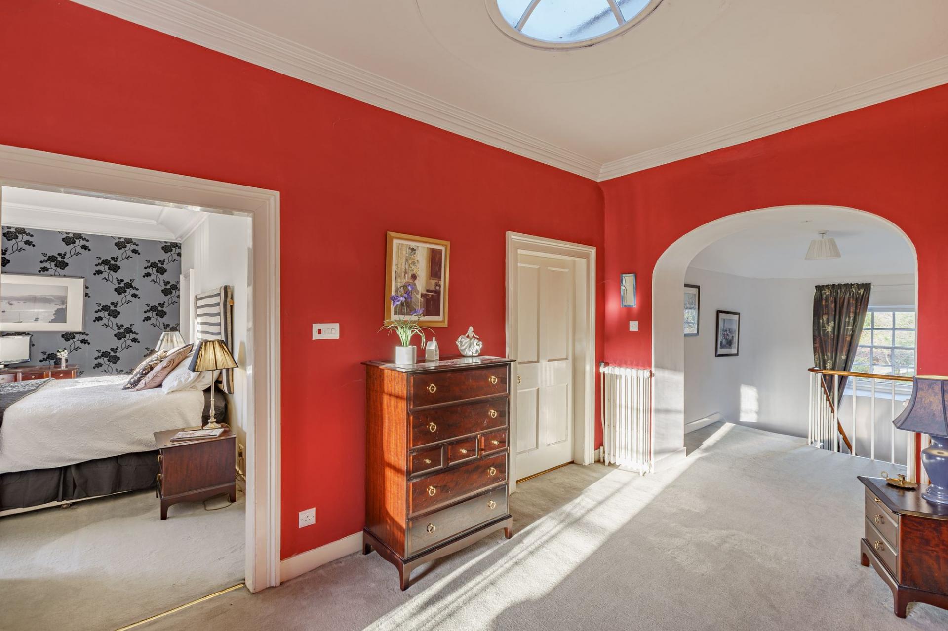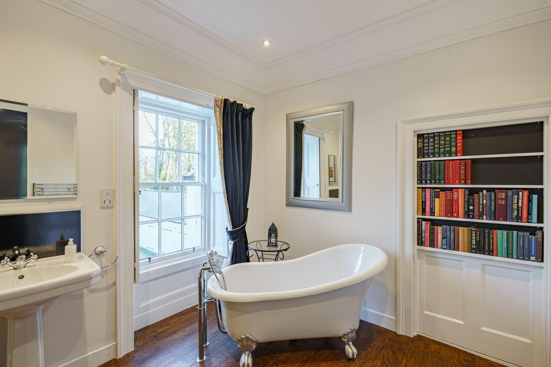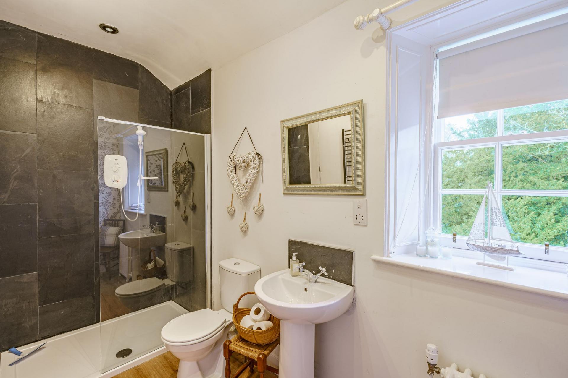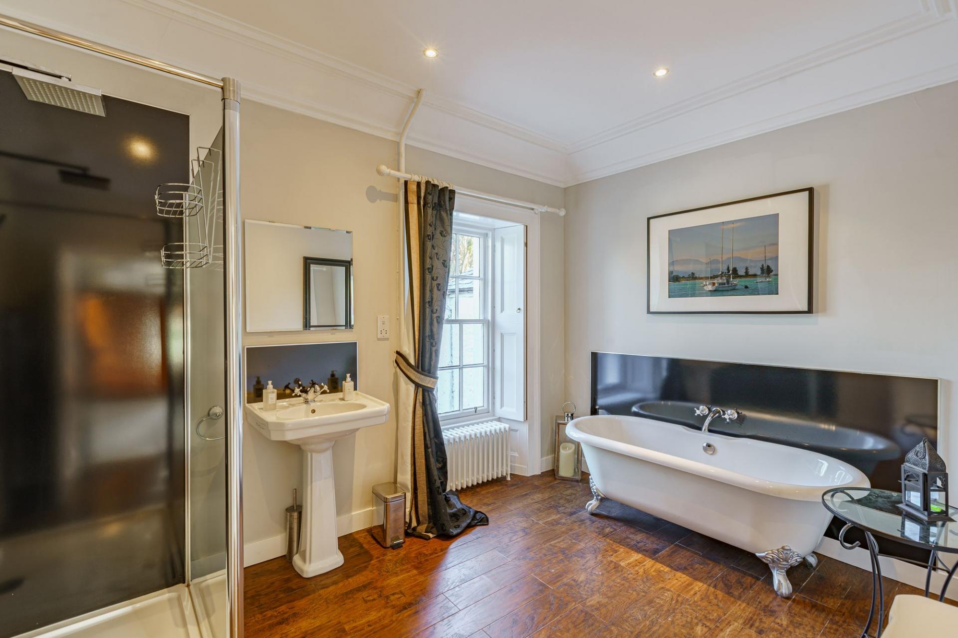 Holmhill’s first floor can be accessed by either of the two staircases. The principal staircase leads up to a bright and spacious landing with seating area and views over the paddock. There is a boxroom providing storage. The two double bedrooms accessed via this staircase are generous in size and enjoy ample natural light via their large windows. Both bedrooms enjoy spacious en-suite bathrooms, with free standing rolltop baths and separate showers. A hidden door from one of the bathrooms leads through to an inner landing, where two further double bedrooms (both with en-suite shower rooms) can be found. The secondary staircase then leads back down from this second landing to the ground floor. The configuration of the upstairs layout easily lends itself to being B&B accommodation, which the property has been run as in the past.
