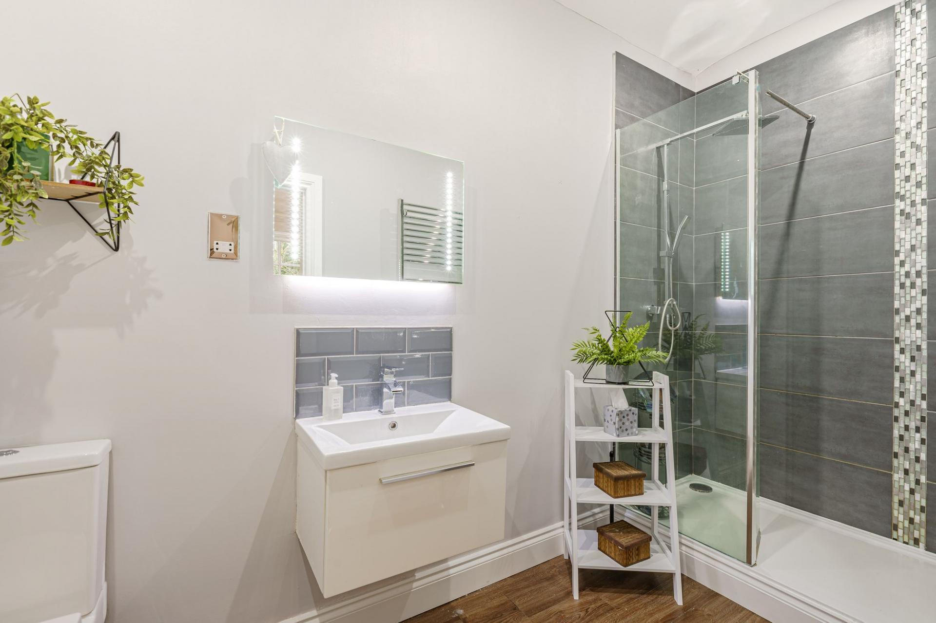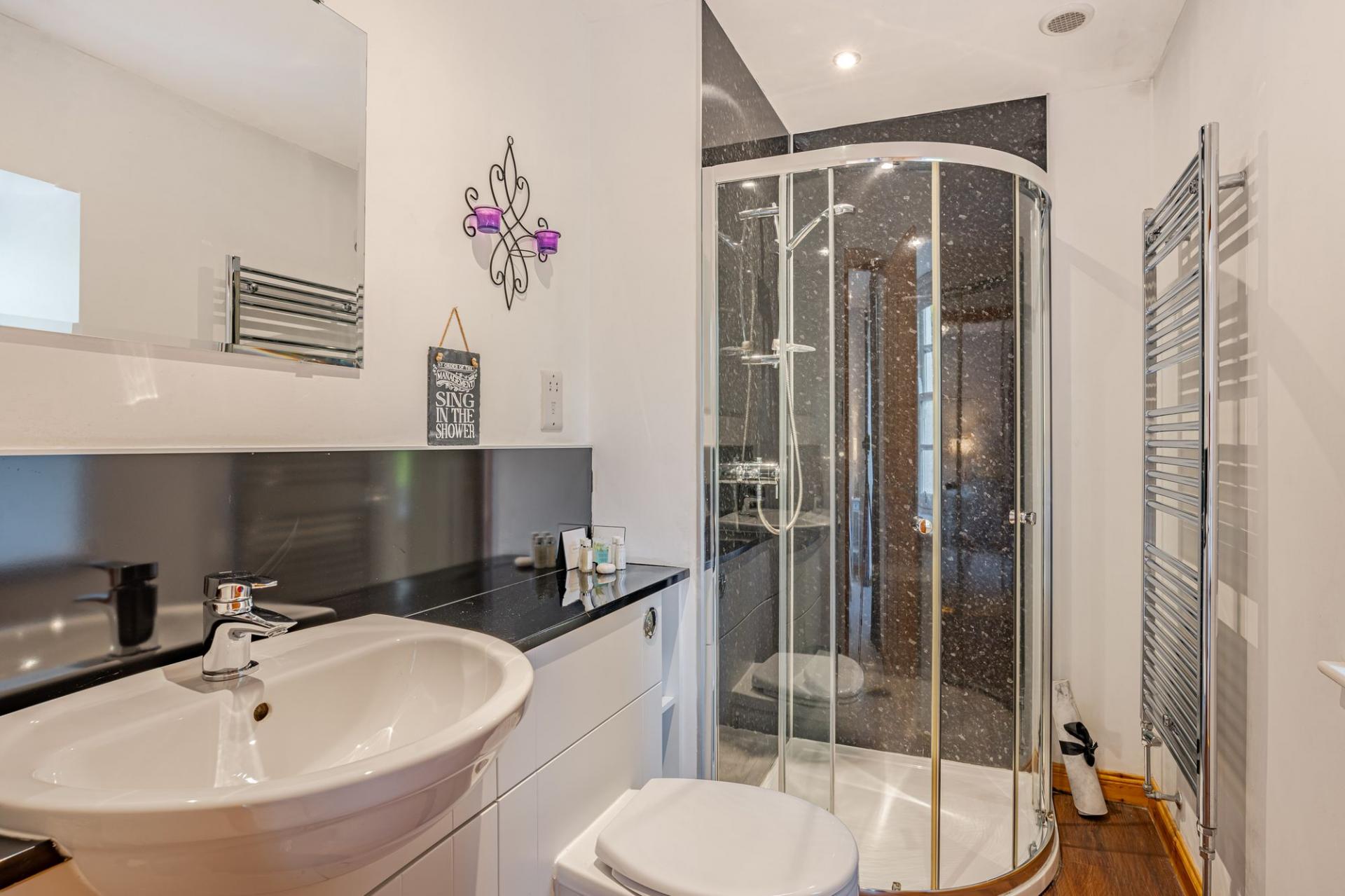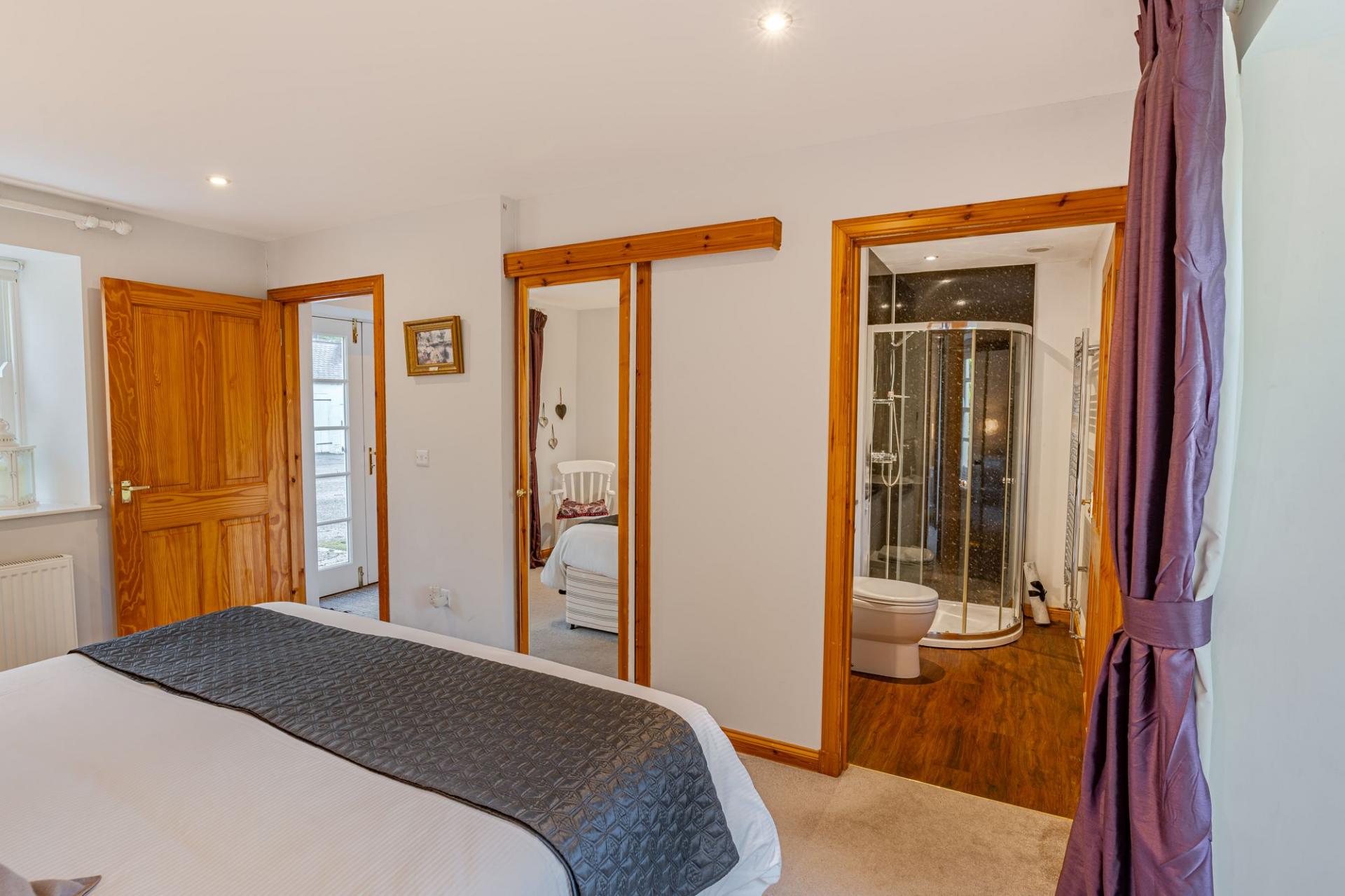 The ground floor double bedroom enjoys superb views to the hills and boasts built in wardrobes. There is a modern shower room adjacent, which can be closed off from the hall, thus creating an en-suite facility for the ground floor bedroom.