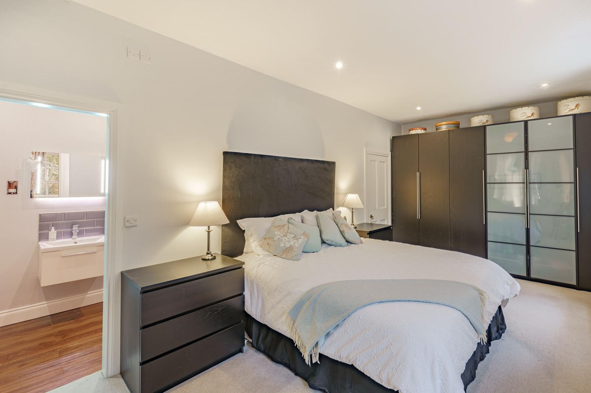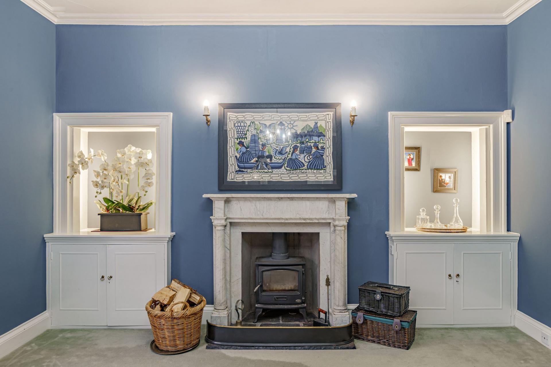 There are three flexible use reception rooms to be found. The beautiful sitting room enjoys a dual aspect with fabulous views and direct access to the terrace and garden. There is a charming window seat, built in display shelving and an attractive wood burning stove set within a marble mantelpiece. The adjacent dining room is a wonderful space to entertain in, with large window to the front elevation, display recesses and a wood burning stove set within a marble fireplace. To the eastern end of the ground floor, and adjacent to the kitchen, is a great playroom/living room, with wood effect flooring, a dual aspect and a wood burning stove.