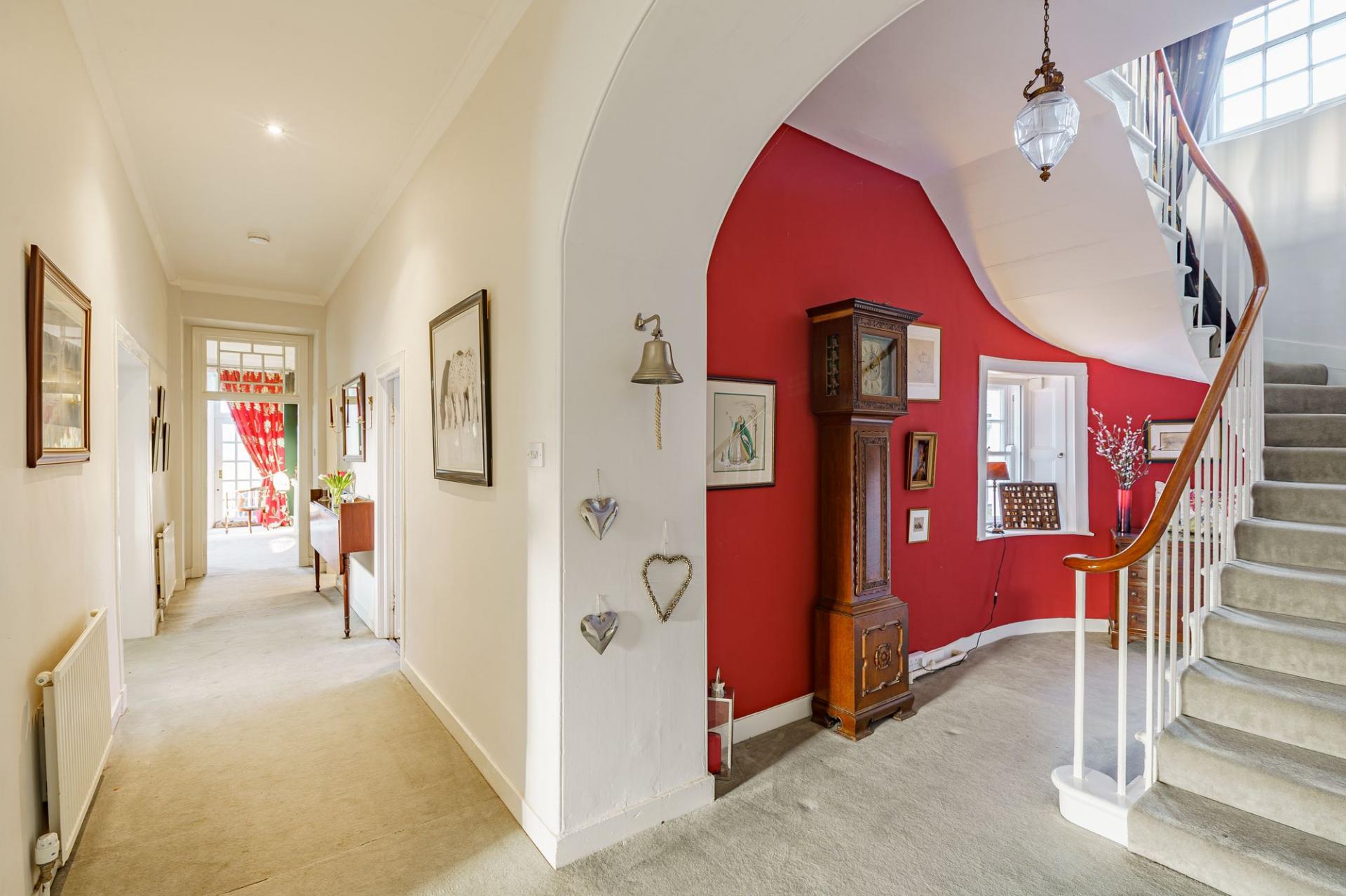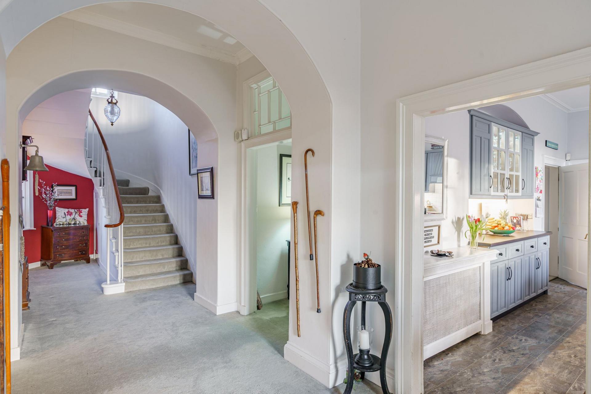 Primary access to the house is gained via front driveway, which culminates in a turning circle. Glazed double doors open into a welcoming and generous reception hall, with sweeping staircase rising to the first floor.