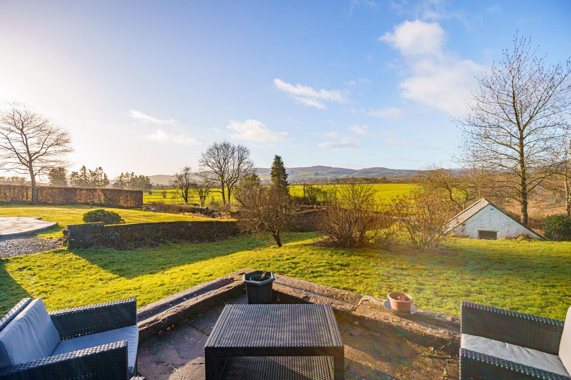 Holmhill is set in approximately 2 acres of beautifully tended garden grounds, boasting open views to the Carsphairn and Scaur hills. The grounds include expansive lawned areas, paved patios, mature shrubs and established borders and trees, a walled garden with fruit trees, a small pond, and an area of woodland (0.88 acres). There is a stone-built store (former ice house), potting shed, and direct access to the paddock (3.23 acres).