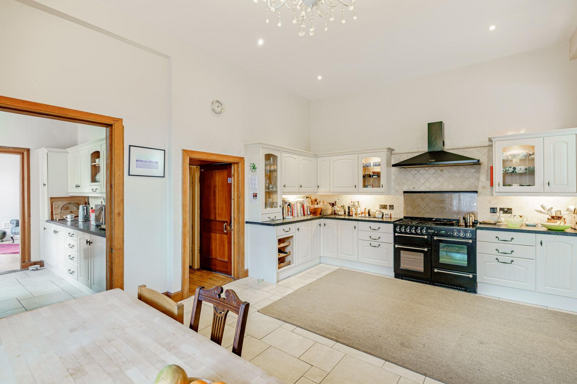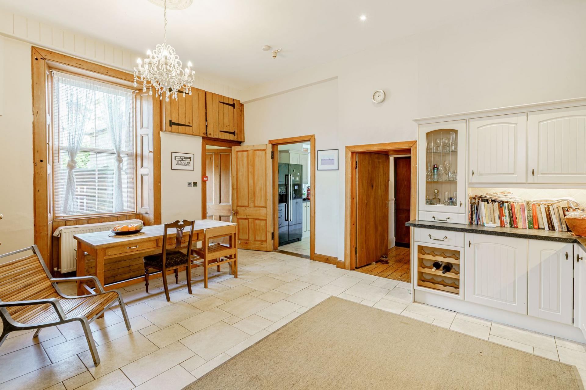 The kitchen/breakfast room is generous in size and is fitted with a good range of cream units and complementary worksurfaces. There is a range cooker with gas hob and electric ovens, tiled floor and ample space for dining furniture. In addition, the impressive original range is still evident in this room and is a lovely feature. A unique feature of this house is the secondary kitchen located adjacent to the main kitchen. This room offers additional kitchen storage, a circular sink, integrated dishwasher and space for an American style fridge/freezer.