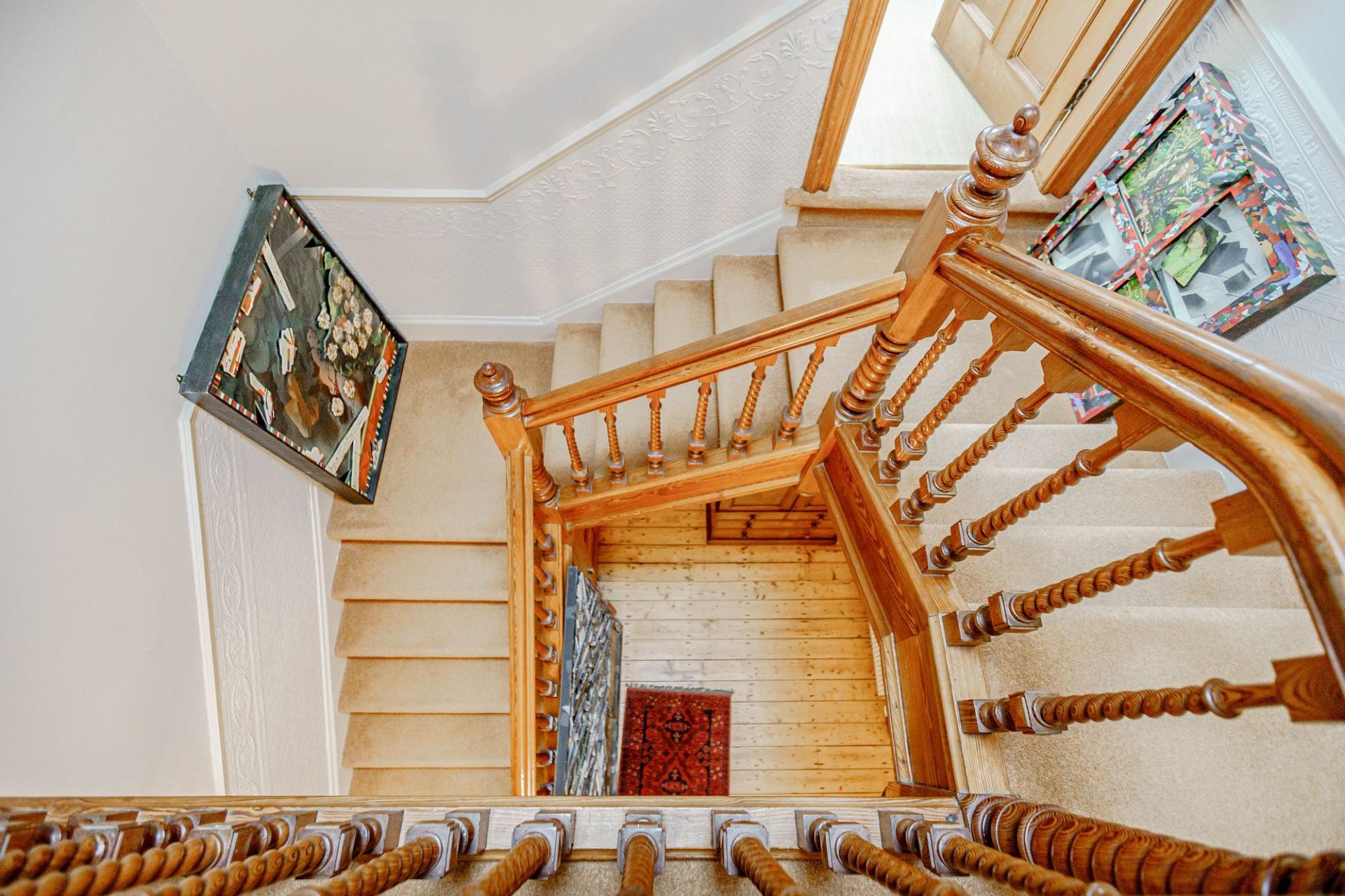 The fine staircase rises to a light and spacious first floor landing, lit by a skylight above. At half landing level is a spacious WC, which could easily house a bath or shower if desired. There are four double bedrooms on the first floor, all of which boast large windows and original fireplaces. All bedrooms feature ensuite shower rooms, so are ideal for family living and/or perhaps a Bed & Breakfast opportunity. The fifth bedroom is presently used as an office.