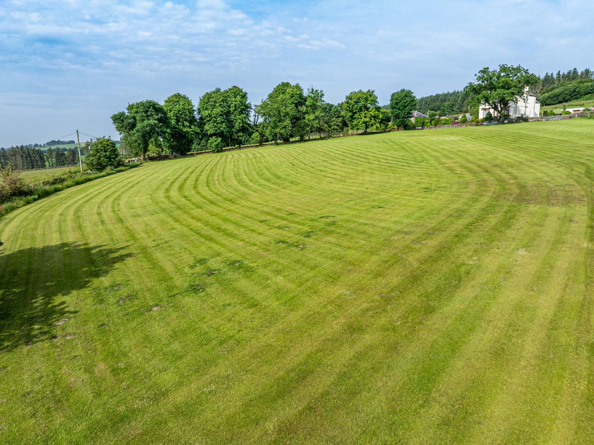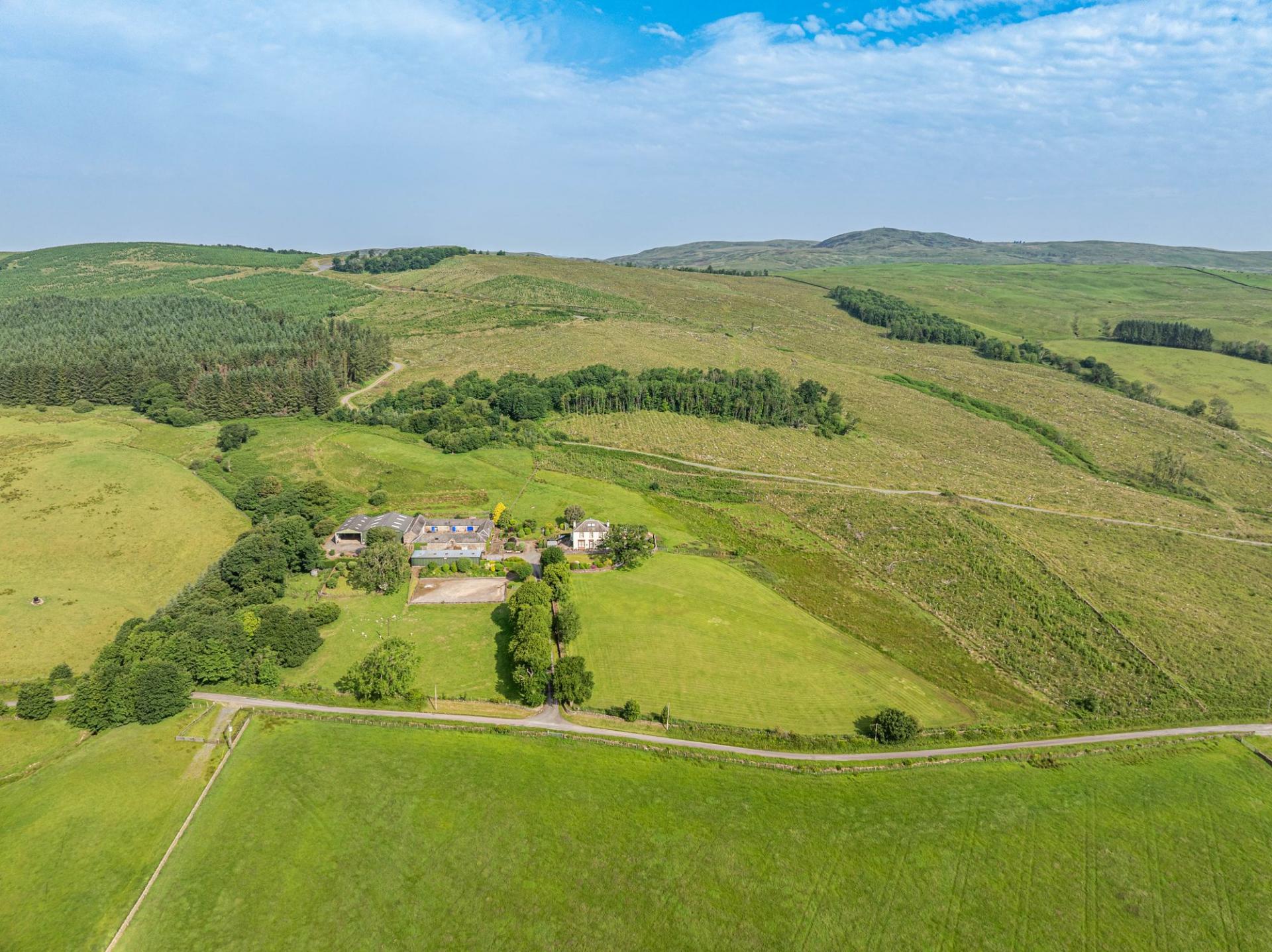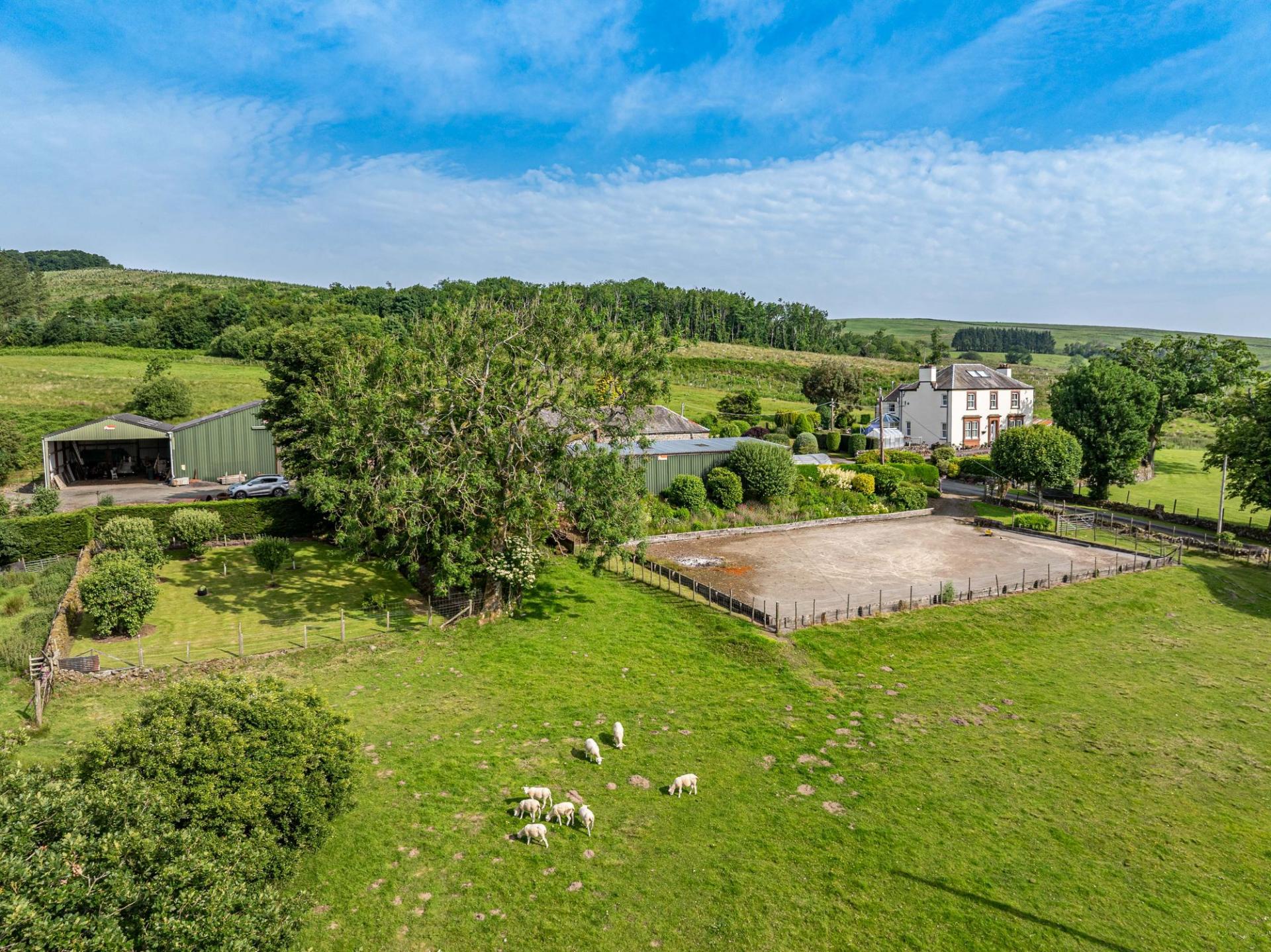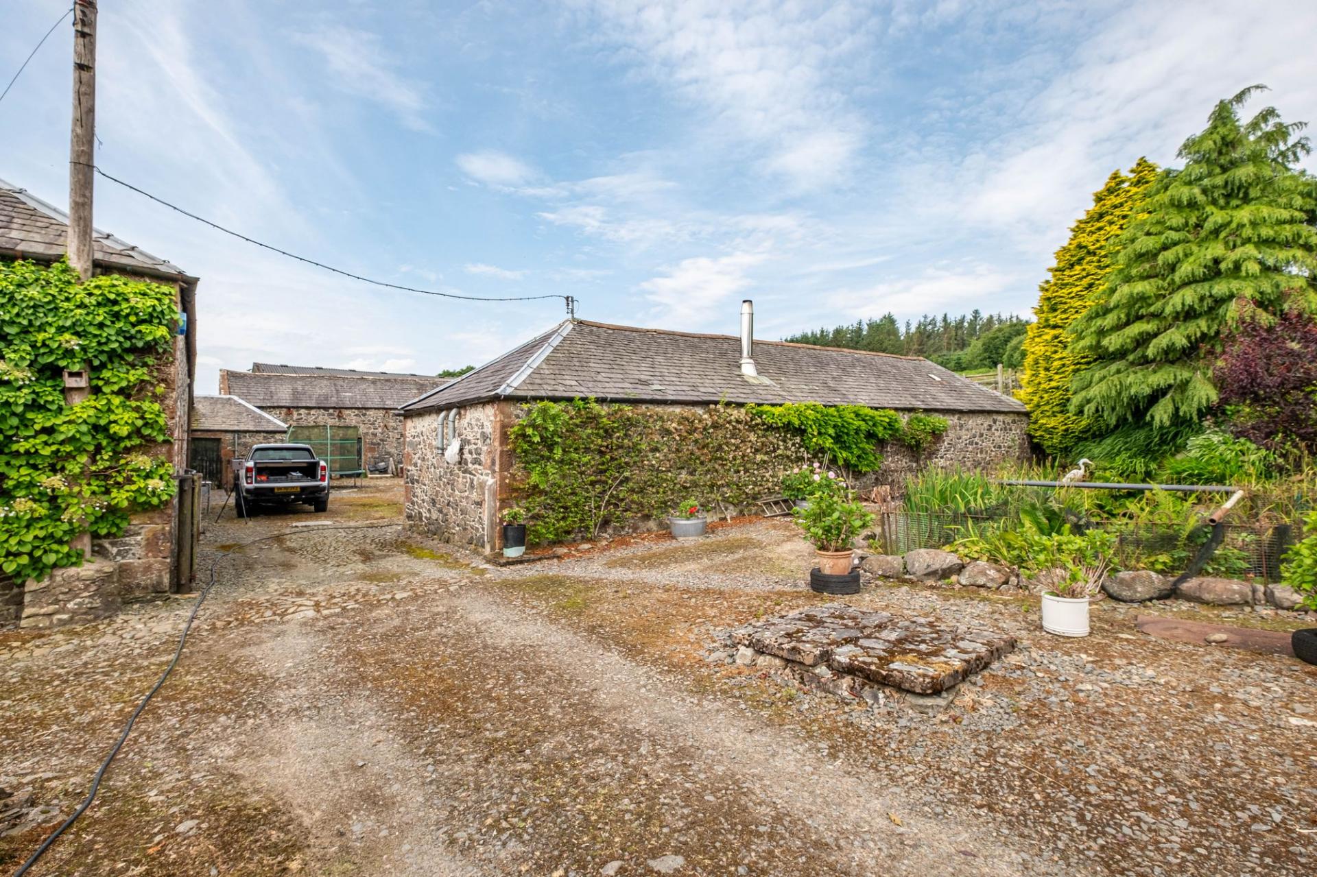 Larglanglee is set in approximately 14.9 acres, currently laid out as three paddocks and a former manège, as well as landscaped gardens and an orchard. There is a very attractive stone-built courtyard steading, offering stabling, storage and workshop space, with an attached long barn, two modern agricultural buildings, a detached monopitch storage unit, and a detached double garage.