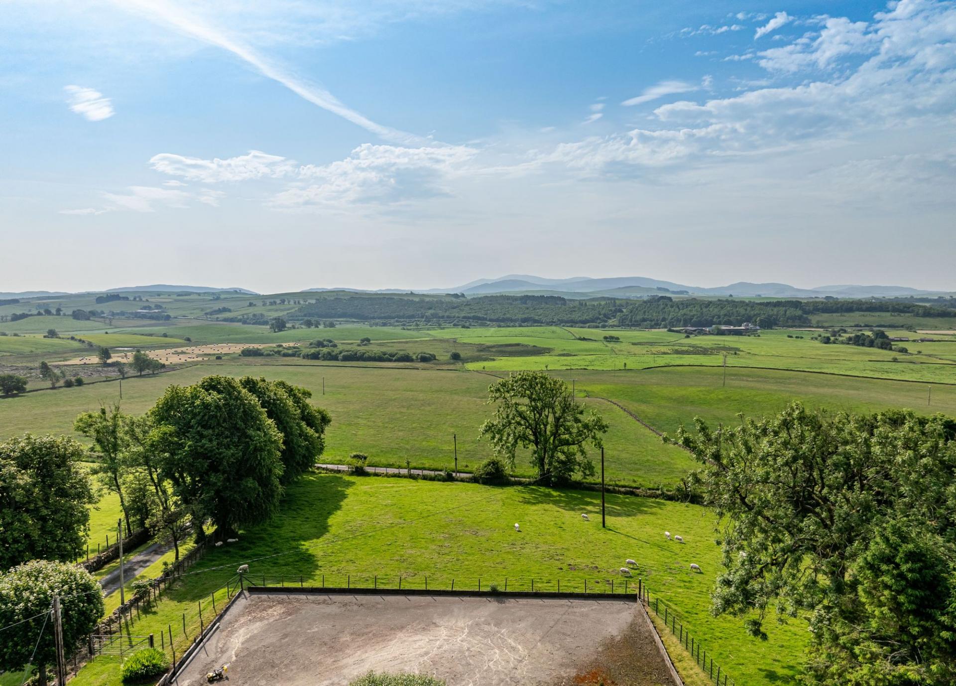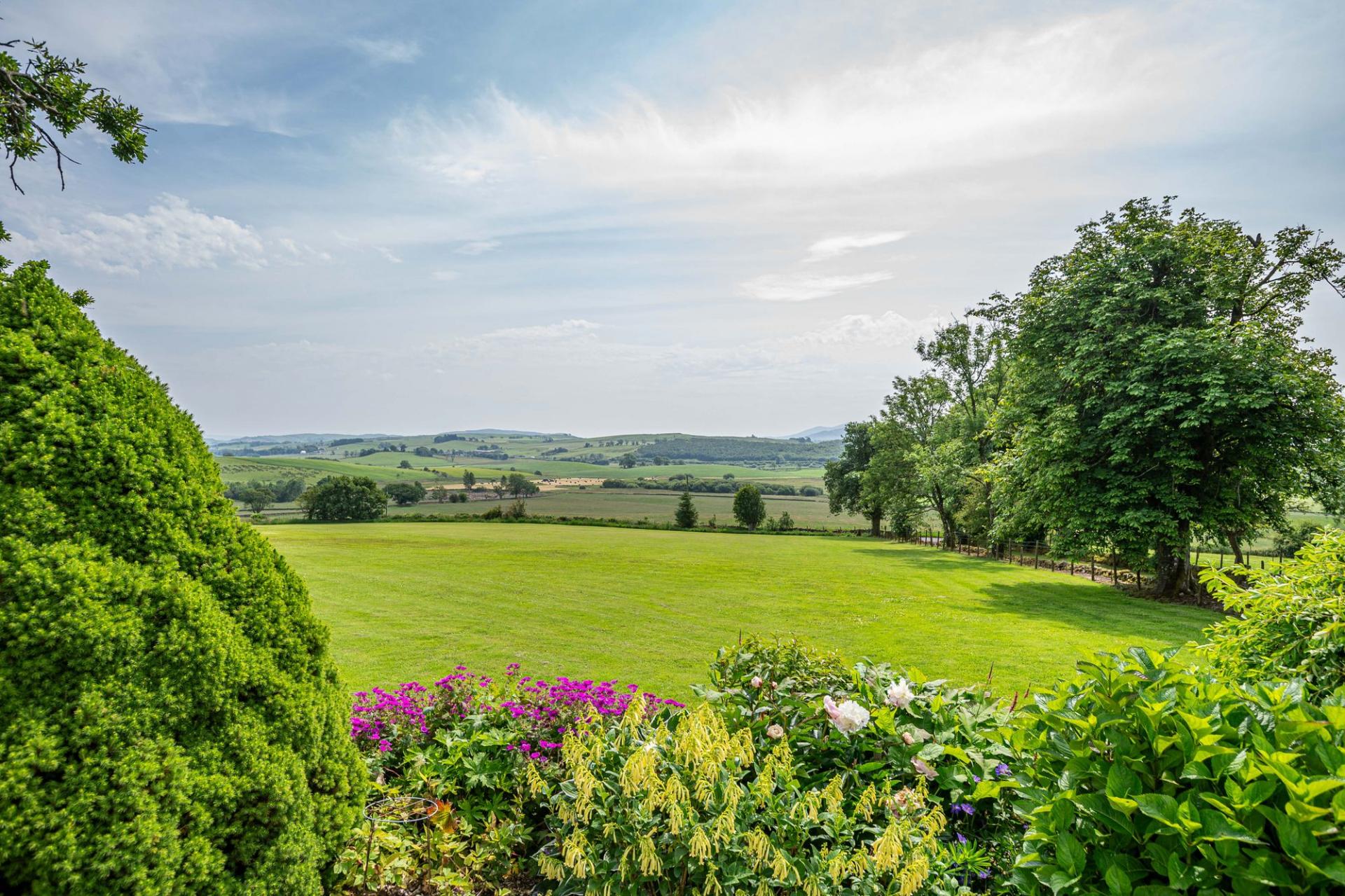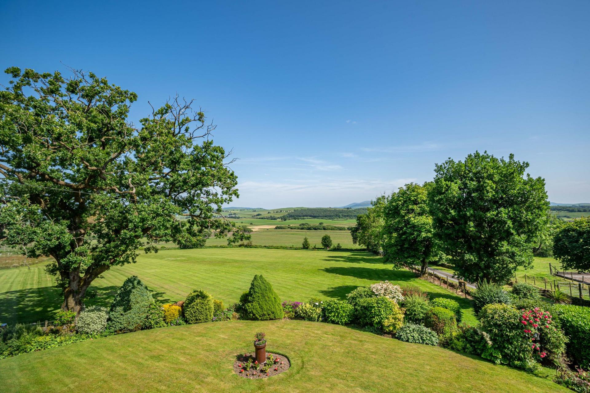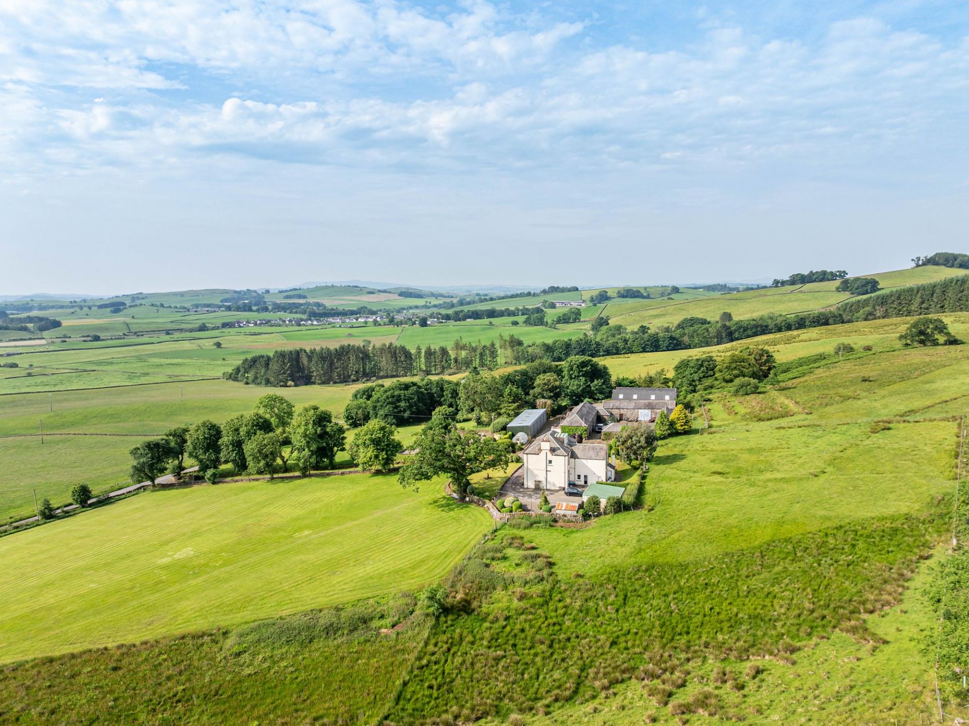 Larglanglee is set in approximately 14.9 acres, currently laid out as three paddocks and a former manège, as well as landscaped gardens and an orchard. There is a very attractive stone-built courtyard steading, offering stabling, storage and workshop space, with an attached long barn, two modern agricultural buildings, a detached monopitch storage unit, and a detached double garage.