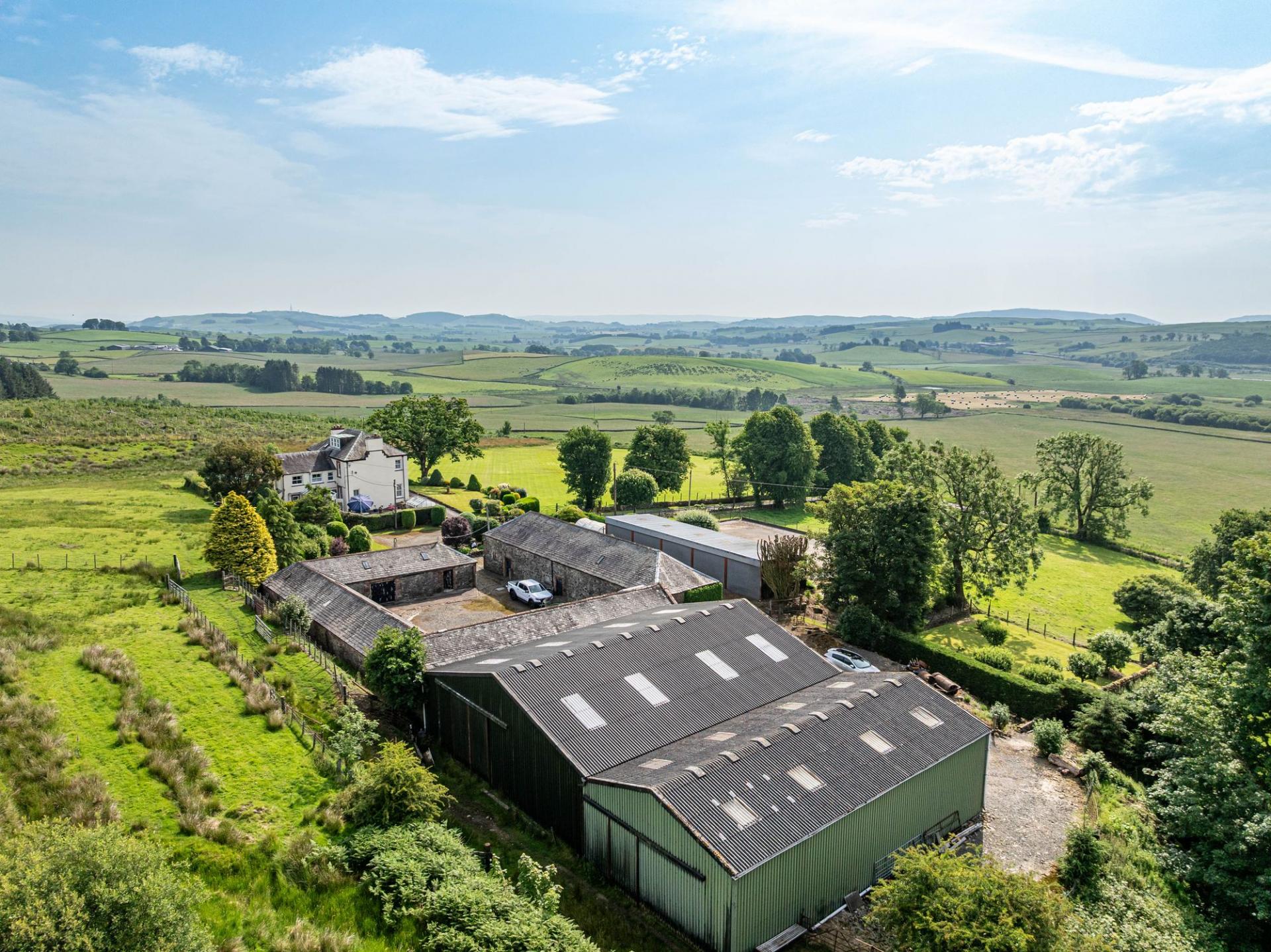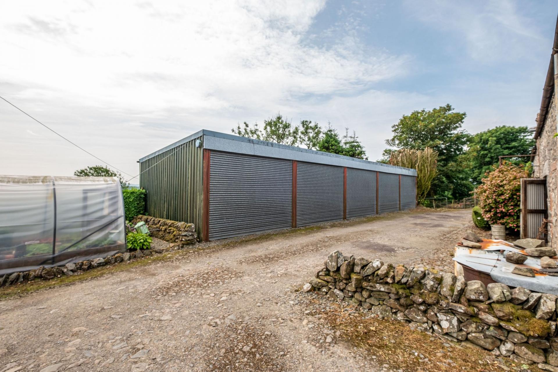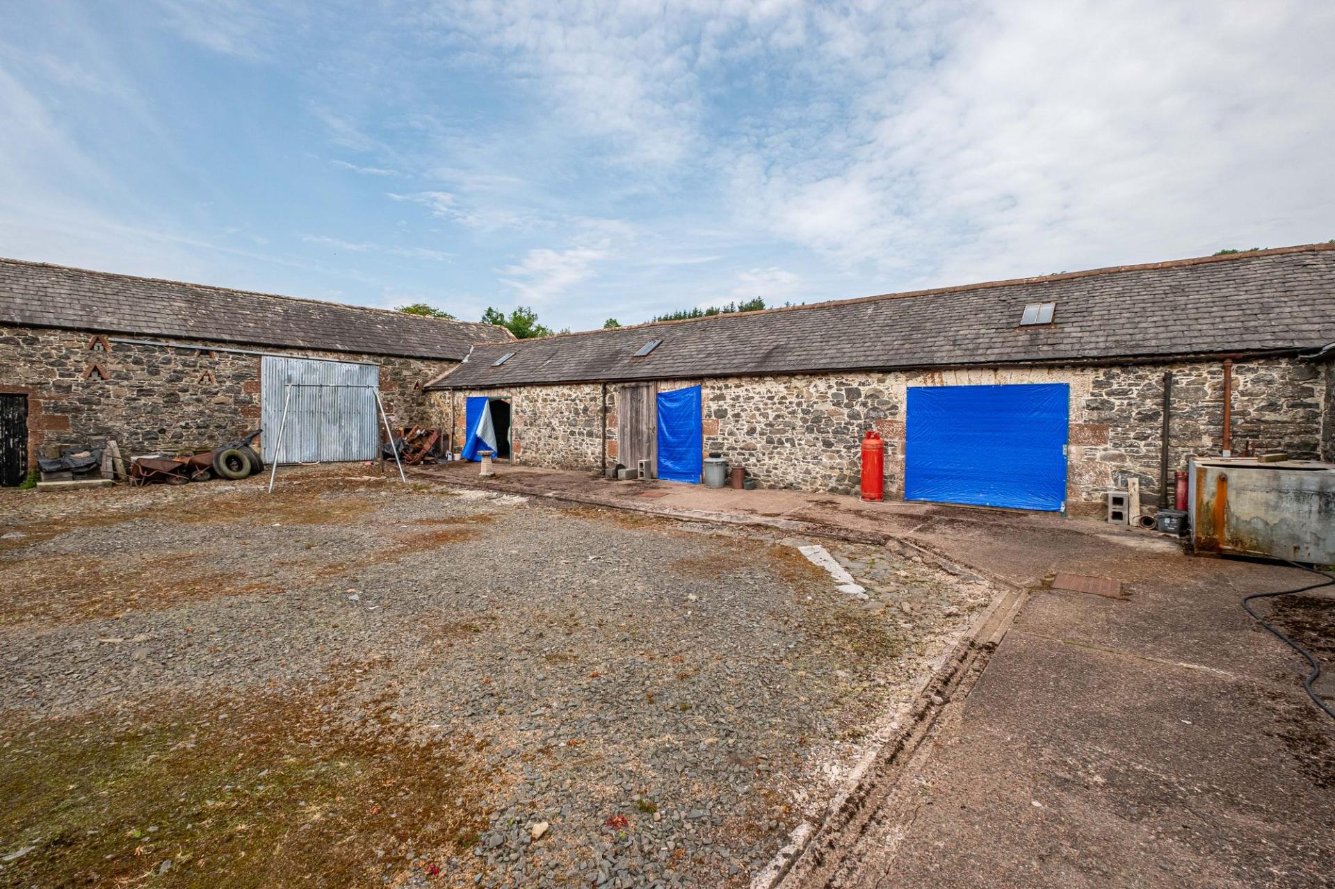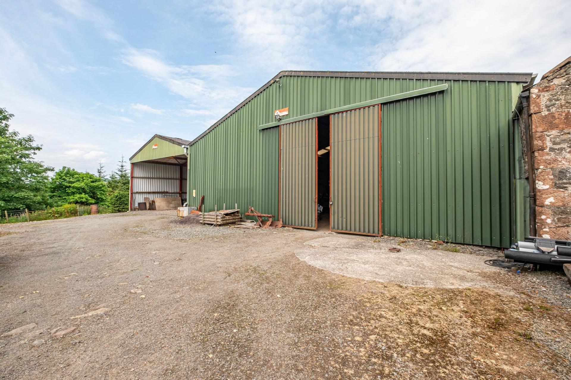 Larglanglee offers an extensive range of outbuildings, suitable for a variety of uses. The stone steading is very attractive, laid out as a square shape with inner courtyard. Within the steading is storage for the biomass boiler and pellets, former stables and loose boxes, a long barn, and a large workshop with a former hayloft above, accessed via external stone steps. There are two modern steel frame agricultural buildings (one open fronted) and a monopitch steel framed storage unit with five roller doors. Ideal business/lifestyle or equestrian opportunities.