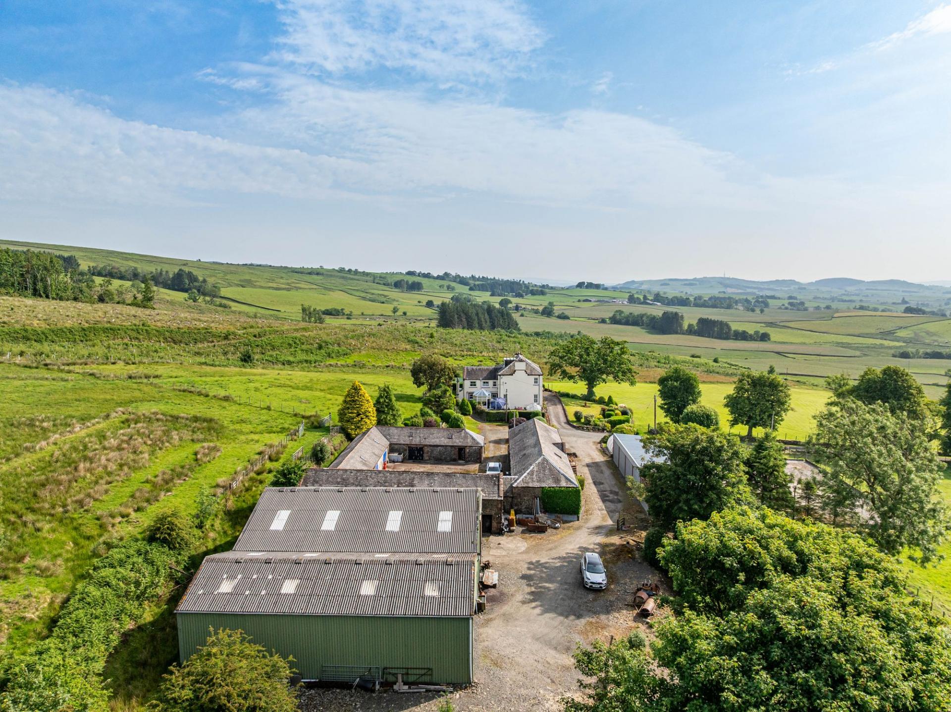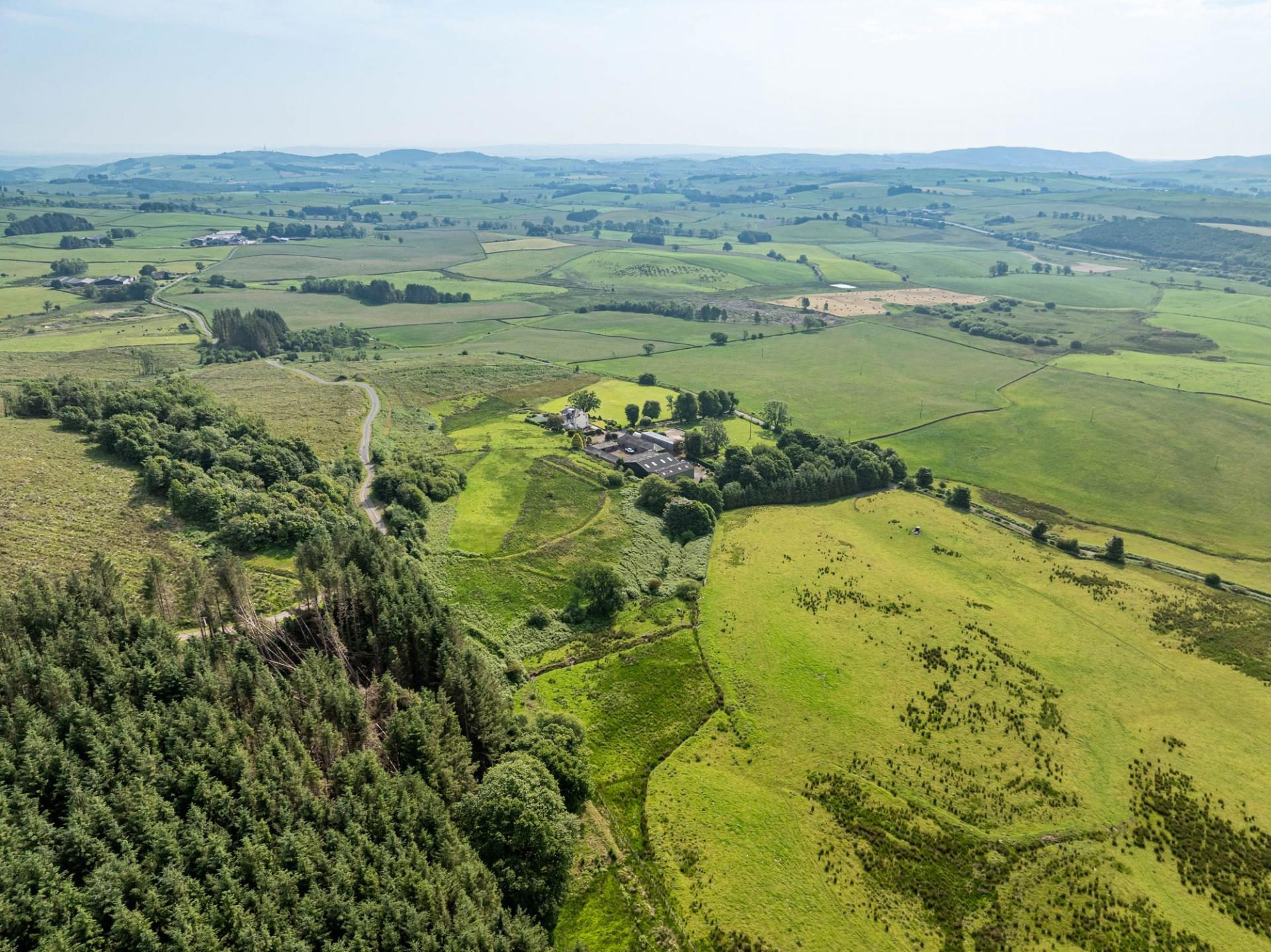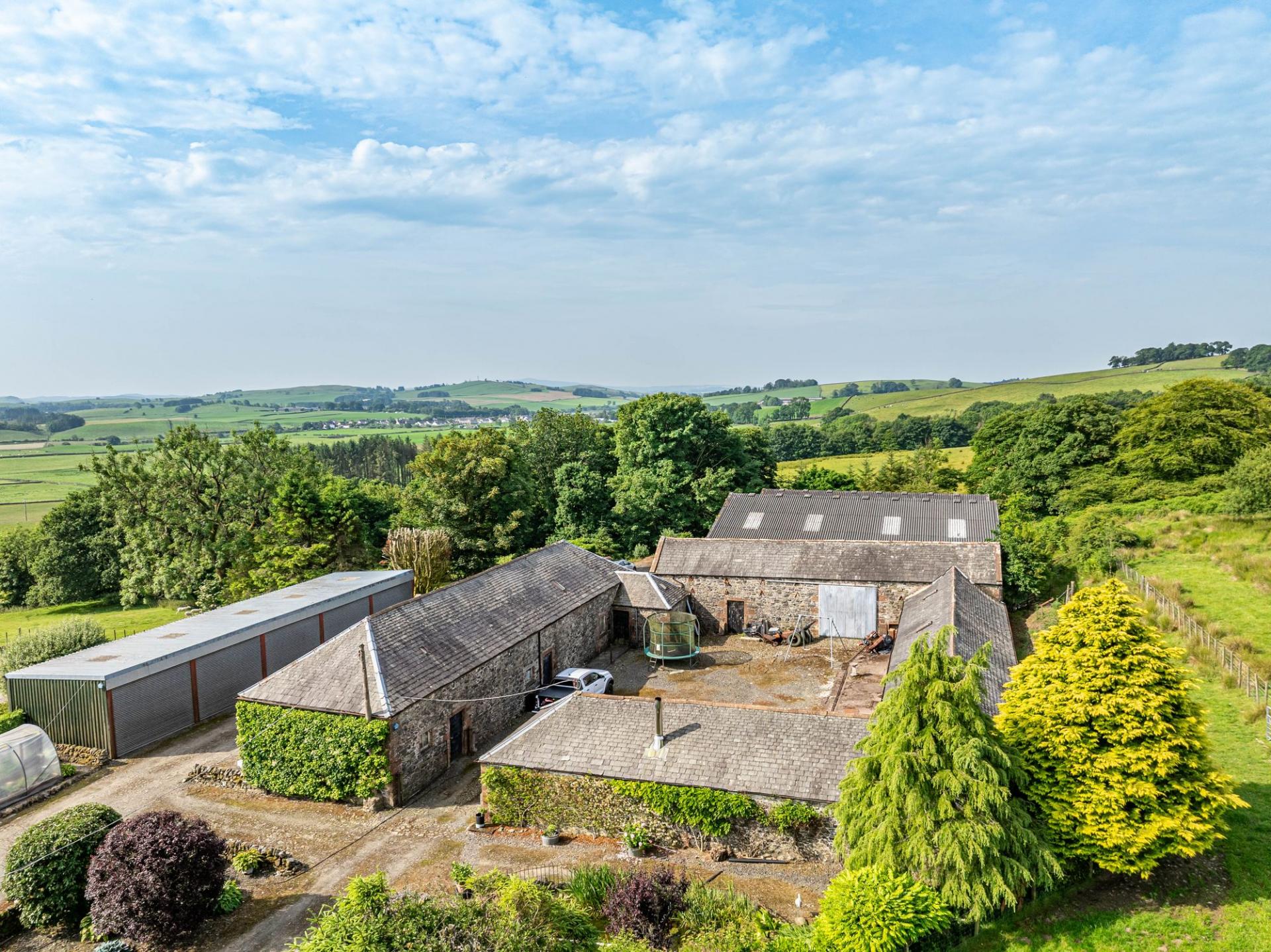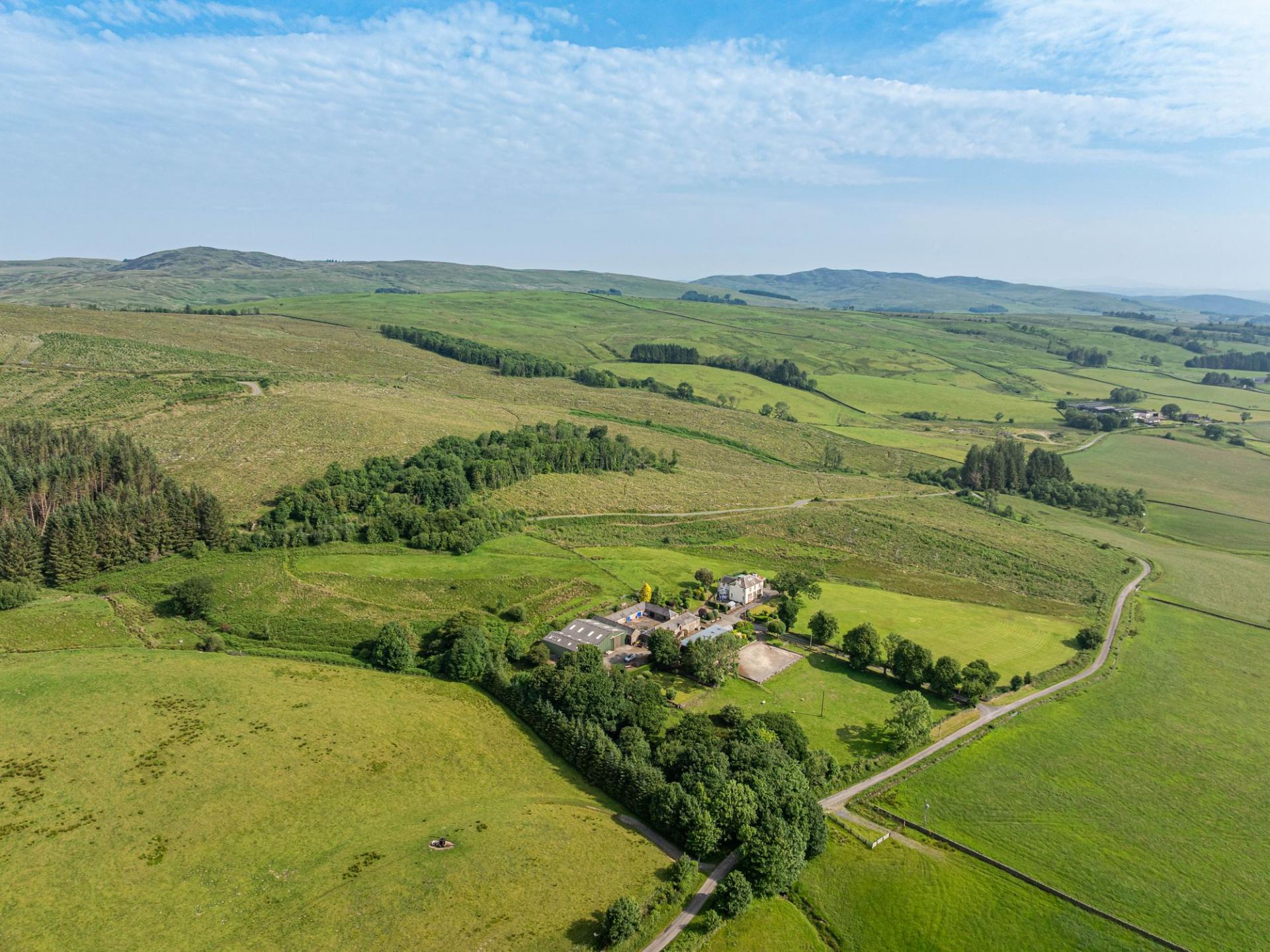 Larglanglee offers an extensive range of outbuildings, suitable for a variety of uses. The stone steading is very attractive, laid out as a square shape with inner courtyard. Within the steading is storage for the biomass boiler and pellets, former stables and loose boxes, a long barn, and a large workshop with a former hayloft above, accessed via external stone steps. There are two modern steel frame agricultural buildings (one open fronted) and a monopitch steel framed storage unit with five roller doors. Ideal business/lifestyle or equestrian opportunities.