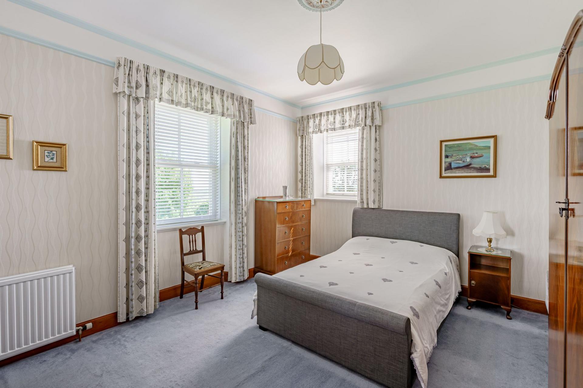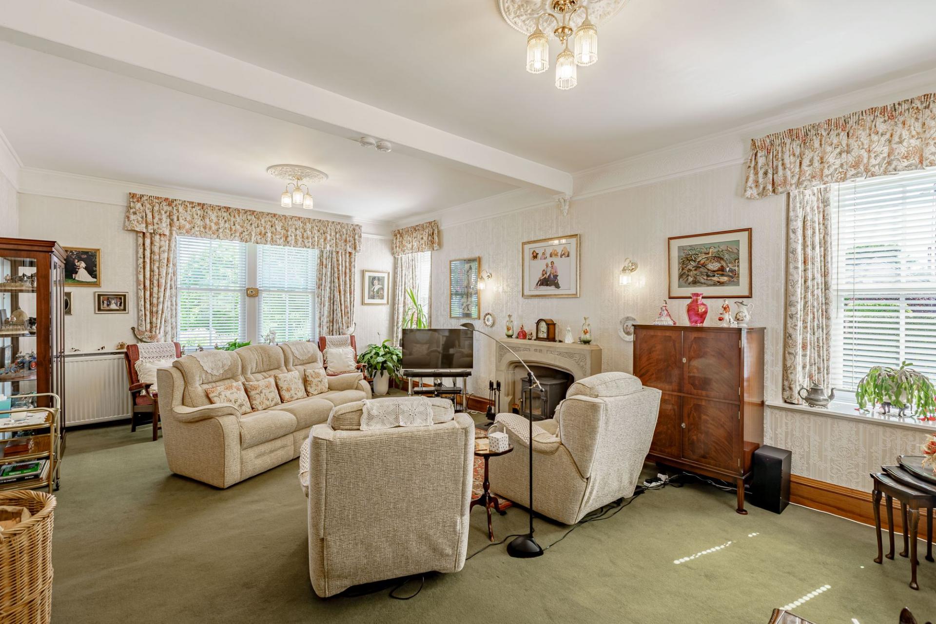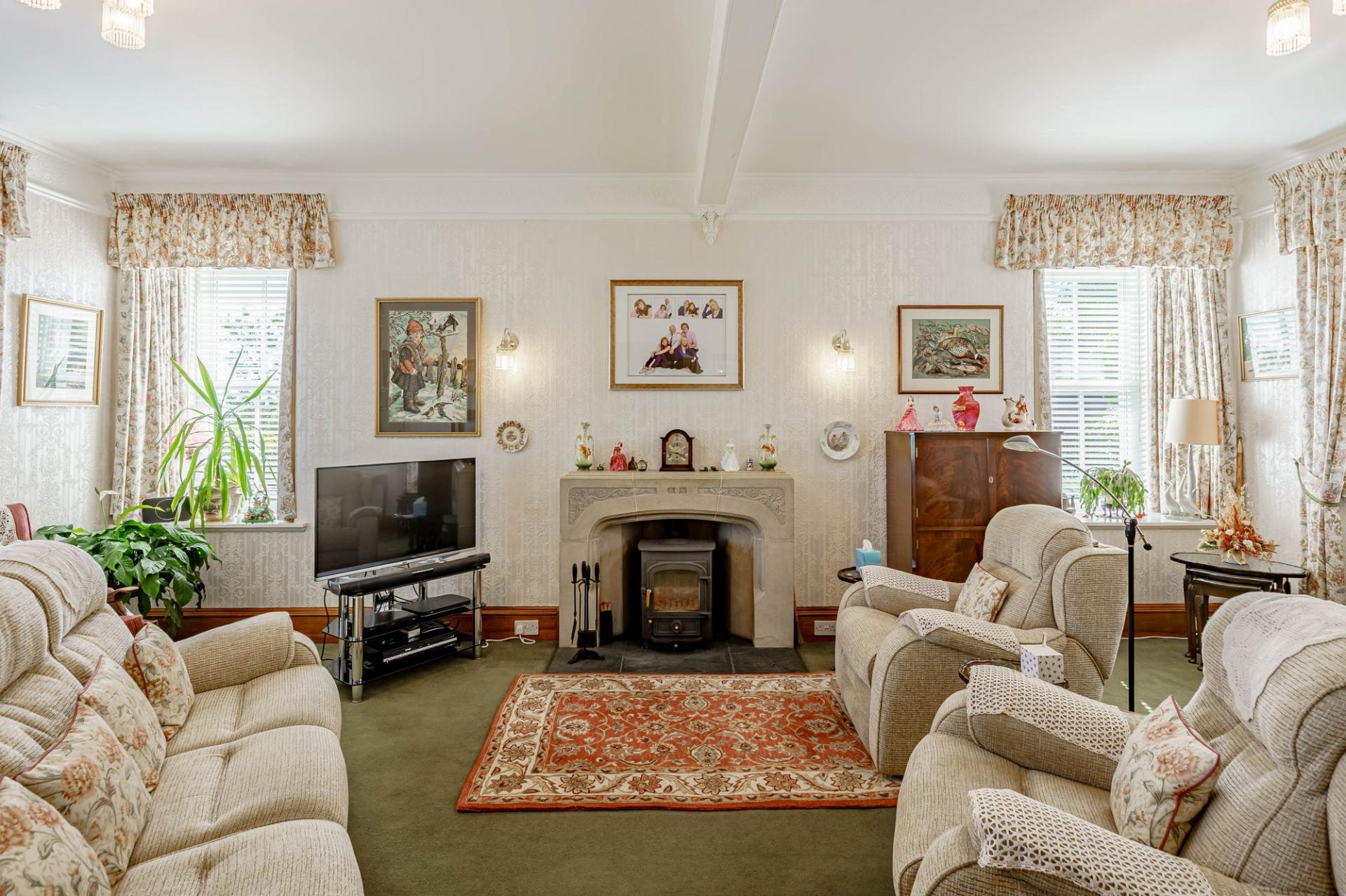 There are two principal reception rooms on the ground floor. The drawing room is very generous in size and filled with natural light, enjoying a triple aspect, with far reaching views. There is also a multifuel stove set within a stone surround.