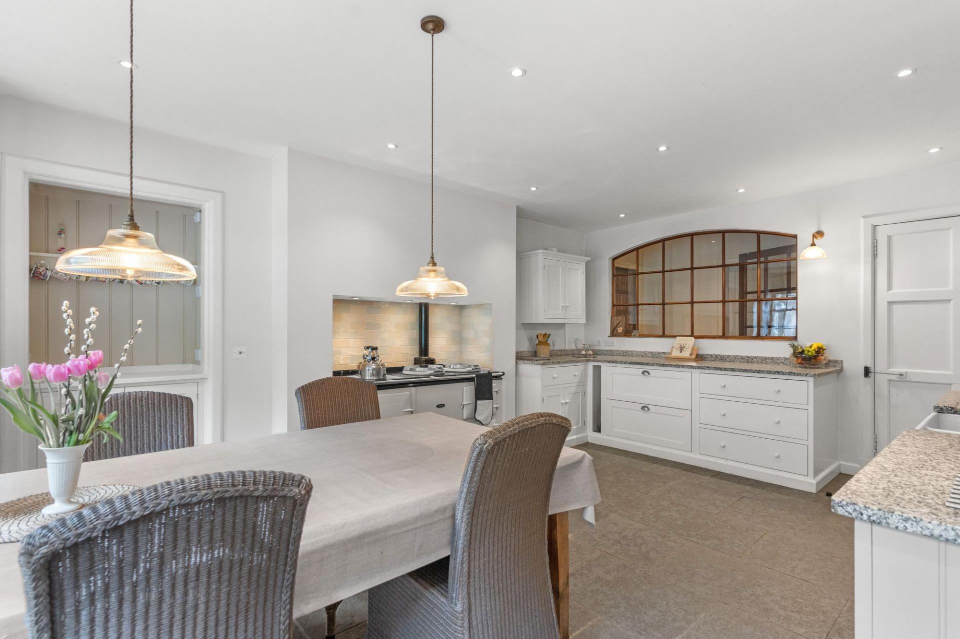 The butler's pantry, with original wooden cabinets and working servants' bells, is located directly next to the dining room and can be used as a preparation area for larger events. The main kitchen/breakfast room incorporates a dining area and features Shaker style cabinets (DeVol), granite worksurfaces, a 4-oven AGA and a large walk-in pantry. A generous storeroom and utility/boot room beside the kitchen provide scope for expansion in the future if required.