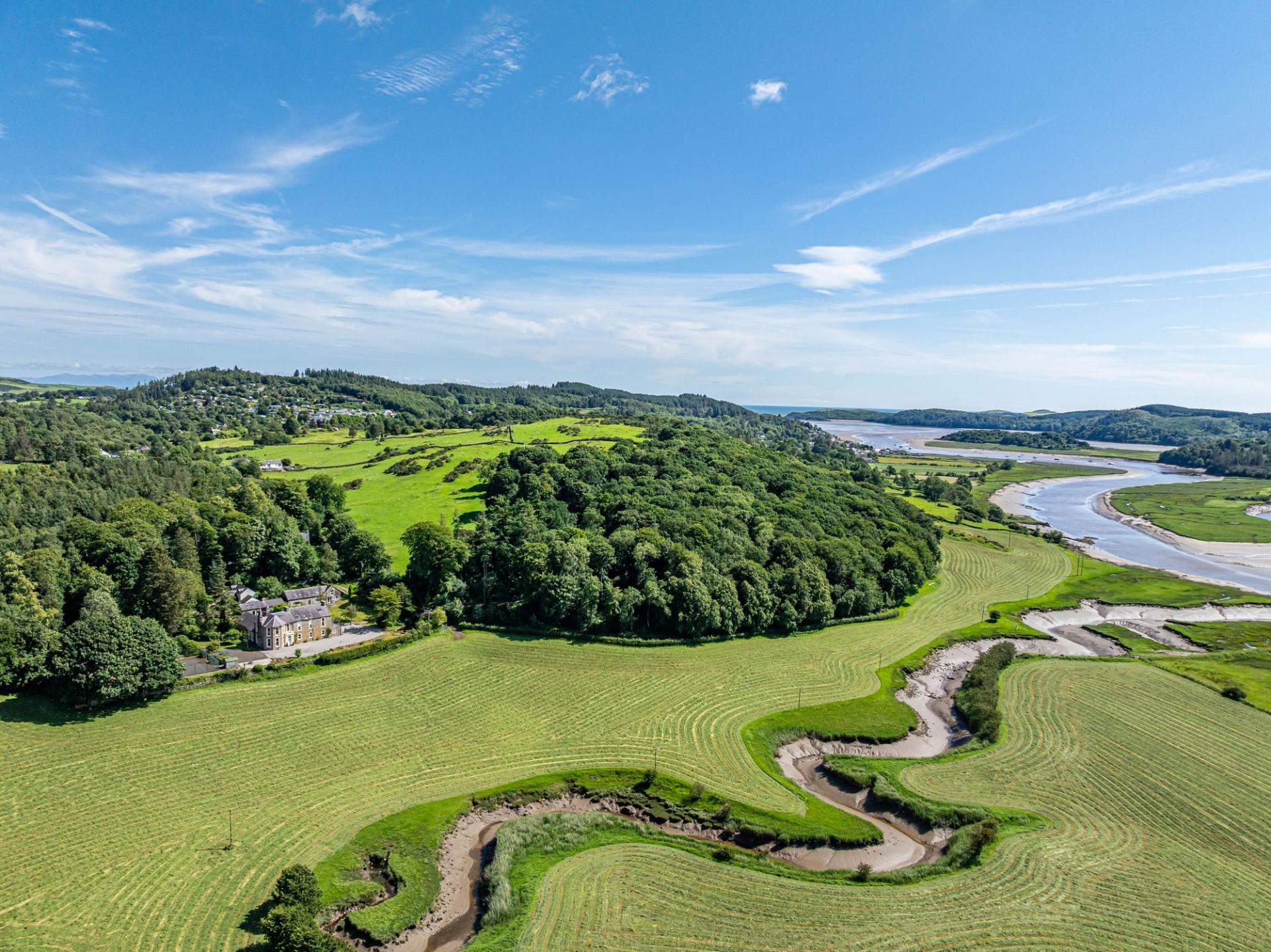 Barnbarroch House is a beautifully situated property, comprising a large traditional detached house and two further cottages, set within mature and well-maintained grounds with an additional 15 acres of mature woodland now included in the sale. From its slightly elevated position, the main house boasts excellent views over the Urr Water and surrounding countryside. The property is regarded as early Victorian, rooms are bright and generously proportioned and many enjoy views over the garden grounds and countryside. It retains desirable traditional features including high ceilings, window shutters, original skirting boards, fireplaces and cornicing.