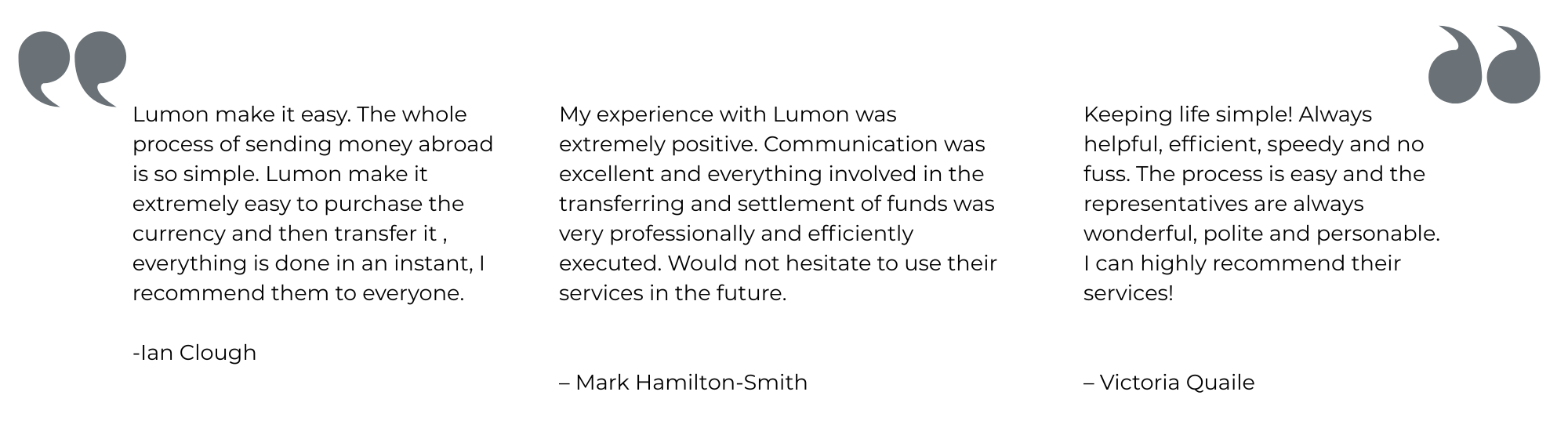 We highly recommend you having a no obligation conversation with Lumon's dedicated team, even if you already have a currency service in mind.