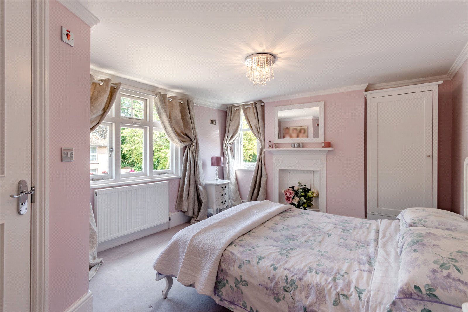 Main Bedroom 21'11" x 13'8" (6.68m x 4.17m). Windows to front and rear. Carpet. Papered ceiling. Access to loft. Radiator with cover. Built-in fireplace.