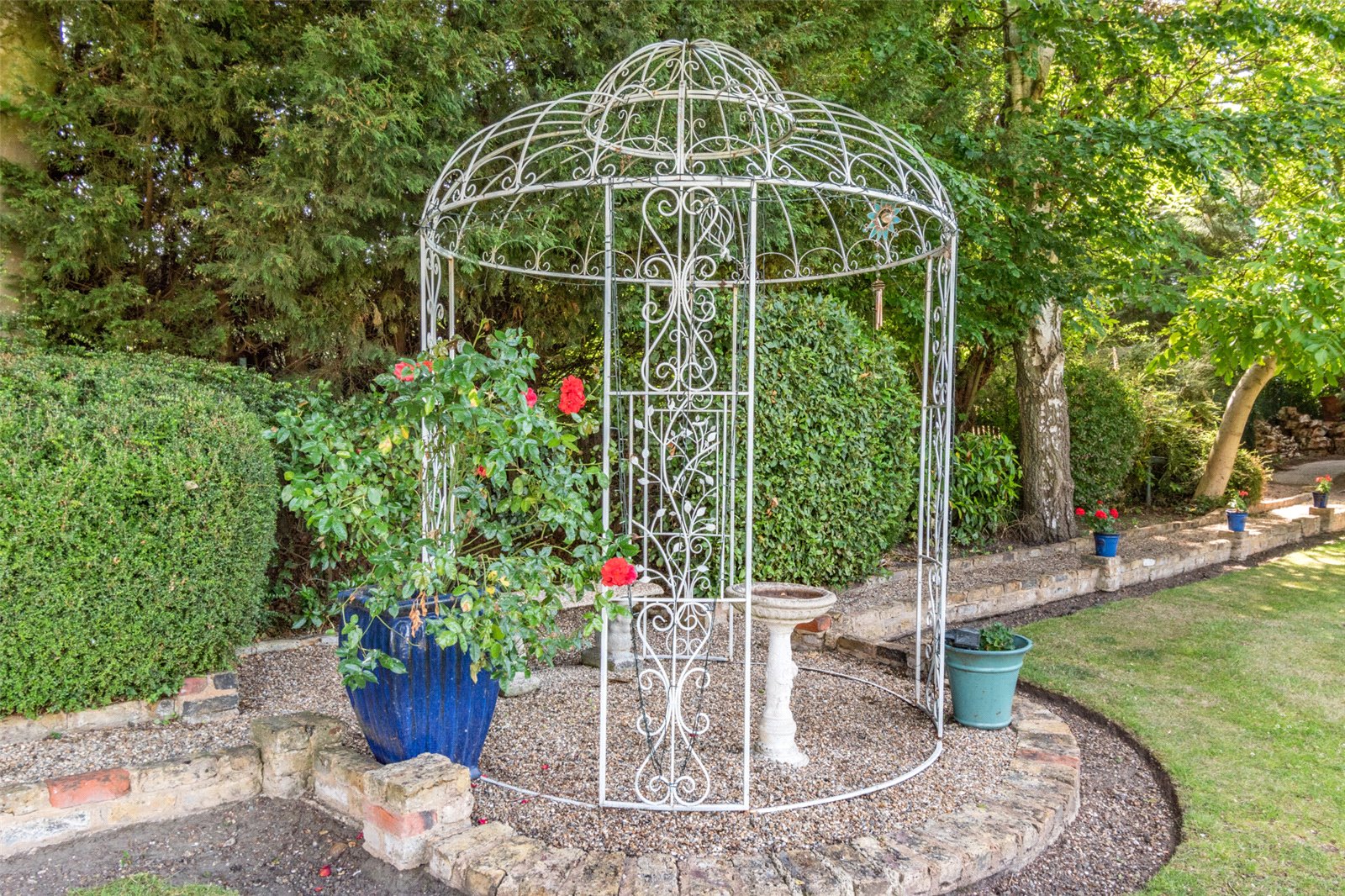 Rear Garden Total Plot Size 0.86 Acres. Covered rear paved sandstone patio area. Lawn areas. Flower beds. Gravel paths. Tractor store. Pagoda. Mature hedging. Well stocked with various plants and trees.