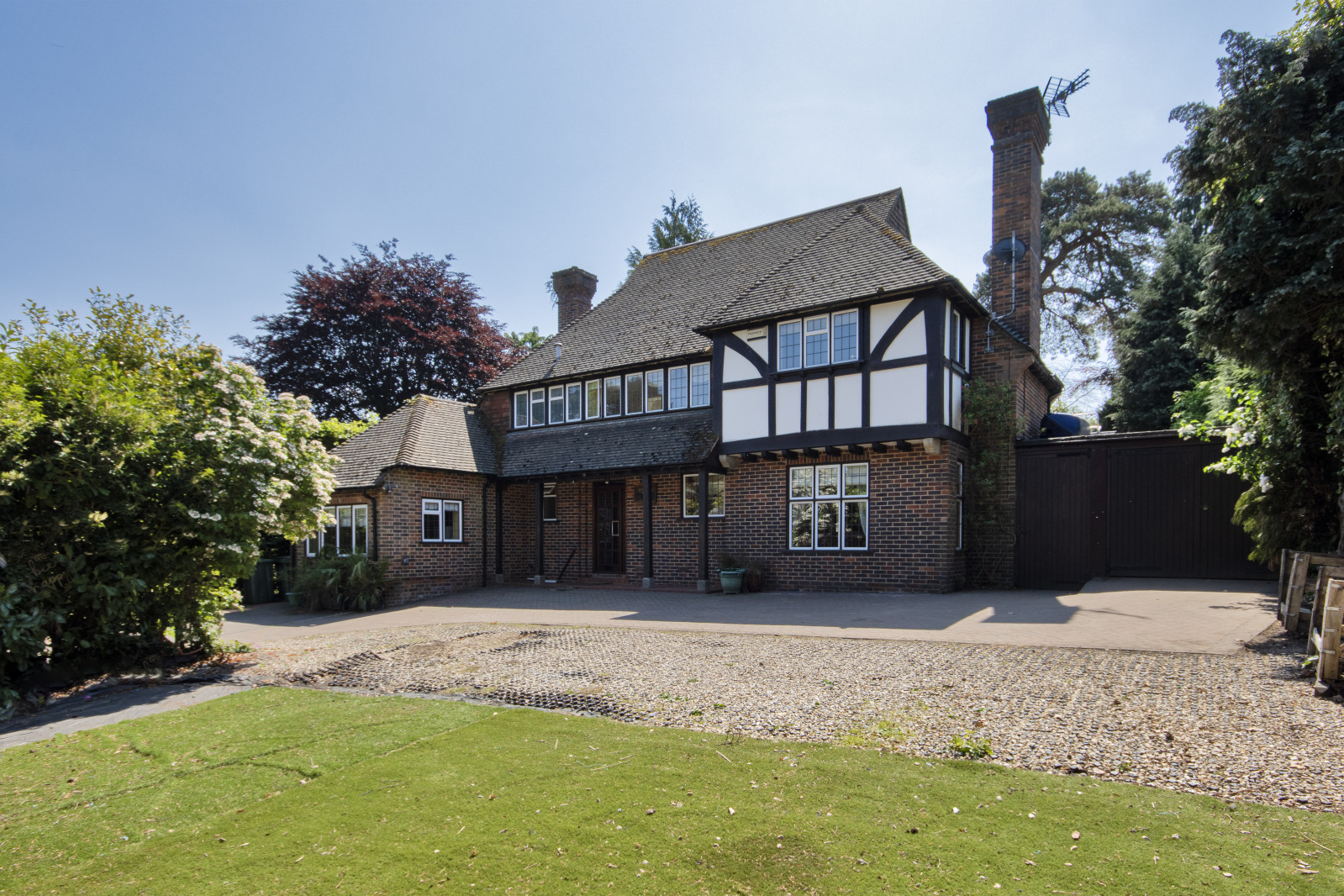 Tucked away in a desirable private road in Sevenoaks, Sandmount West with its Mock Tudor facade on Montreal Road presents a rare opportunity to acquire a circa 1959 built substantial extended 2474 sq ft four / five-bedroom detached family home with a blend of period features and modern comforts that has not been offered to the market since 1998. This charming attractive and generously proportioned residence offers both versatile living space and a wonderful setting, with a large established garden and spacious driveway providing ample off-street parking, along with side garage and to the rear a large 1602 sq ft workshop garage which has huge potential for other uses such as conversion to a home office or annex facility subject to the usual planning permissions.
