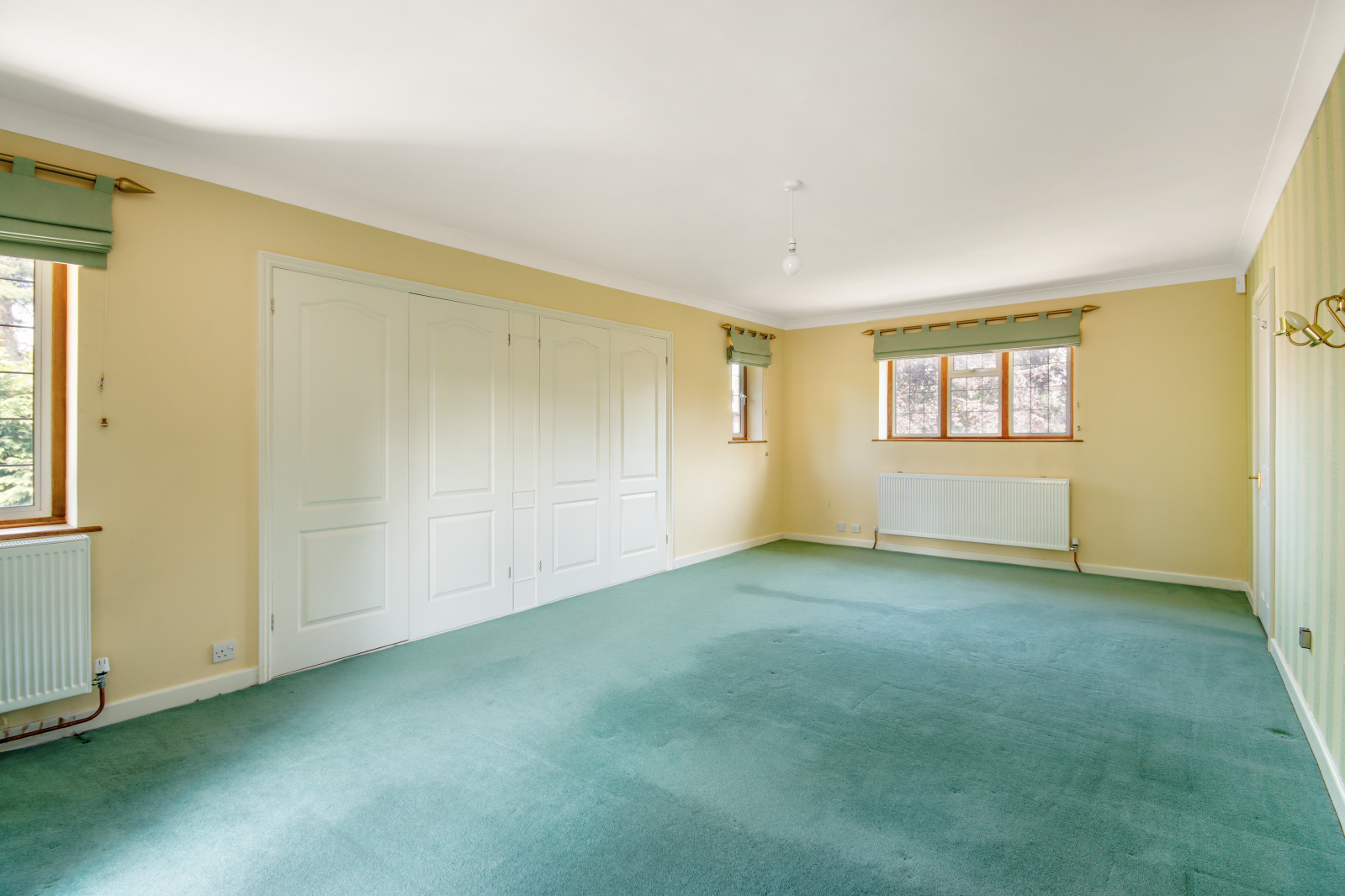 Main Bedroom 21'10" x 12'5" (6.65m x 3.78m). Double glazed leaded light effect windows to front and side. Double glazed leaded light French doors to rear leading to balcony with double glazed, leaded light bay windows to each side. Carpet. Plain coved ceiling. Two radiators. Built-in wardrobe.