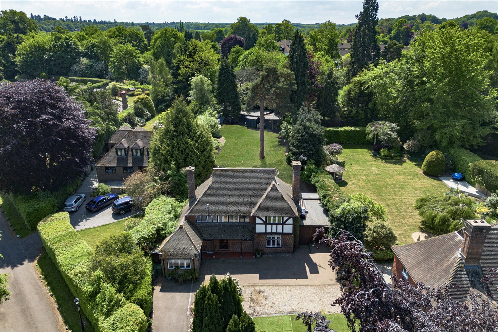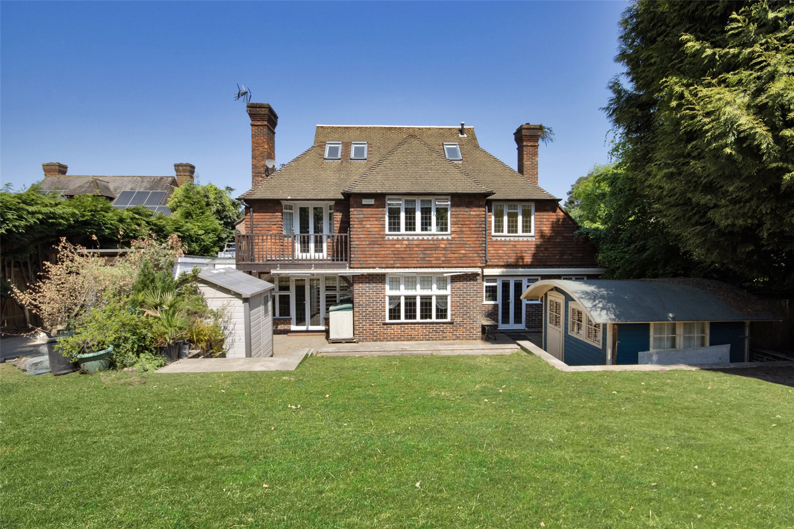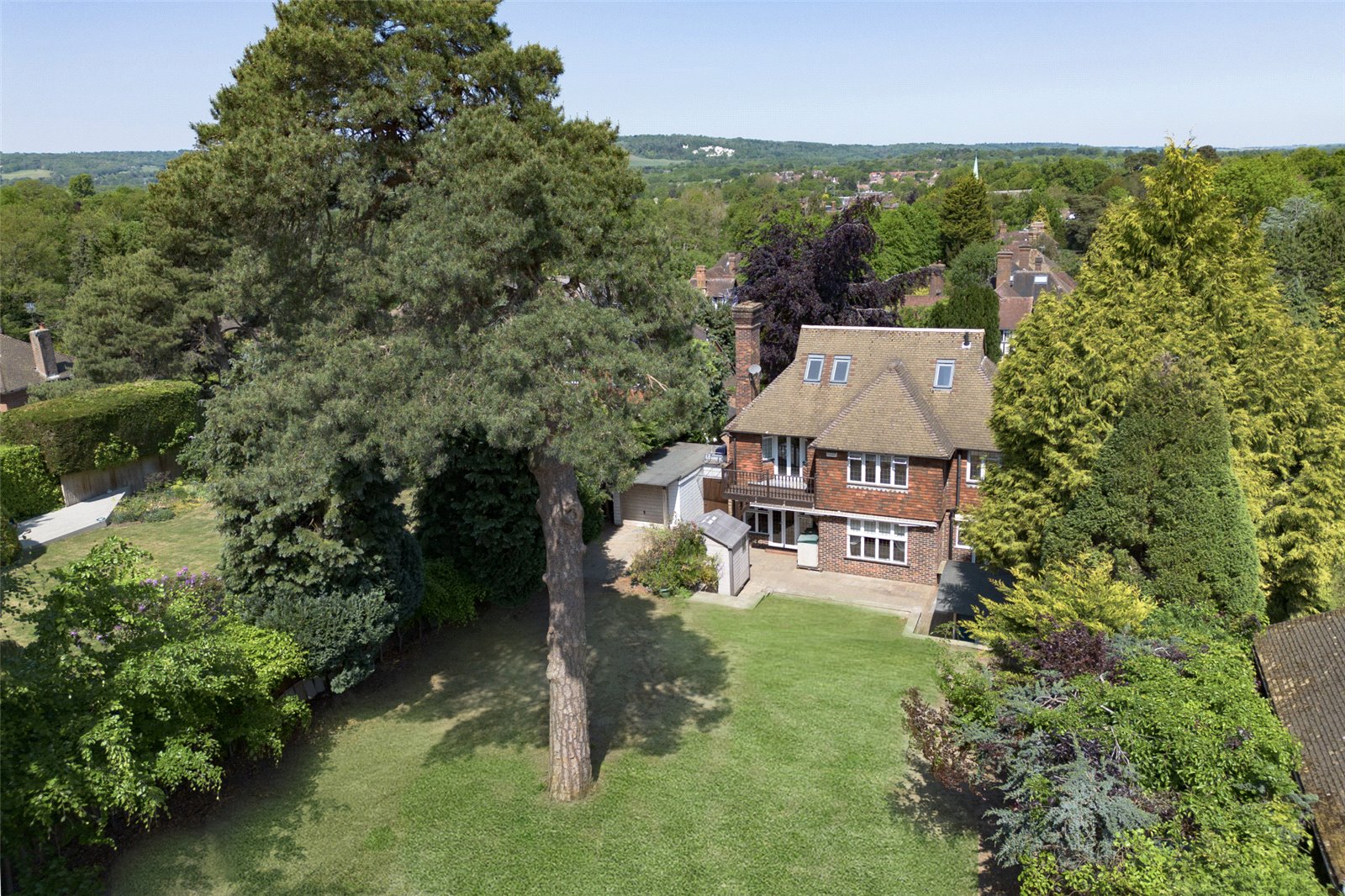 Set in a 0.37 acre plot externally, to the front is a spacious sweeping driveway with ample off-street parking for multiple vehicles. To the side of the house is an in and out garage giving access through to the rear garden and further garaging. The rear south facing garden with summerhouse is mature and backs on to and has access to Riverhead Parkland, this outside garden space is peaceful and ideal for both family life and entertaining and has plenty of space for outdoor enjoyment. To the rear of the garden is a large multi-bay garage with adjoining workshop which is ideal for a car enthusiast and has potential to be converted into a home office that so many working from home purchasers crave or the potential to be an annex subject to the usual planning consents.
