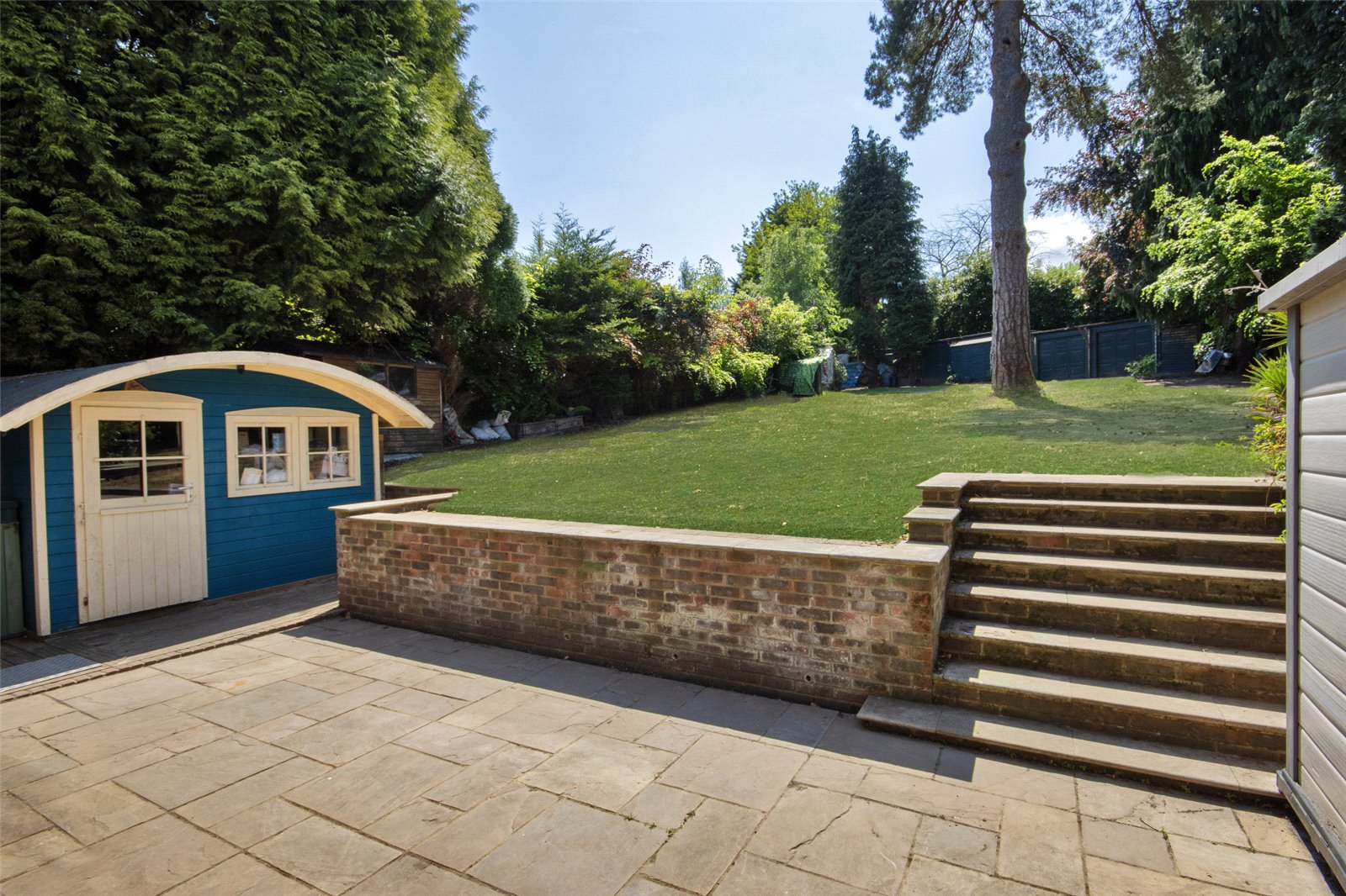 Rear Garden Overall plot size 0.374 of an acre. Paved patio area. Decking. Summerhouse. Shed. Greenhouse. Log store. Side access. Workshop/garages to rear.