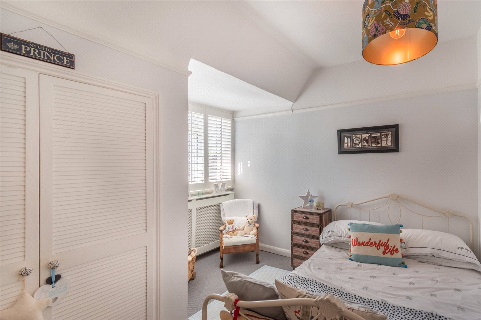 Bedroom Three 11'9" x 10'11" (3.58m x 3.33m). Double glazed window to rear with shutters. Carpet. Plain ceiling. Access to loft. Built-in wardrobe. Radiator with cover.