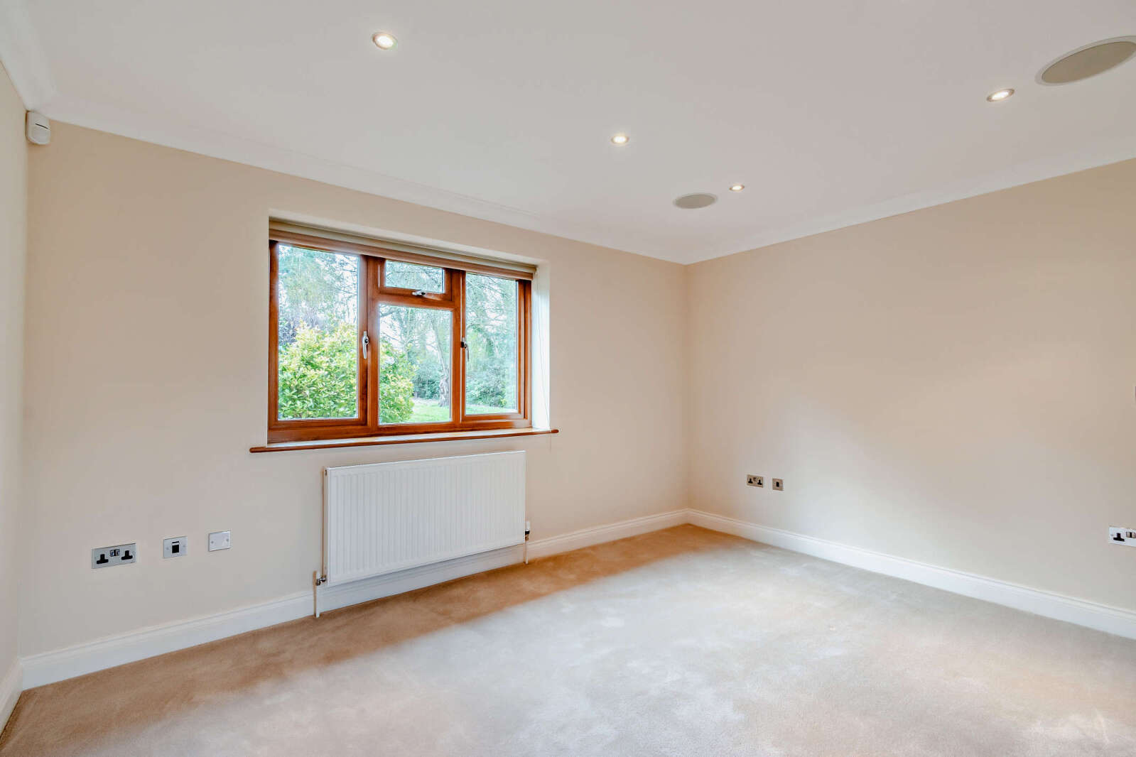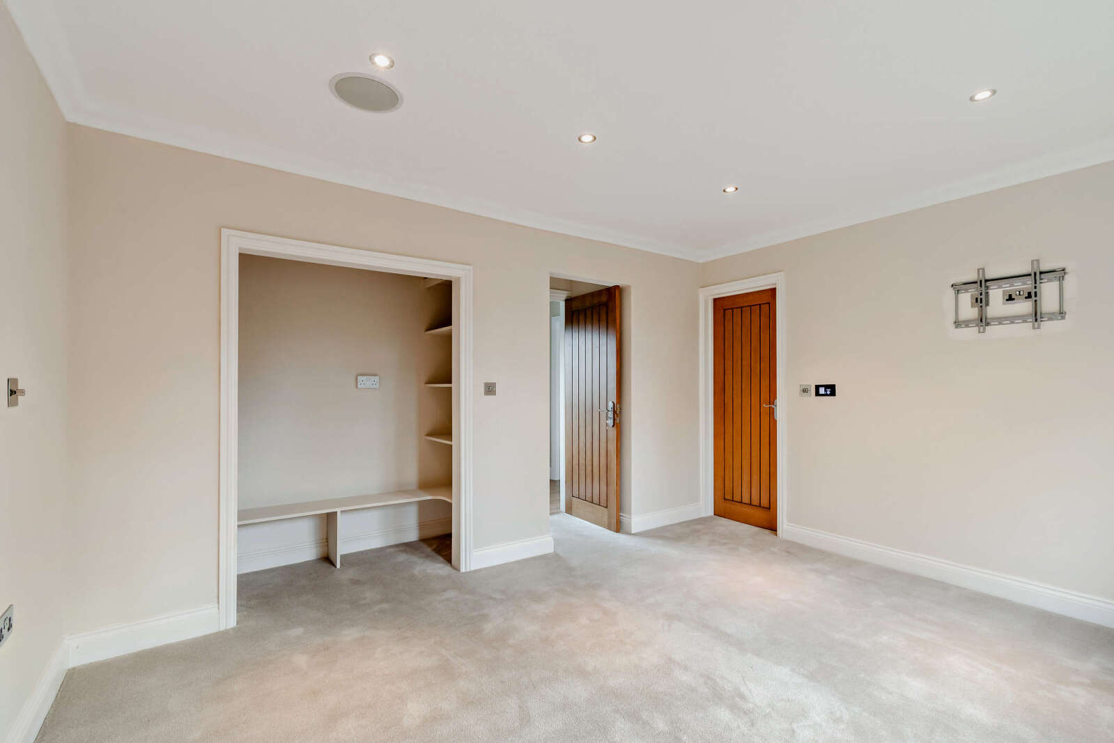 Bedroom 3 14'1" x 13'5" (4.3m x 4.1m). Double glazed window to rear. Wardrobe recess with shelving. Coved ceiling. Downlights. Carpet. Radiator.