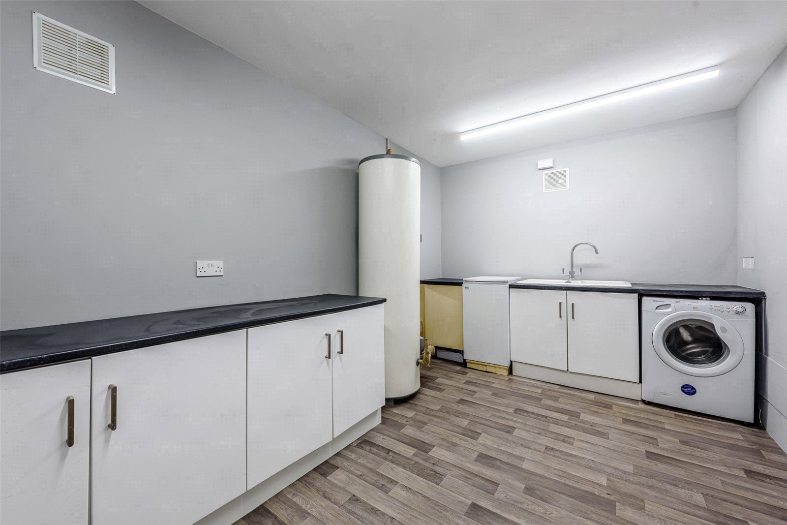 Utility Room 13'4" x 9'1" (4.06m x 2.77m). Plain Ceiling. Vinyl flooring. Base units with worktops over and ceramic one and a half sink and drainer with mixer tap. Space for washing machine. Oil fuelled boiler and Heatrae Sadia Megaflow tank. Cupboard housing consumer unit. Radiator.