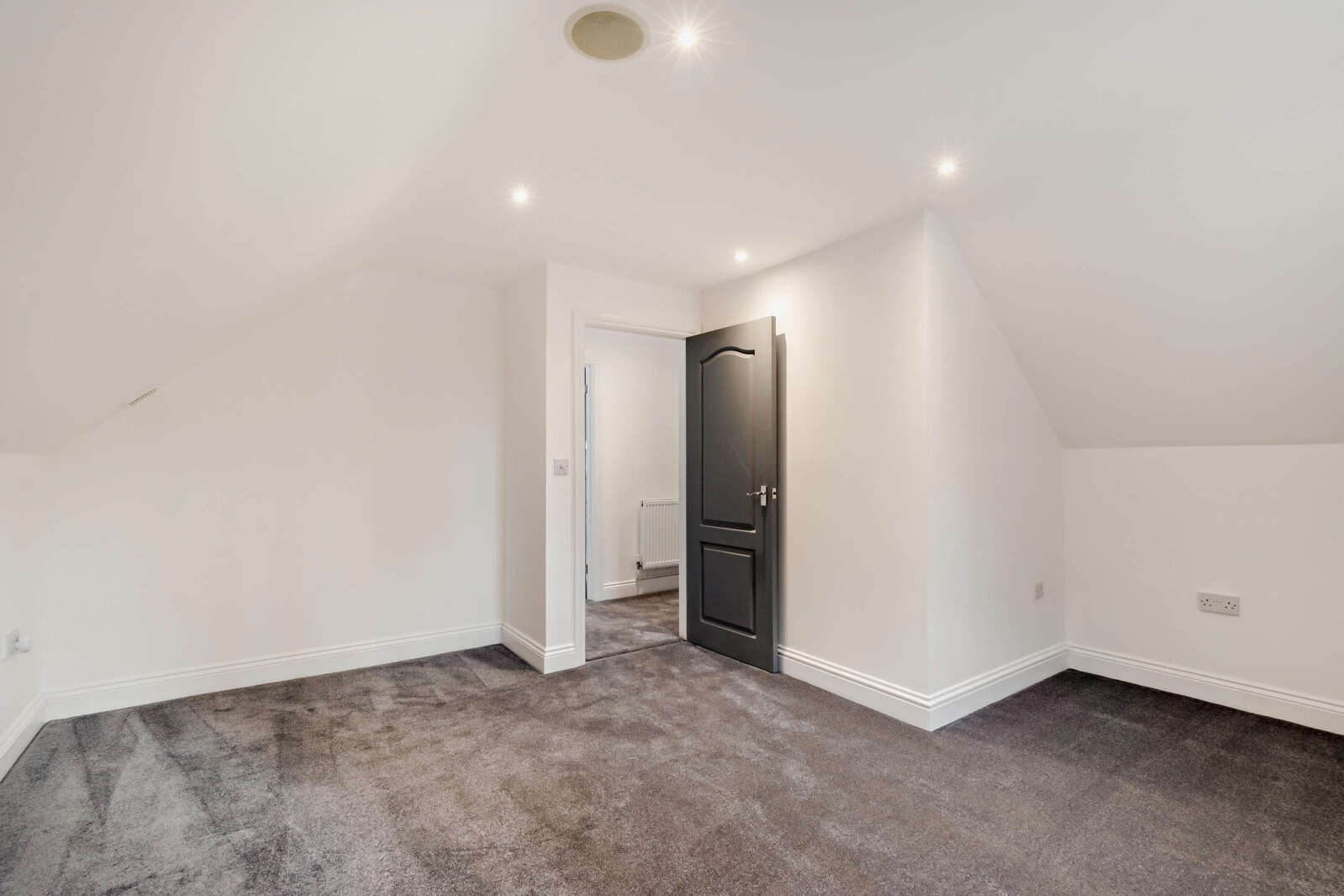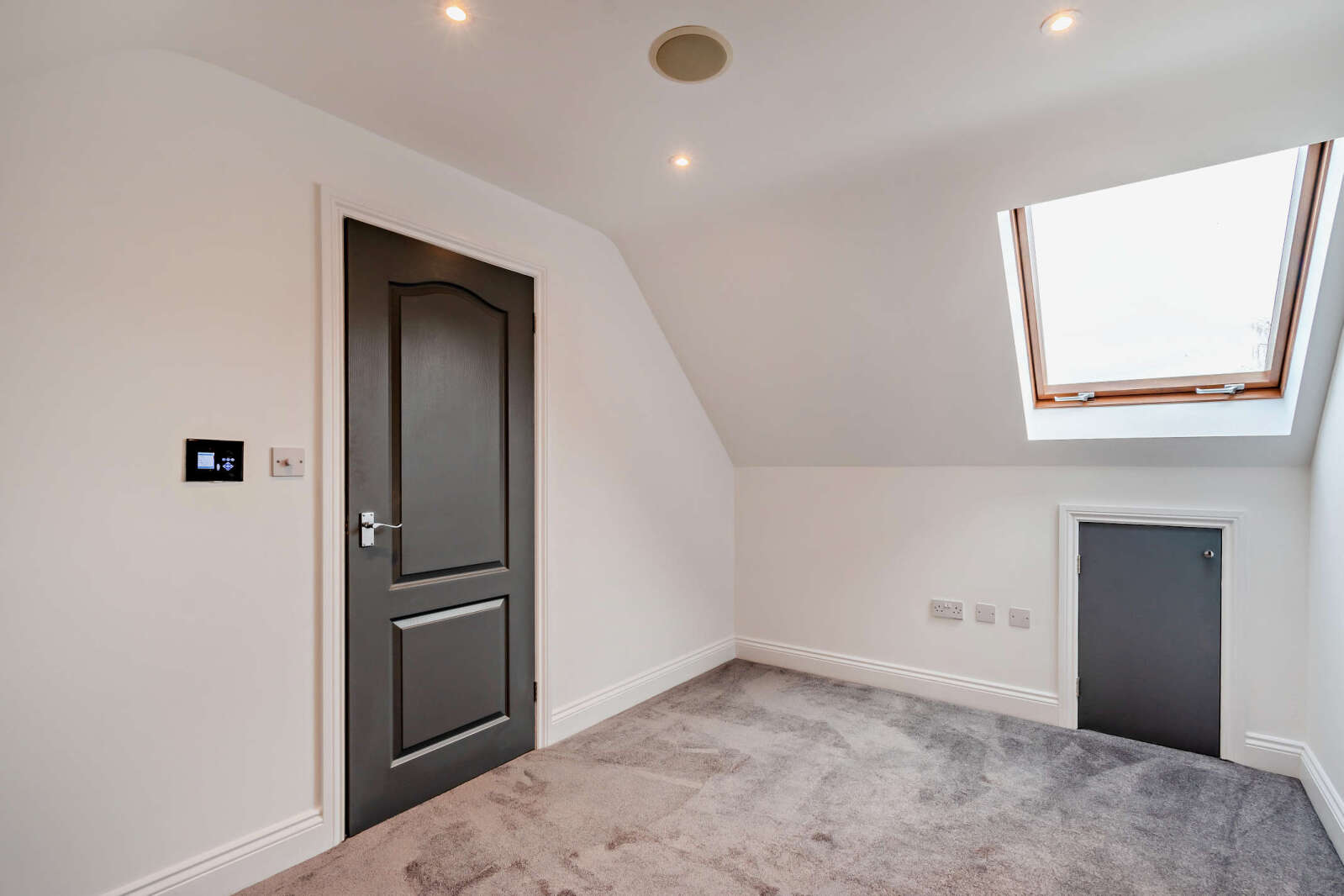 Bedroom 5 15'7" x 15'1" (4.75m x 4.6m). Double glazed window to side. Eaves storage. Plain ceiling. Downlights. Carpet. Radiators.