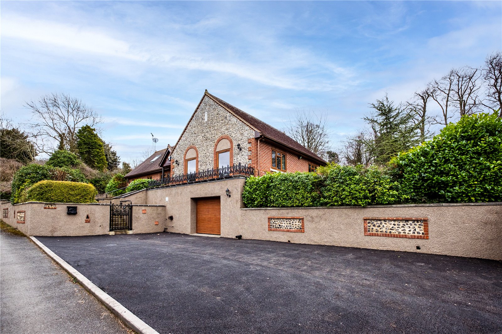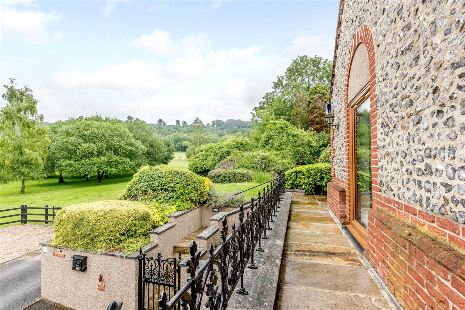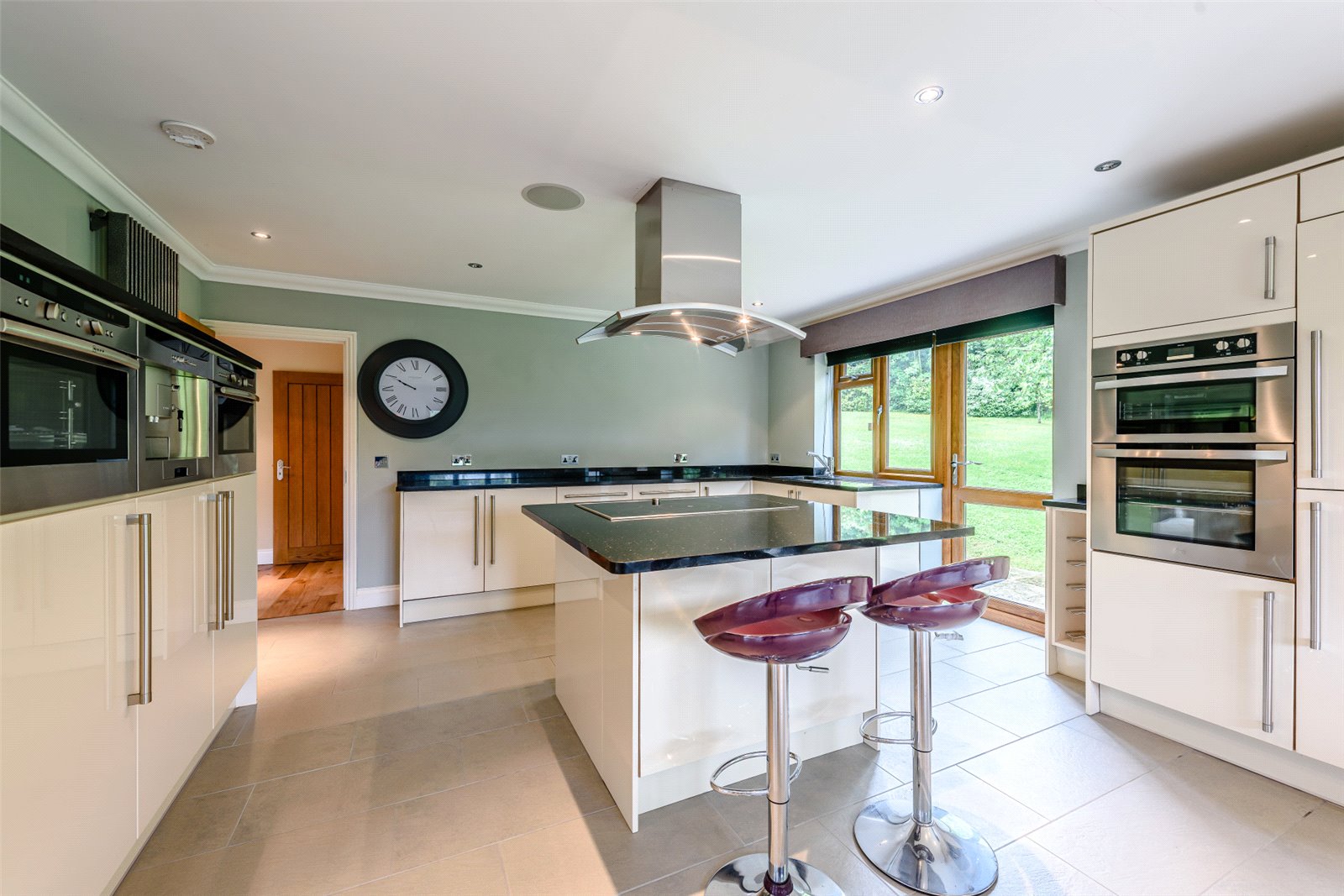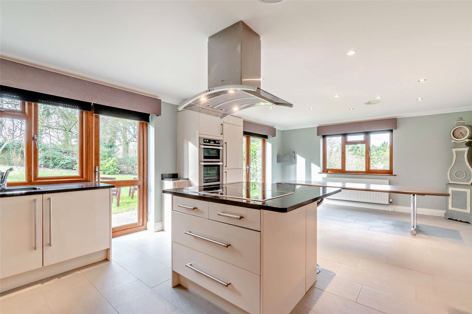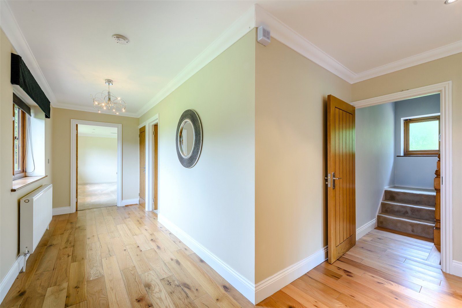 Little Copt is situated in a glorious setting and this distinctive five bedroom detached three storey (approximately 4051 Sq. Ft) property sits within the parish and confines of Shoreham Village, an idyllic Kent village surrounded by the beautiful rolling Kent Downs. Constructed in 2007 and never lived in by the current owners, the property is approached via a private drive which leads to extensive off road parking with five bar gate to the side leading to the private garden. A wrought iron gate with enclosing walls and steps leads to the main entrance with pitched roof timber recessed porch with courtesy lights. The property sits in a slightly elevated position and the front flagstone terrace can also be accessed off of the main reception that has a scenic view overlooking a separate 10 acre plot of fields (that can be bought with or without the property). To the rear the kitchen / breakfast / dining room leads out to the propertys rear secluded garden of gently rolling lawns, specimen trees and shrubs. The ground and first floor accommodate the five bedrooms with two shower rooms on the ground floor and a further shower room and one ensuite bathroom on the first floor.